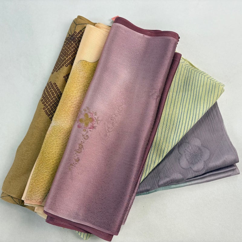 お買い得な帯揚げ5枚セットです。 色や柄など様々です。 1点ずつ丁寧に細部まで状態確認しておりません。 リユース品ですので、多少の傷みや使用感もございますが、 いずれもあまり目立たず、まだまだお使いいただけると思います。 素材は主に正絹です。(全ての素材の確認はしておりません。)