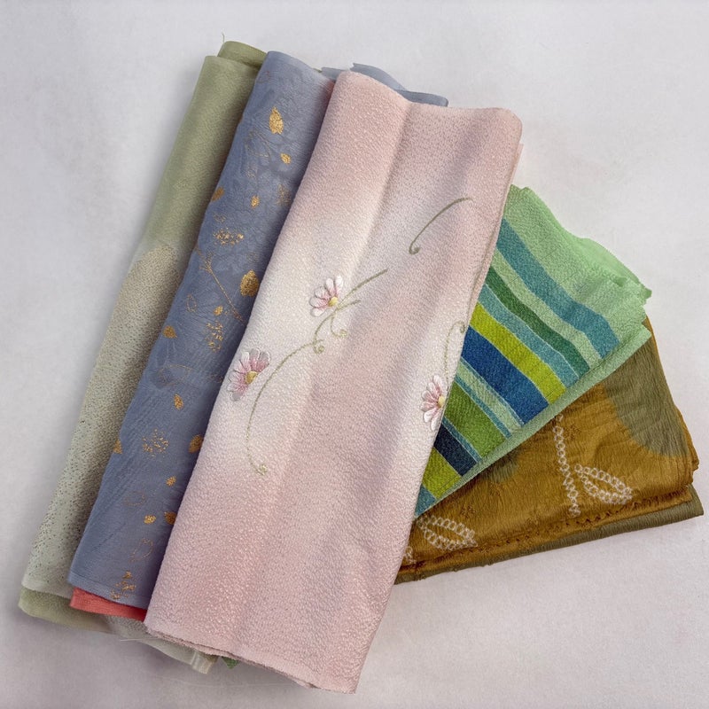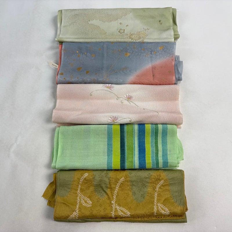 お買い得な帯揚げ5枚セットです。 色や柄など様々です。 1点ずつ丁寧に細部まで状態確認しておりません。 リユース品ですので、多少の傷みや使用感もございますが、 いずれもあまり目立たず、まだまだお使いいただけると思います。 素材は主に正絹です。(全ての素材の確認はしておりません。)