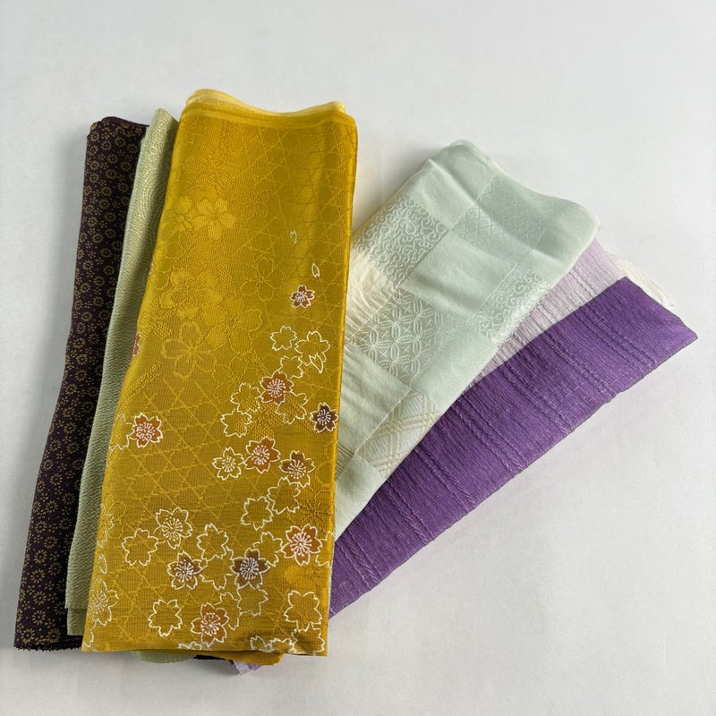 お買い得な帯揚げ5枚セットです。 色や柄など様々です。 1点ずつ丁寧に細部まで状態確認しておりません。 リユース品ですので、多少の傷みや使用感もございますが、 いずれもあまり目立たず、まだまだお使いいただけると思います。 素材は主に正絹です。(全ての素材の確認はしておりません。)
