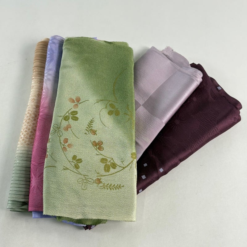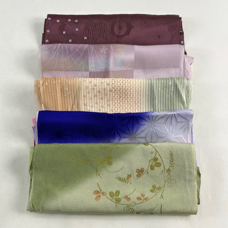 お買い得な帯揚げ5枚セットです。 色や柄など様々です。 1点ずつ丁寧に細部まで状態確認しておりません。 リユース品ですので、多少の傷みや使用感もございますが、 いずれもあまり目立たず、まだまだお使いいただけると思います。 素材は主に正絹です。(全ての素材の確認はしておりません。)