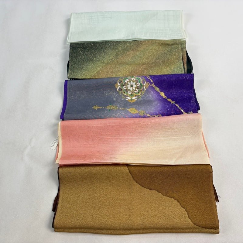 お買い得な帯揚げ5枚セットです。 色や柄など様々です。 1点ずつ丁寧に細部まで状態確認しておりません。 リユース品ですので、多少の傷みや使用感もございますが、 いずれもあまり目立たず、まだまだお使いいただけると思います。 素材は主に正絹です。(全ての素材の確認はしておりません。)