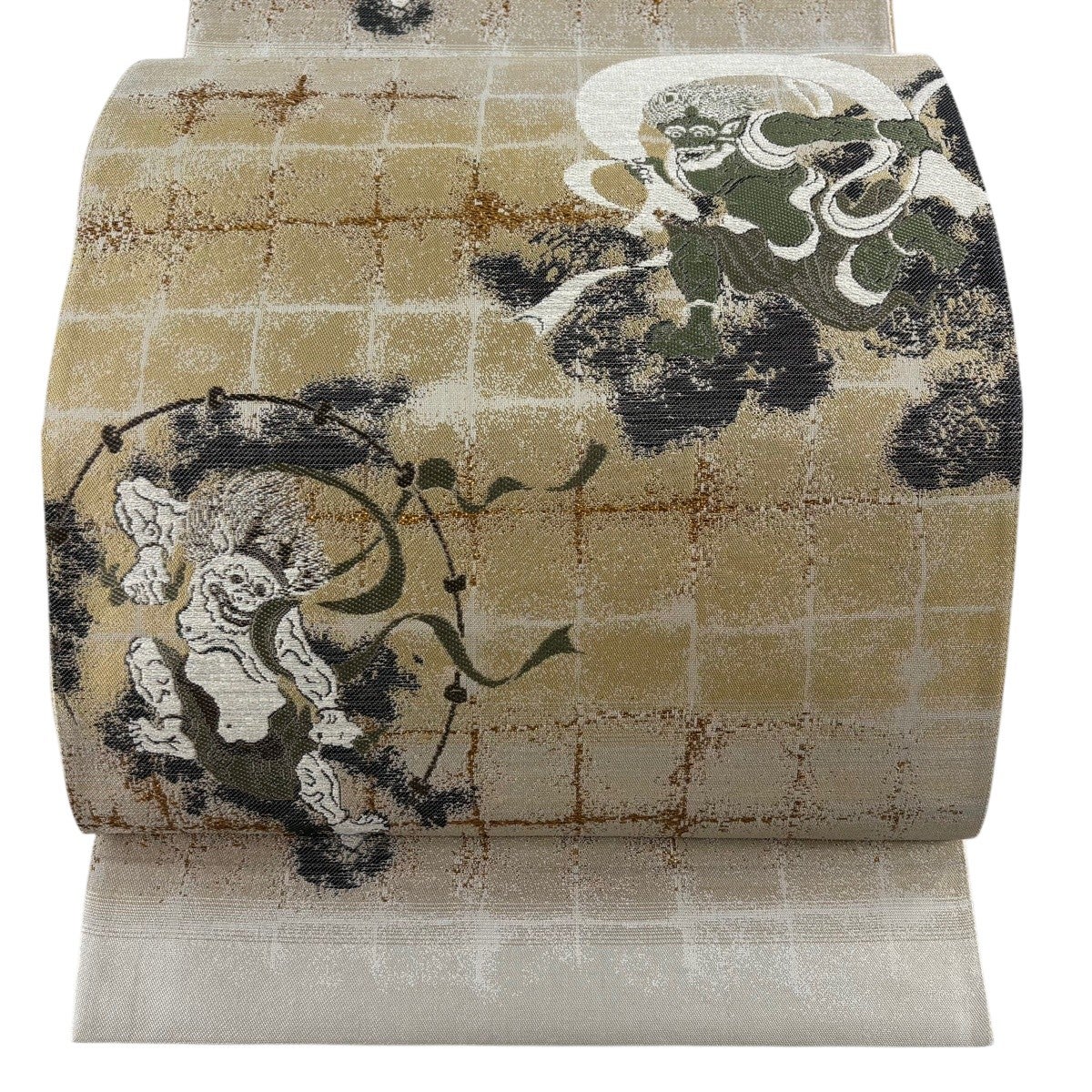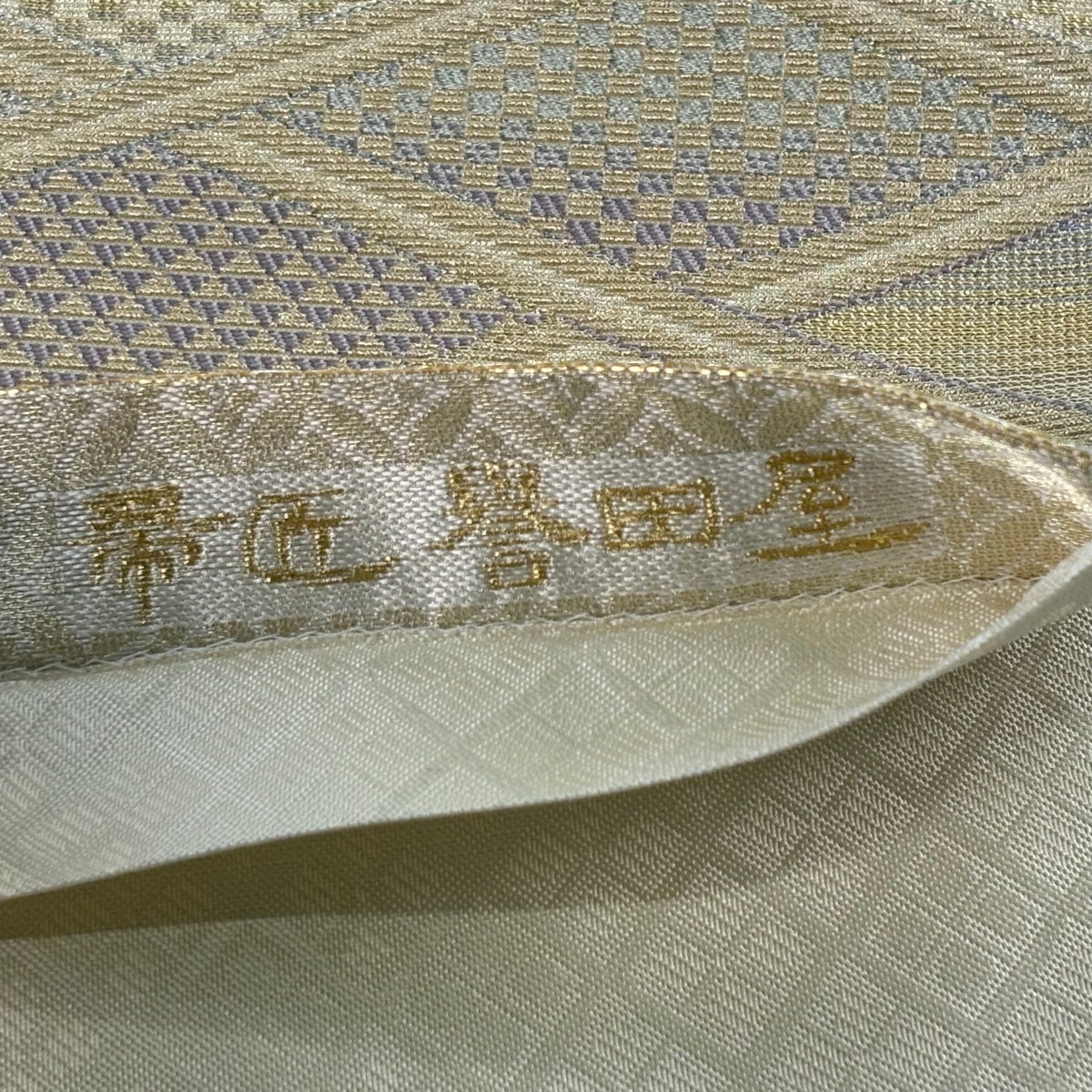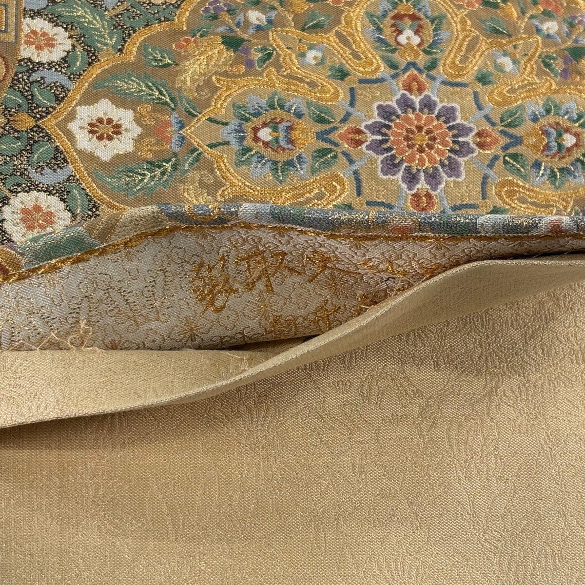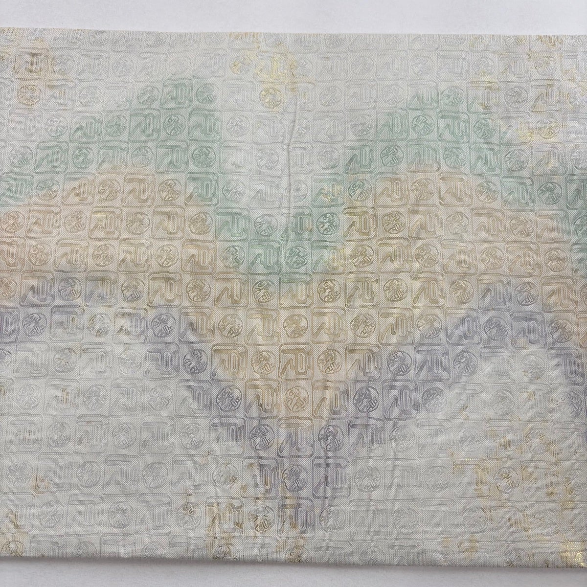 袋帯 名品 落款あり 関西仕立て 文字文 霞 箔 ベージュ 全通 正絹