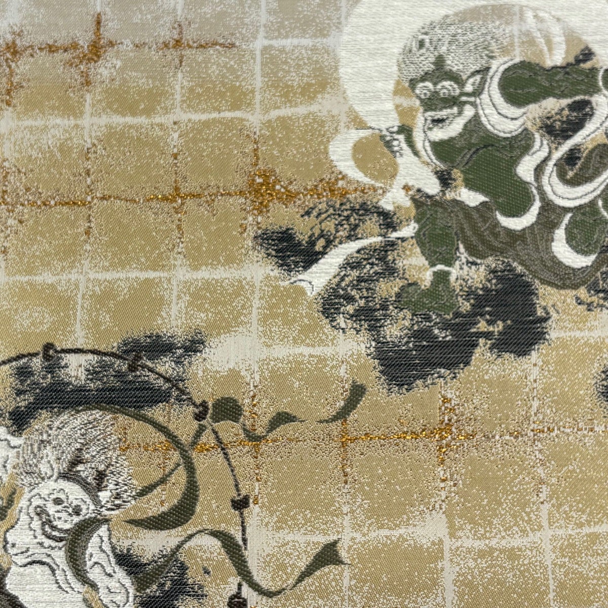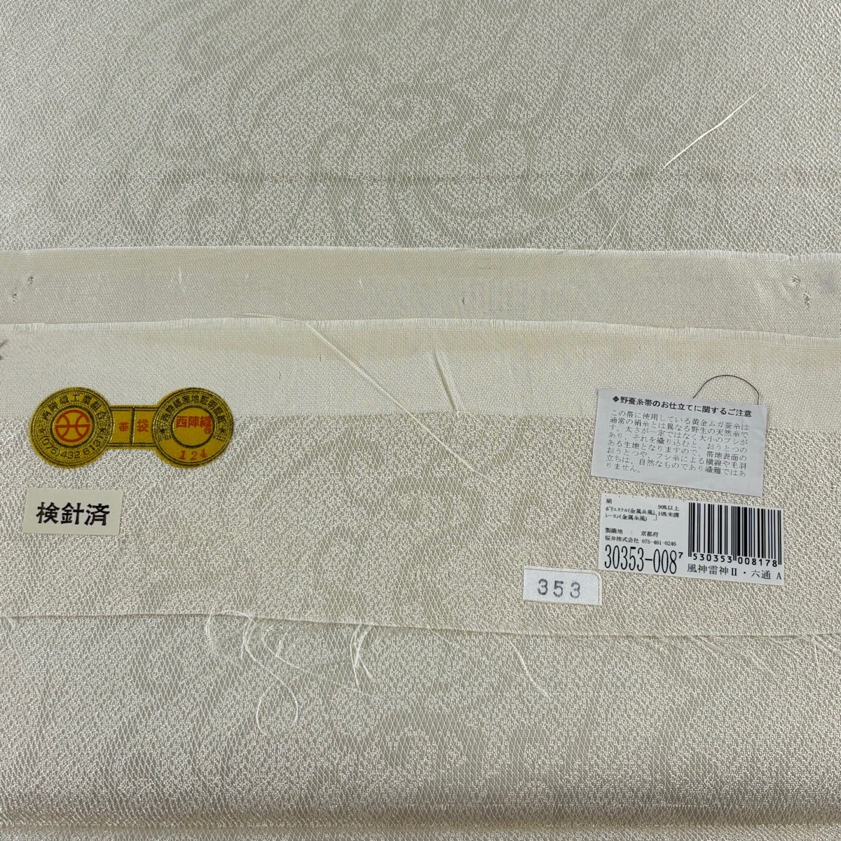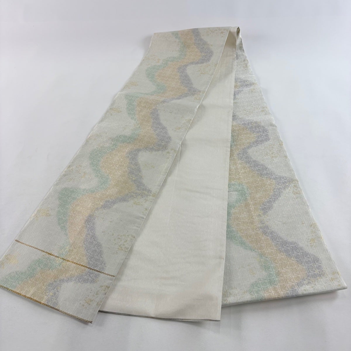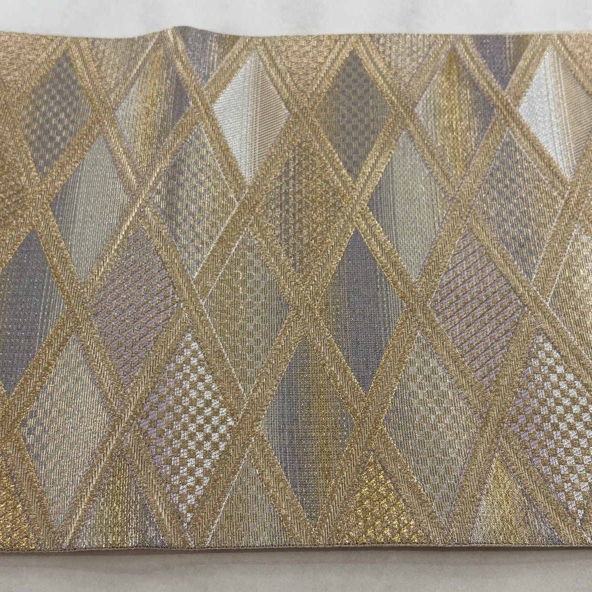 袋帯 名品 落款あり 関西仕立て 文字文 霞 箔 ベージュ 全通 正絹