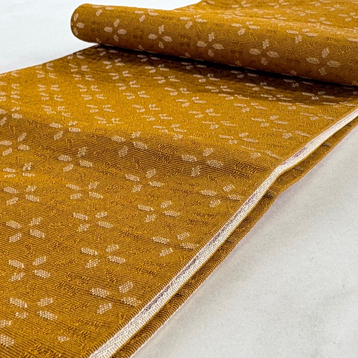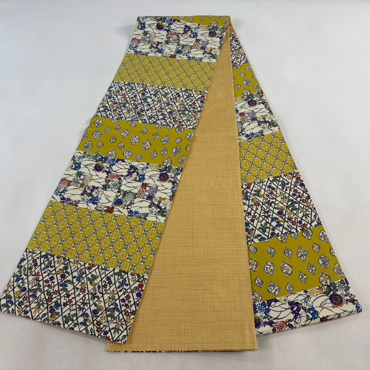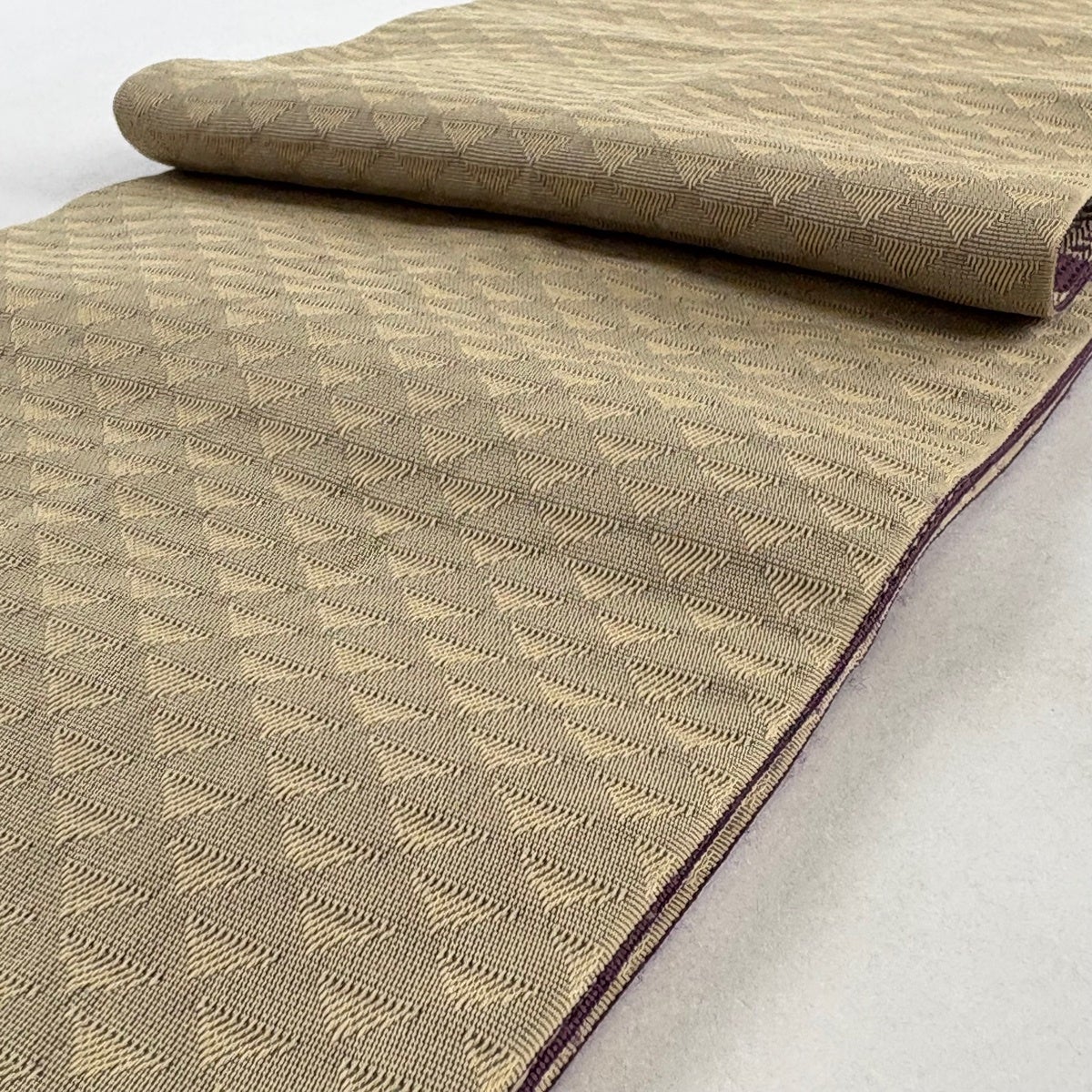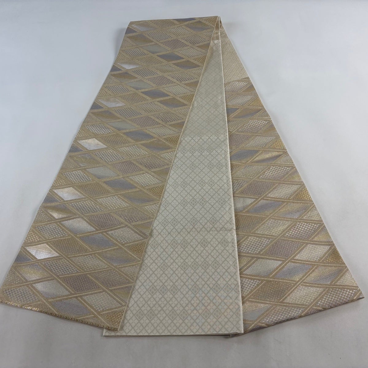 袋帯 名品 落款あり 関西仕立て 文字文 霞 箔 ベージュ 全通 正絹
