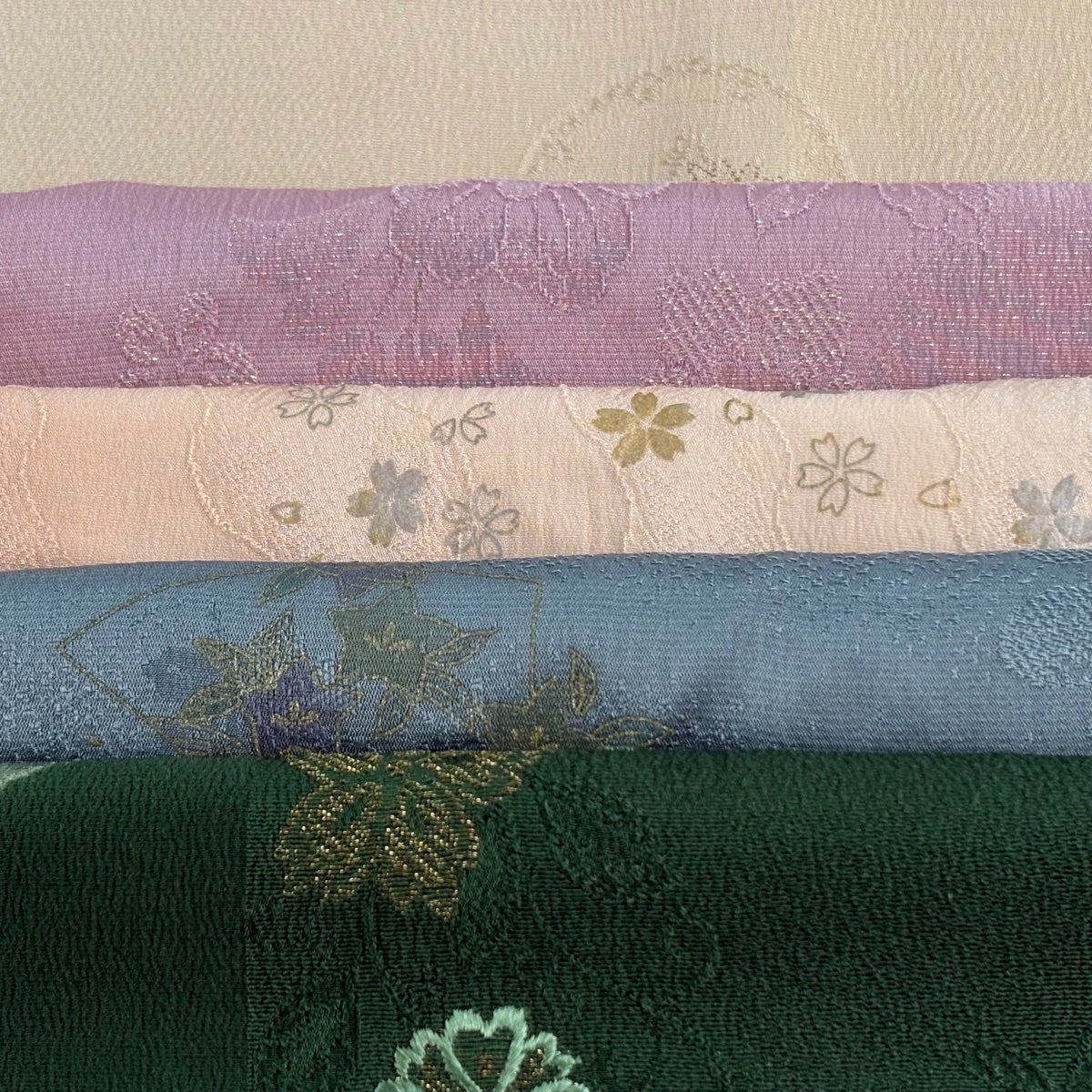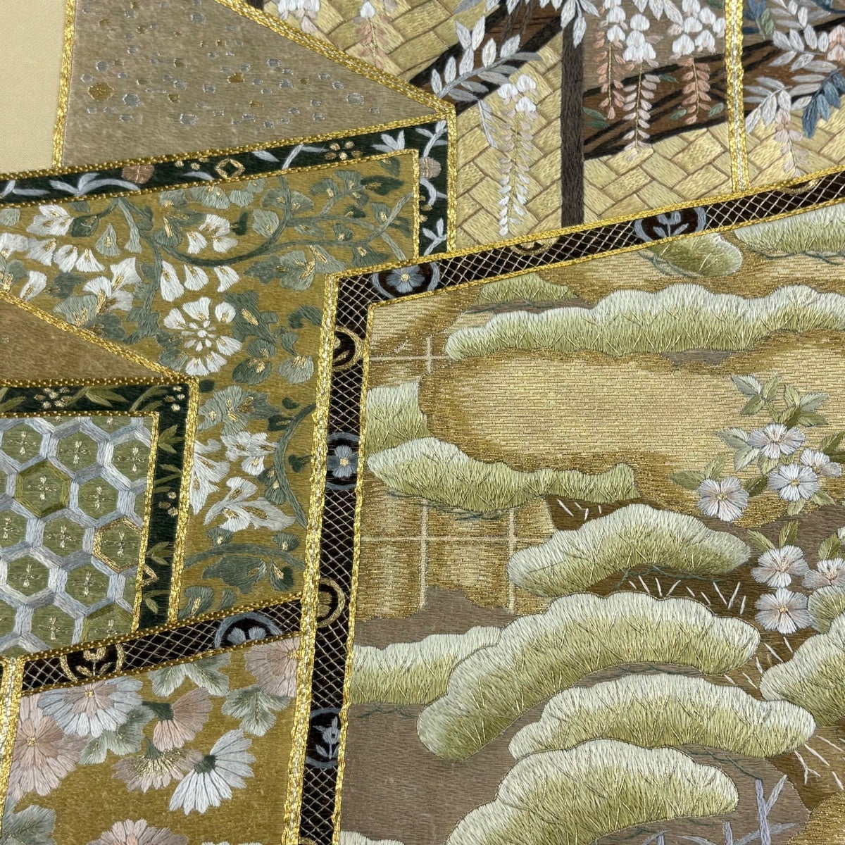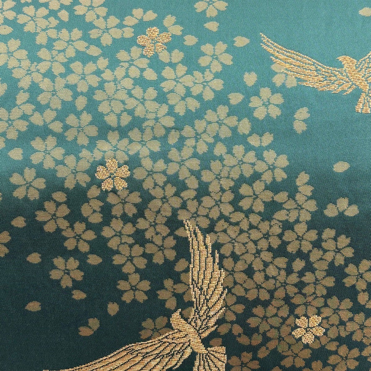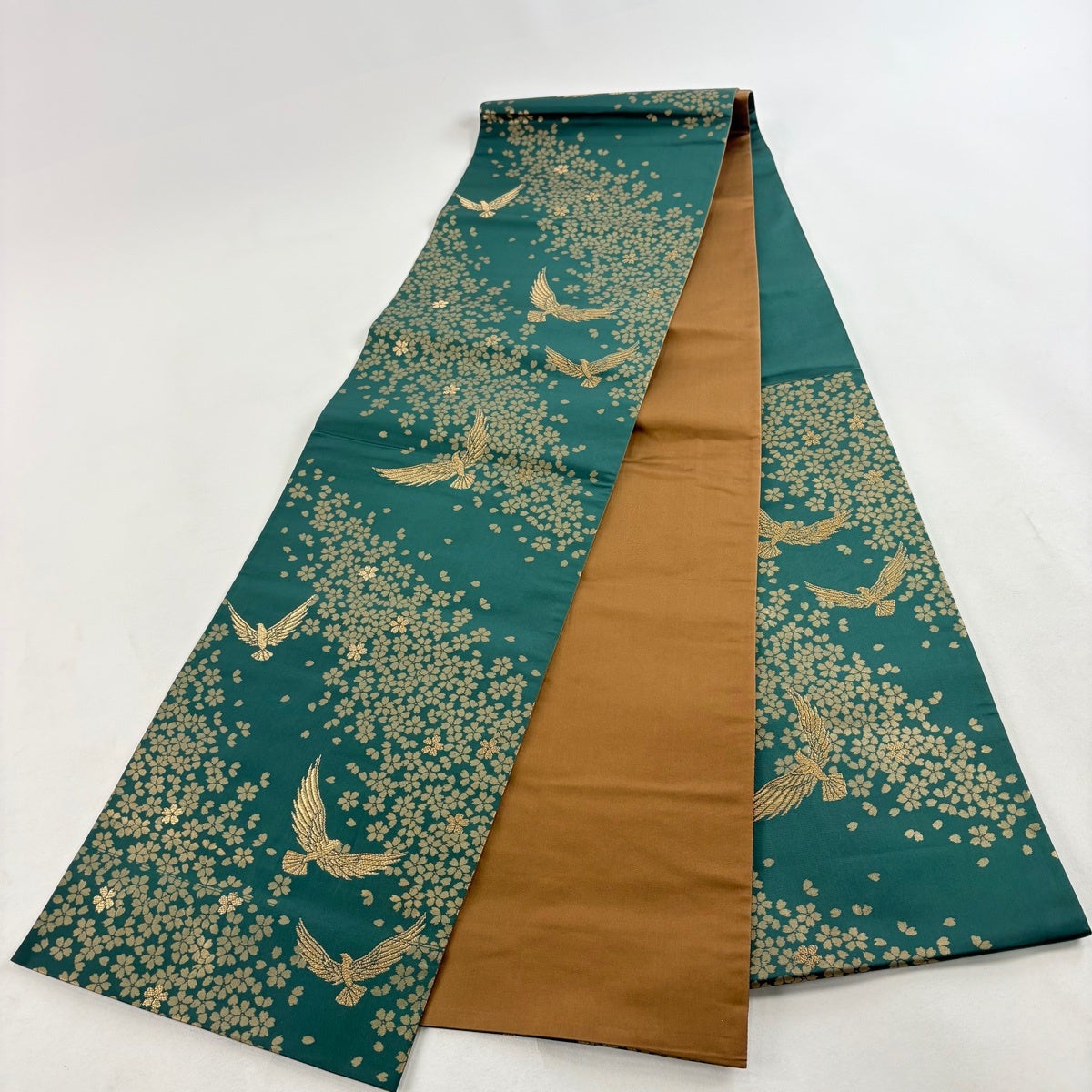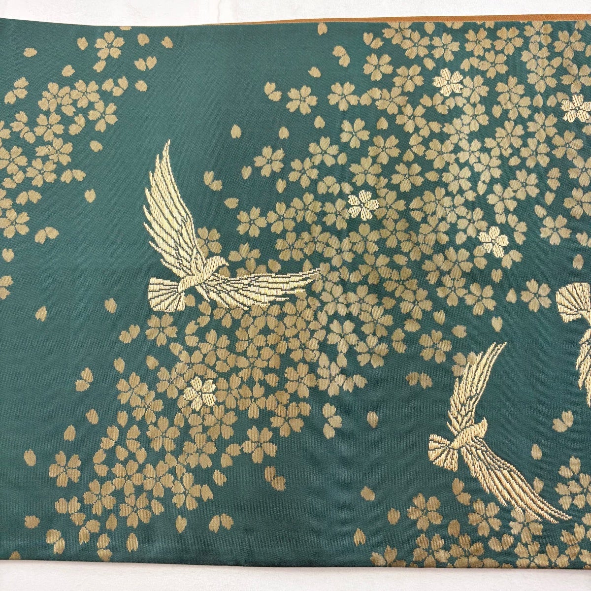 【美品】 袋帯 名品 斉藤三才 落款あり 三才鳥 桜 金糸 箔 緑 六通 正絹
