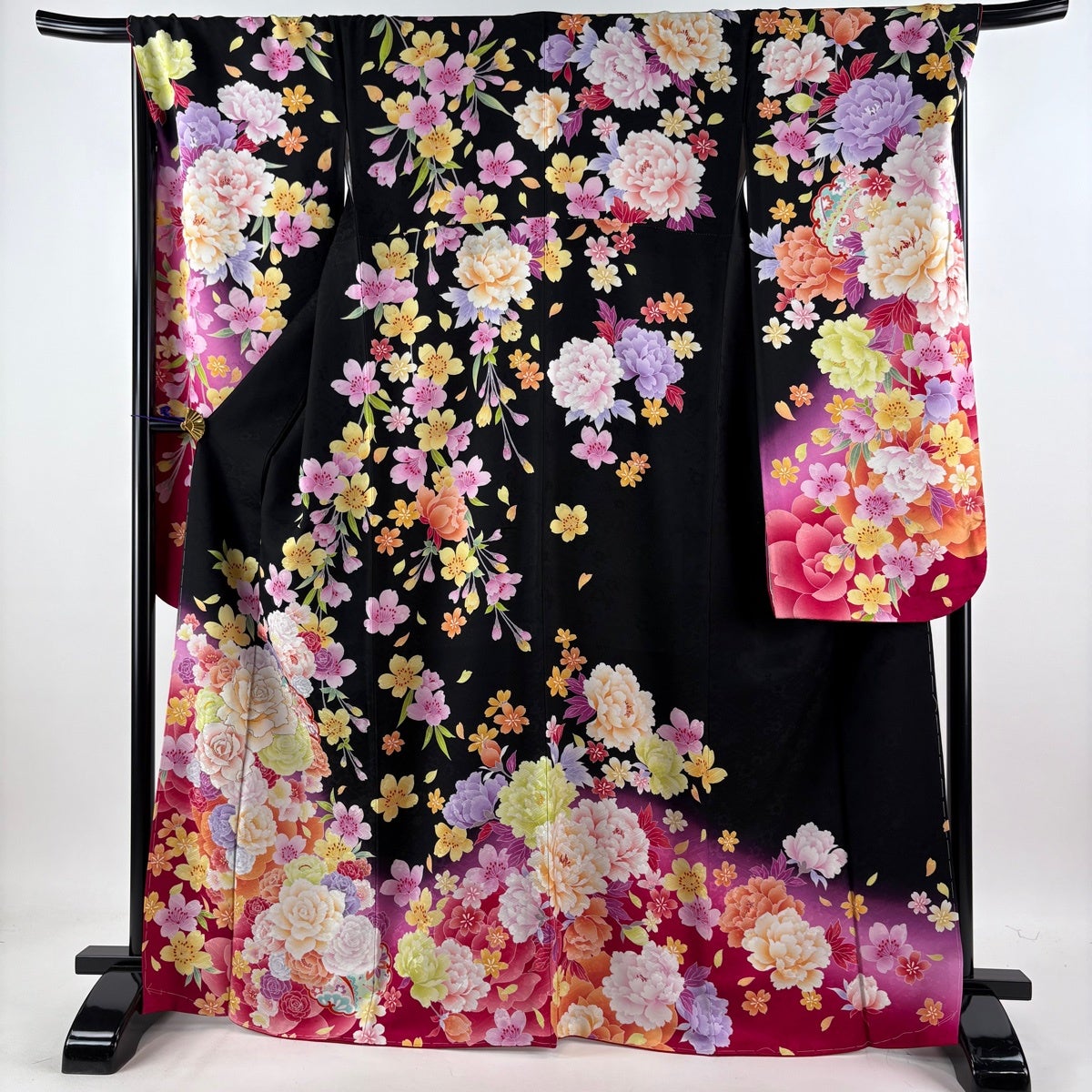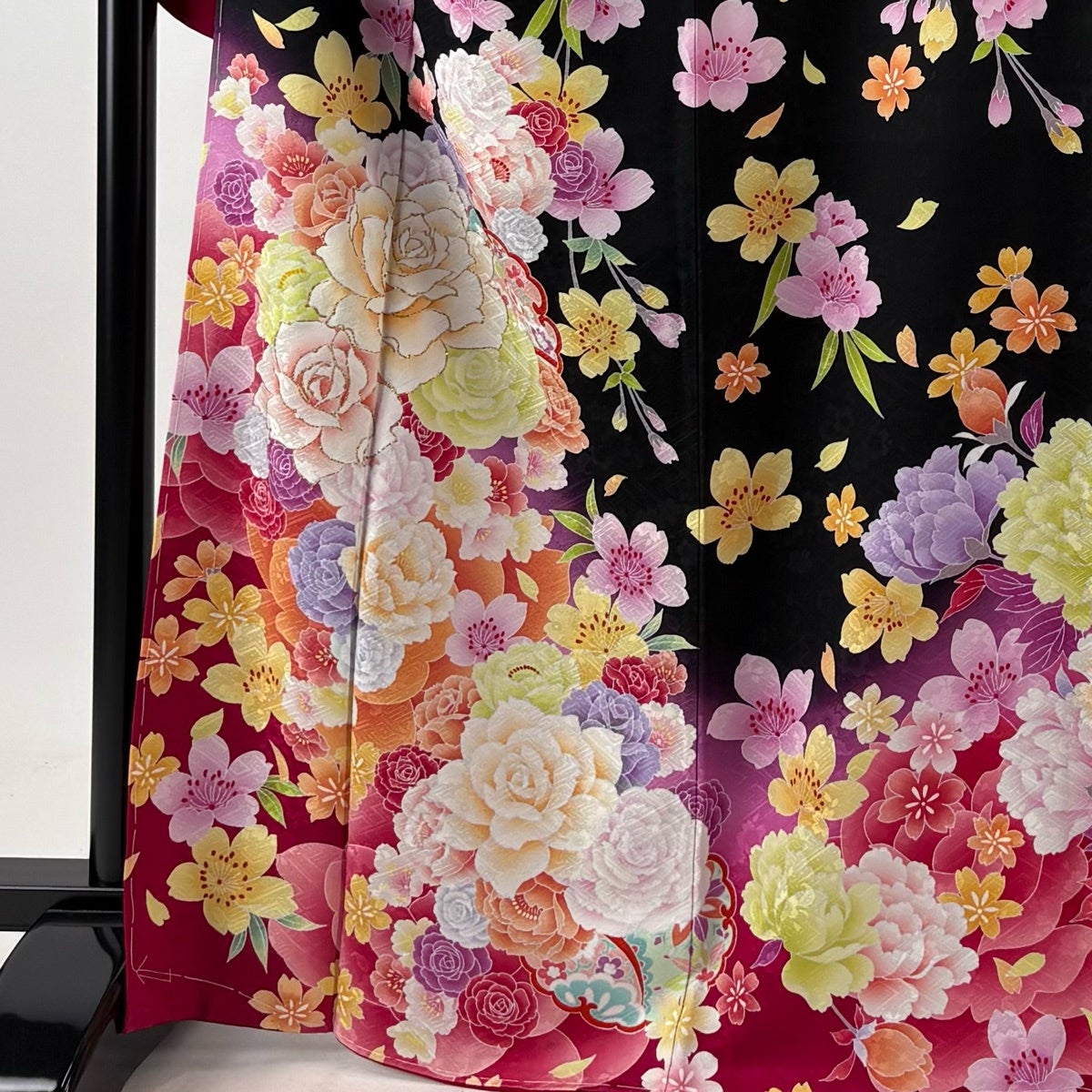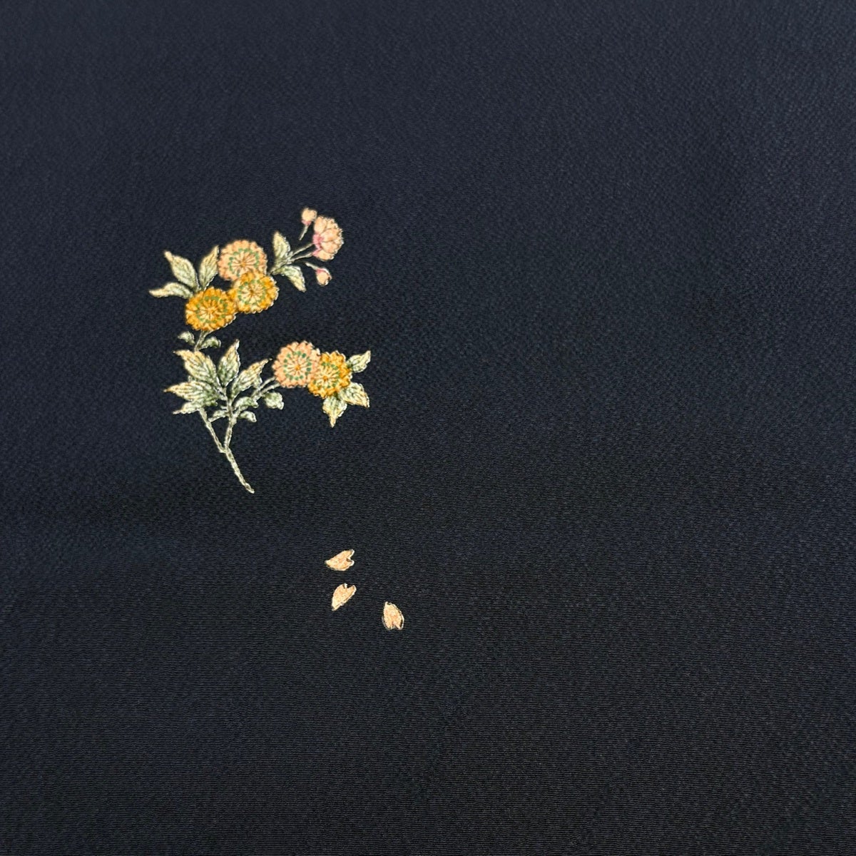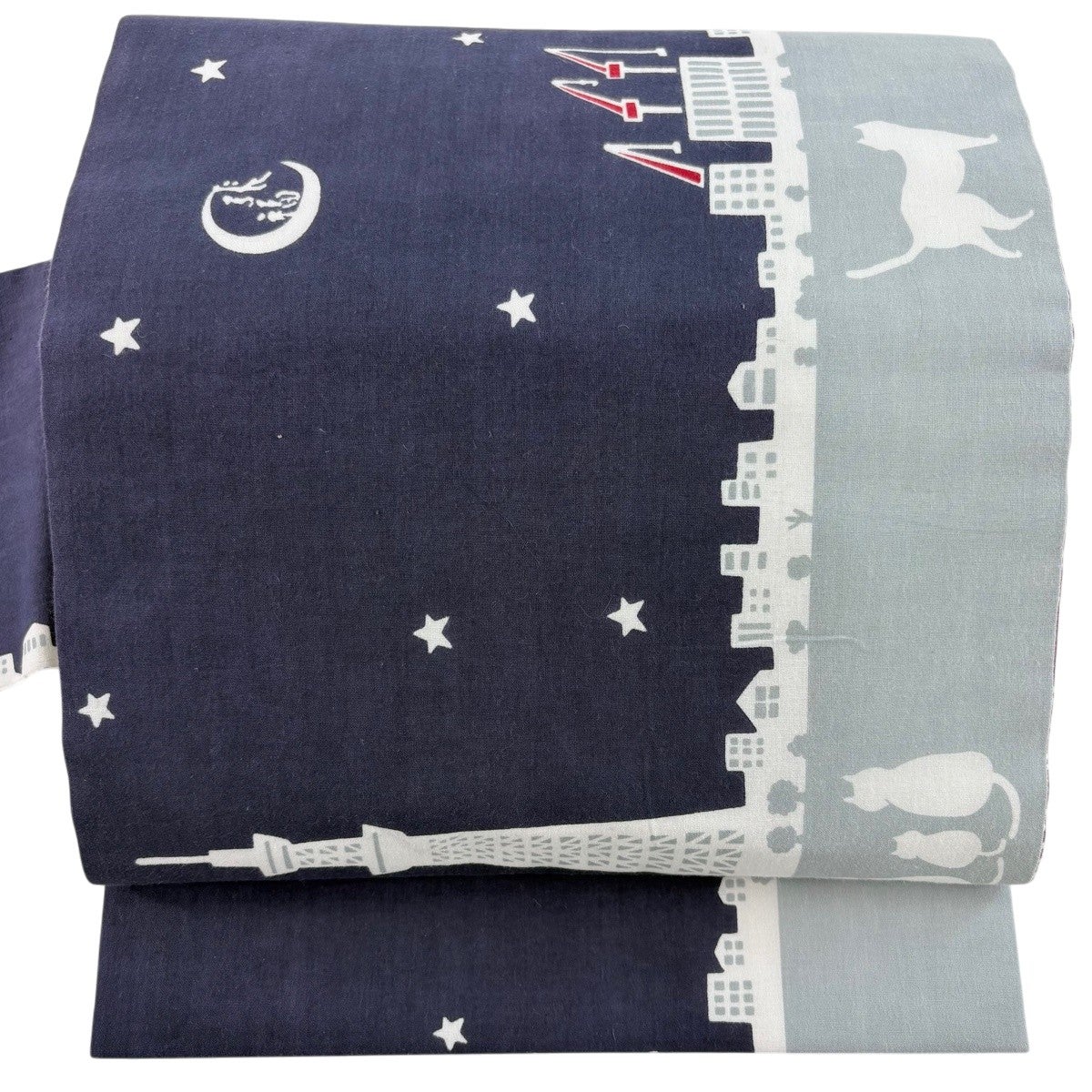 【美品】 名古屋帯 逸品 猫 桜 金糸 刺繍 黒 正絹
