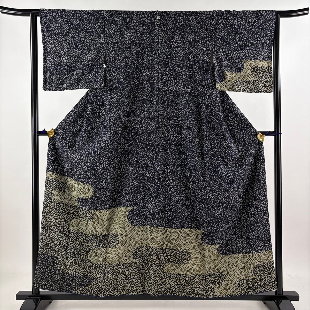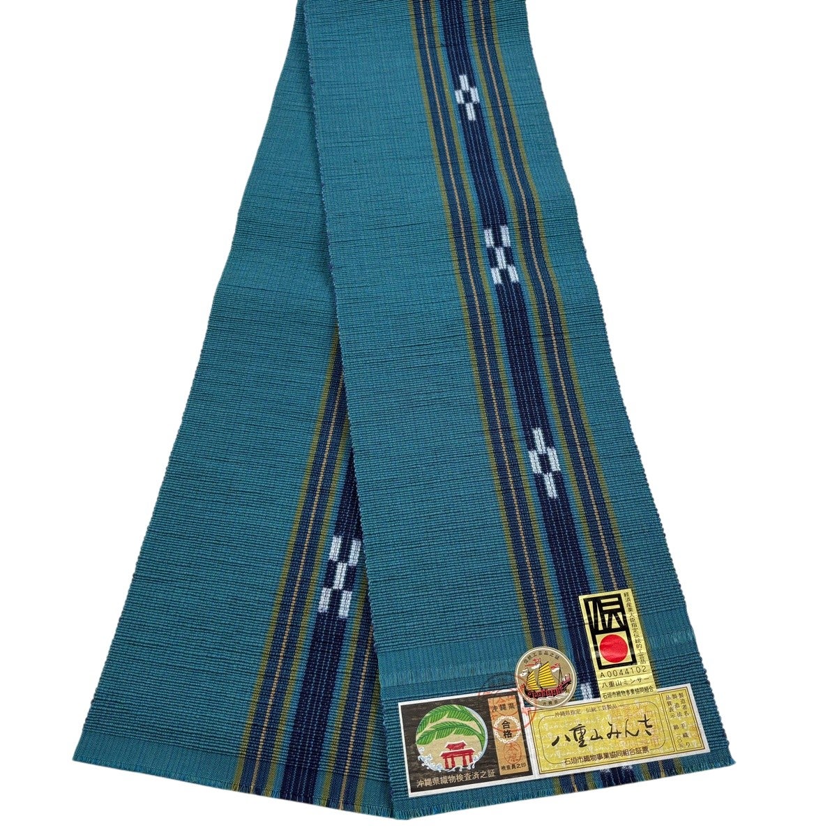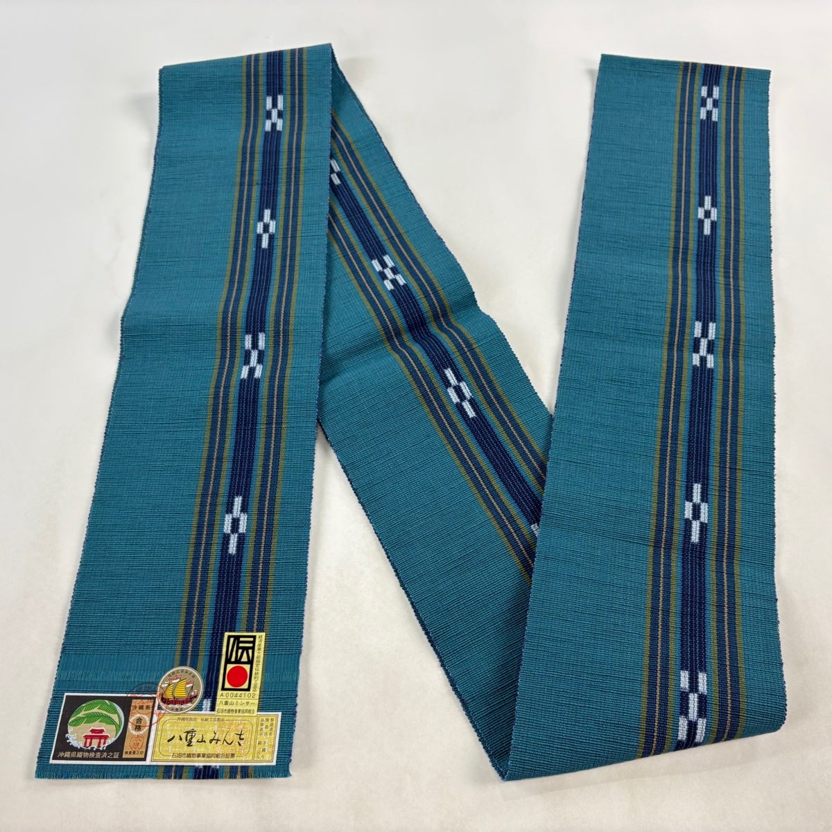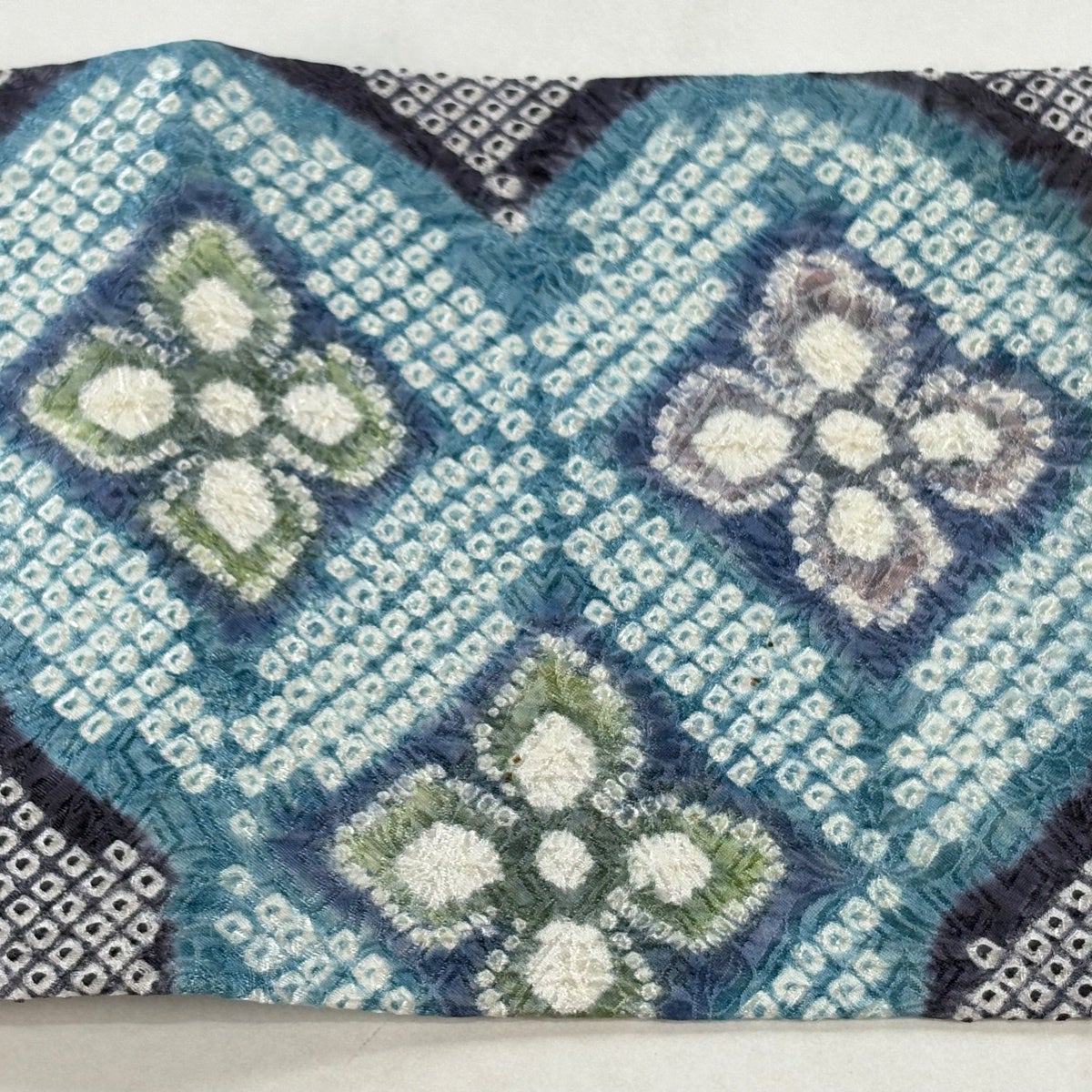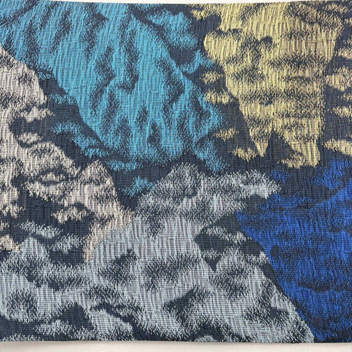 【美品】 袋帯 名品 幾何学模様 金銀糸 青 全通 正絹