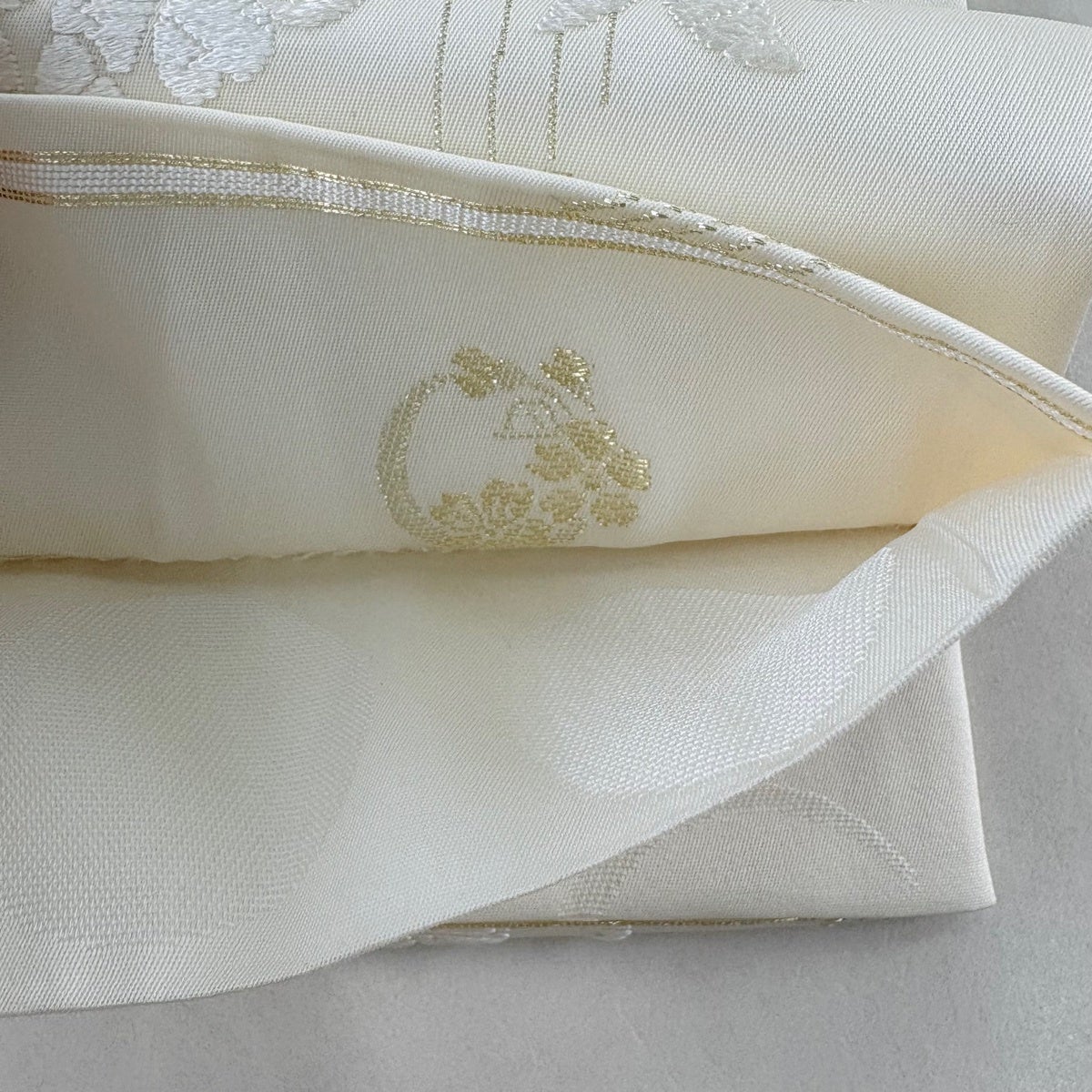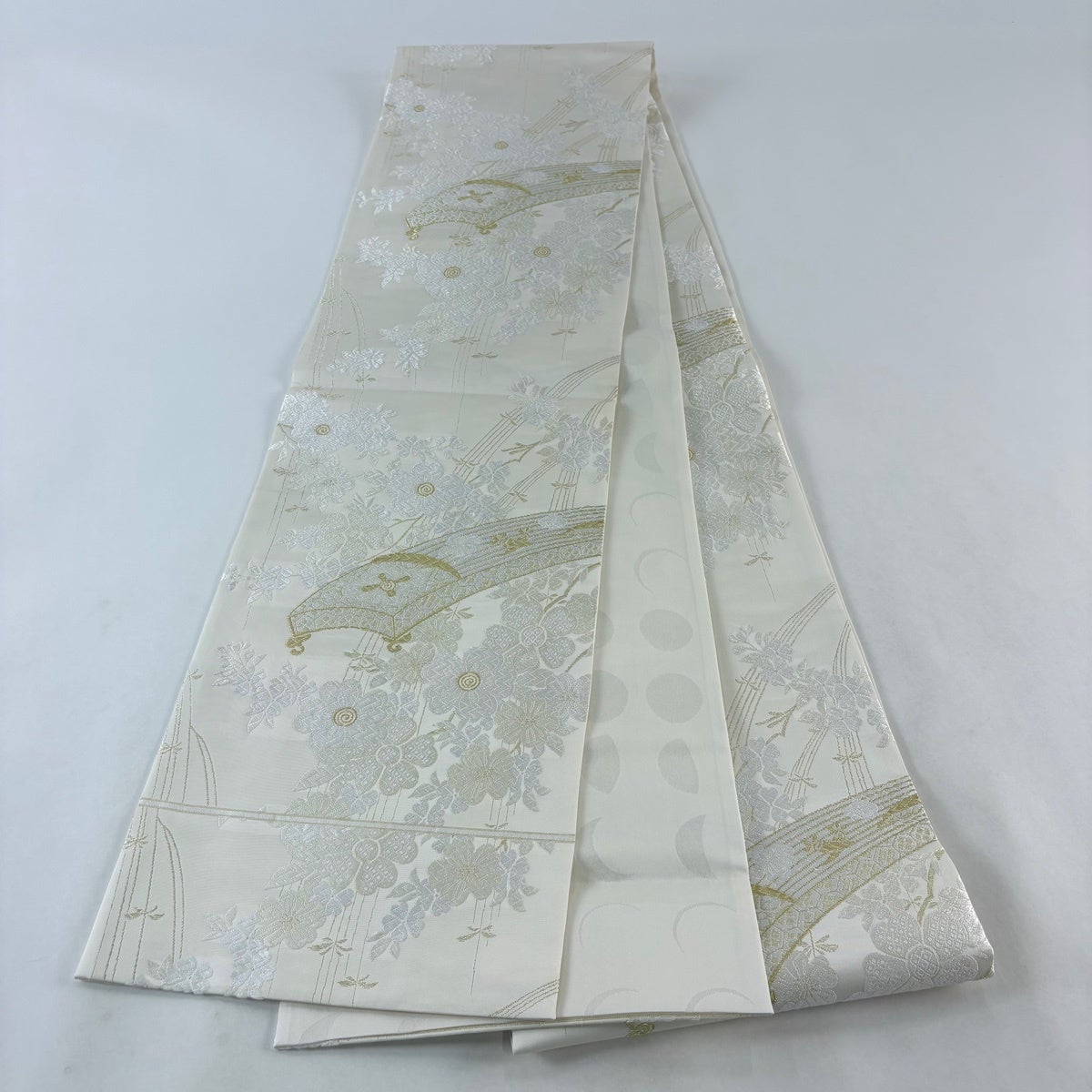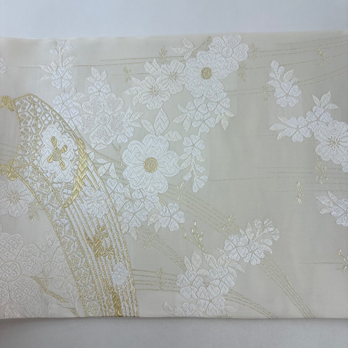 【美品】 袋帯 名品 枝垂れ桜 琴 クリーム 全通 正絹