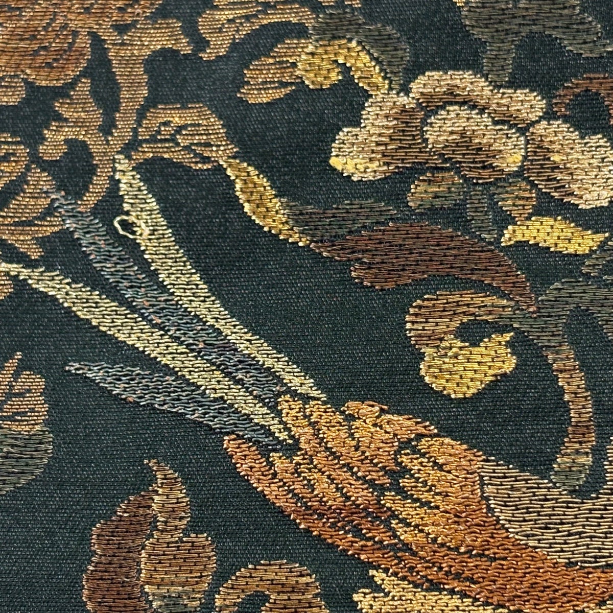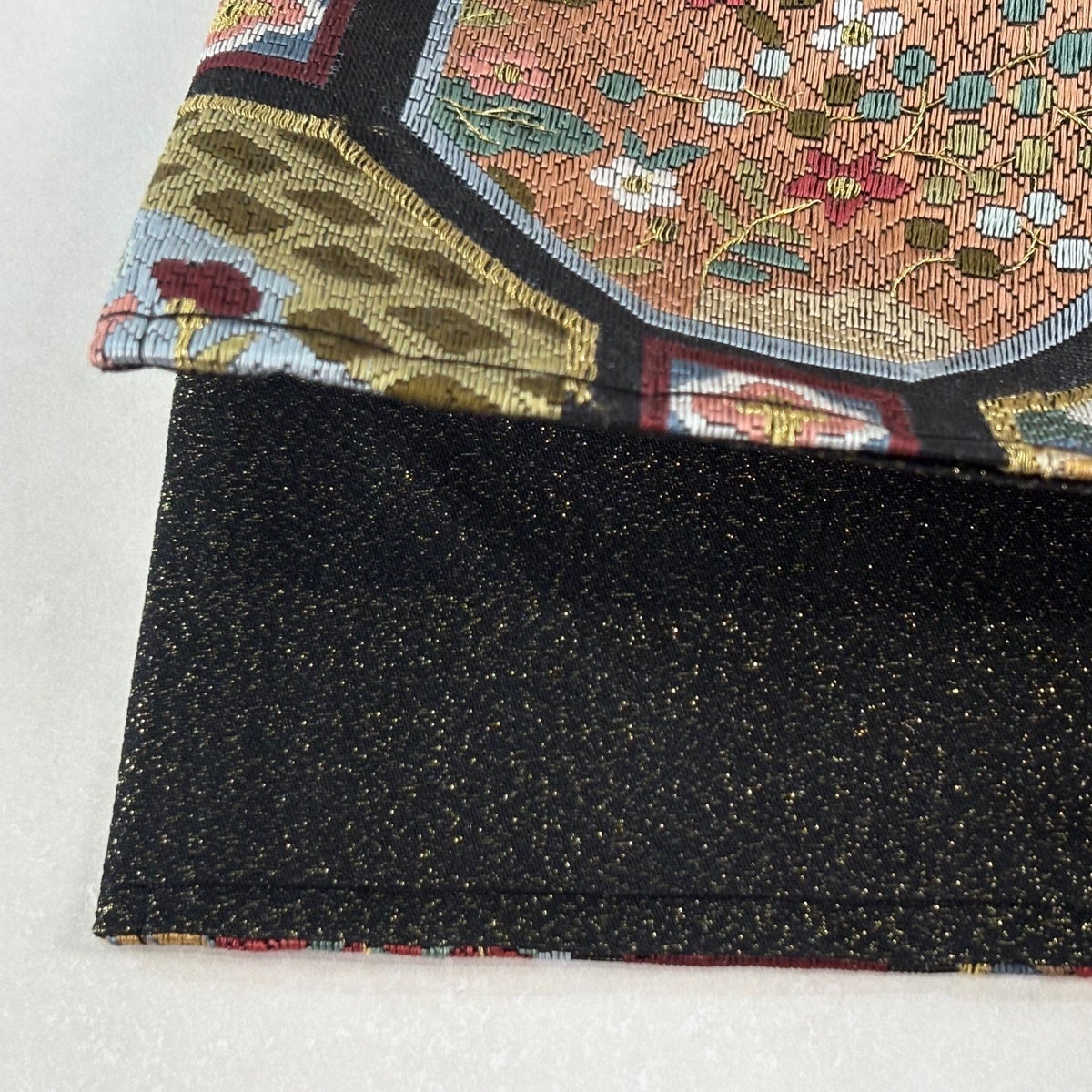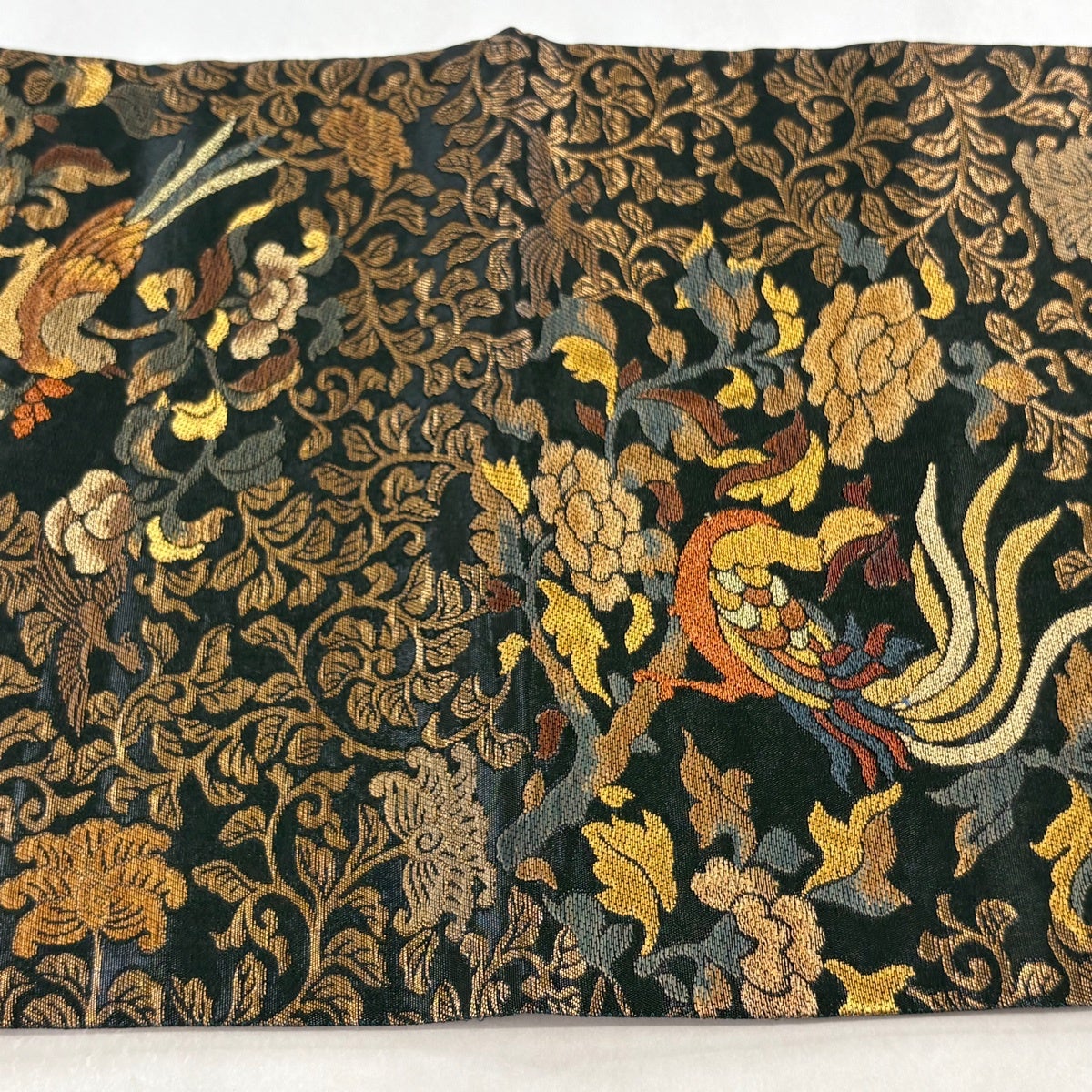 袋帯 逸品 蜀江文 花鳥 刺繍 金糸 墨色 全通 正絹