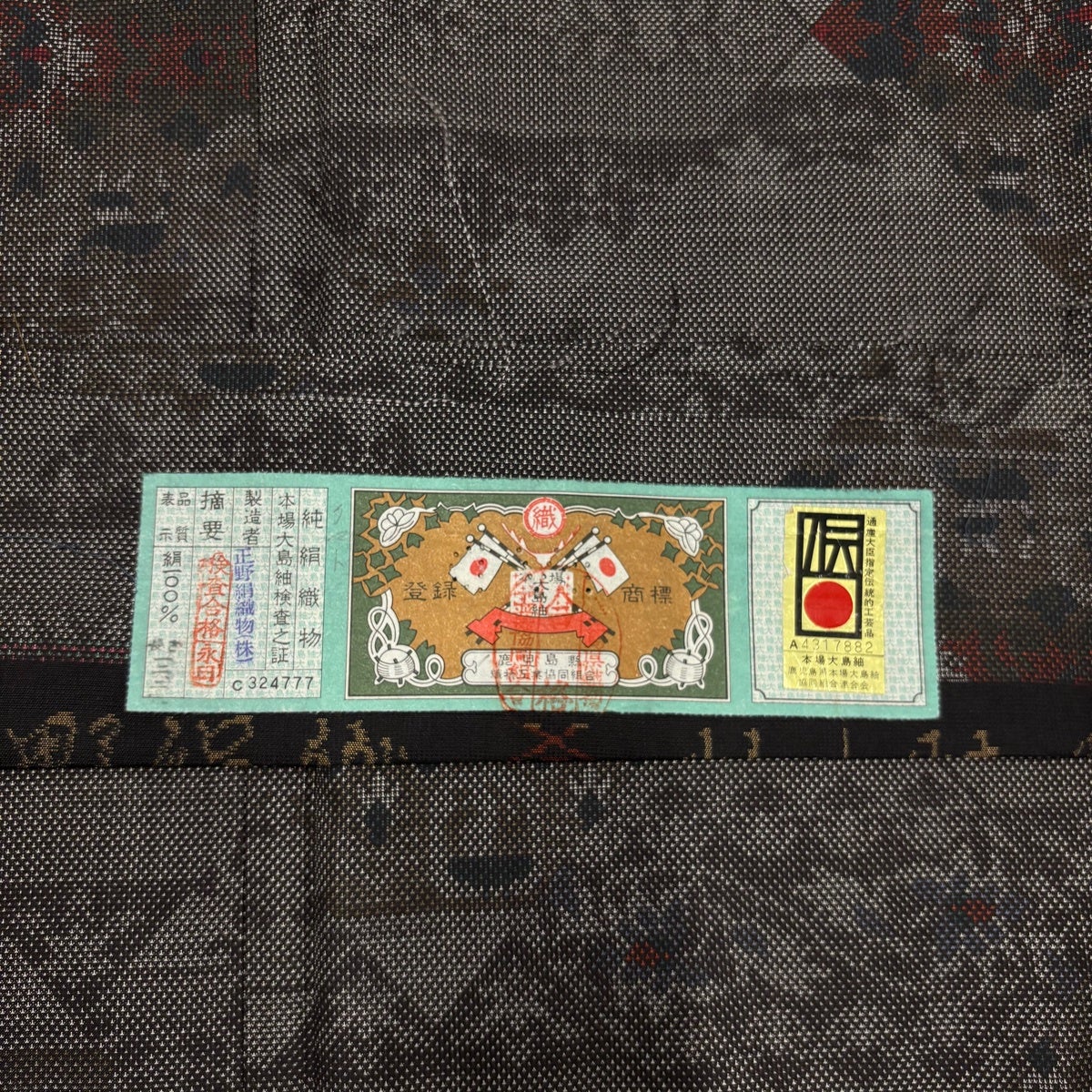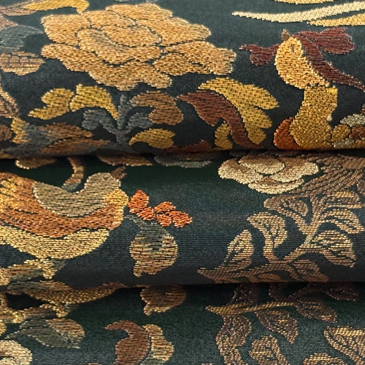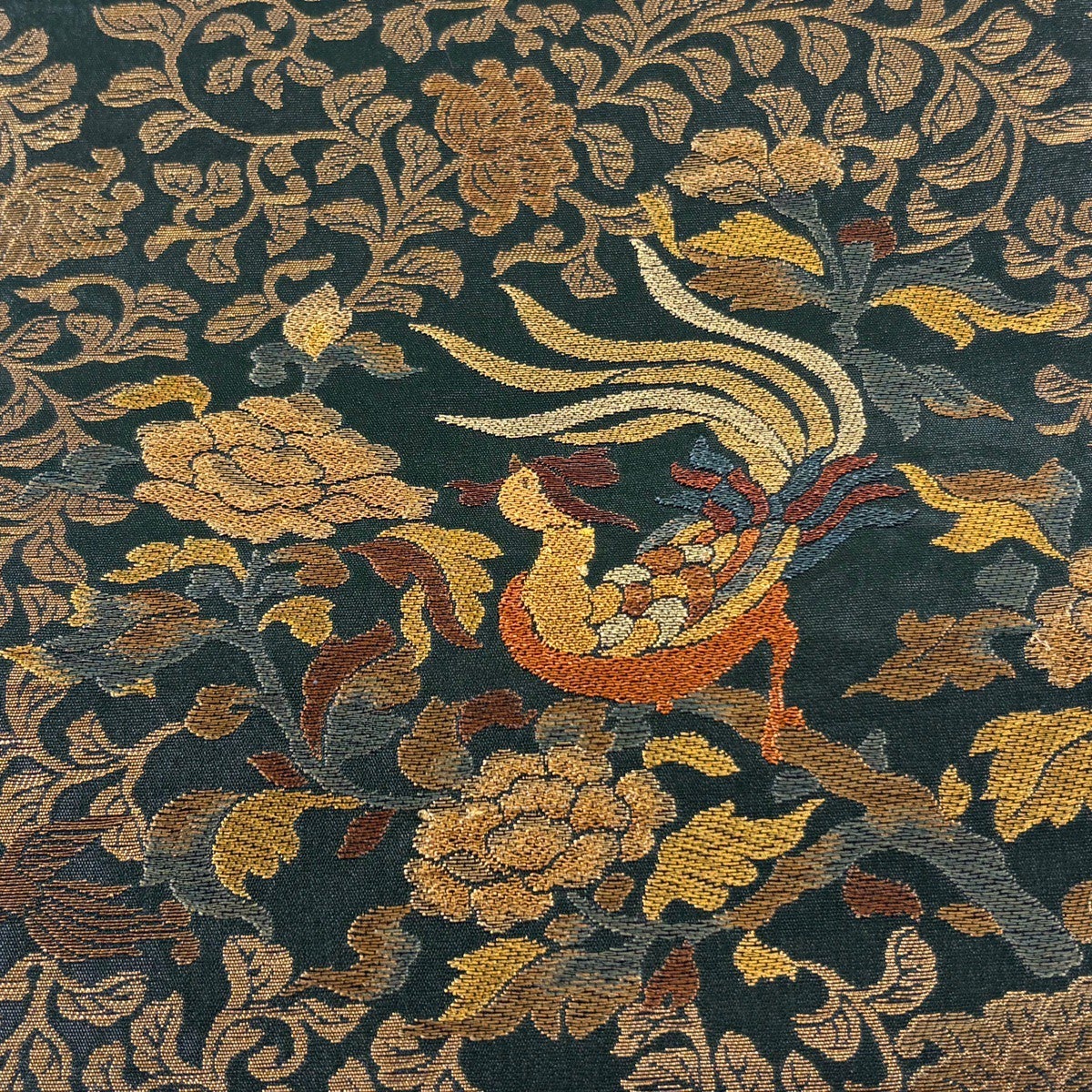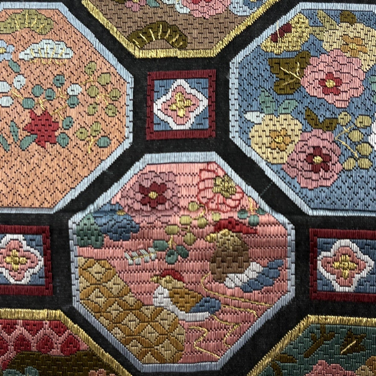 袋帯 逸品 蜀江文 花鳥 刺繍 金糸 墨色 全通 正絹