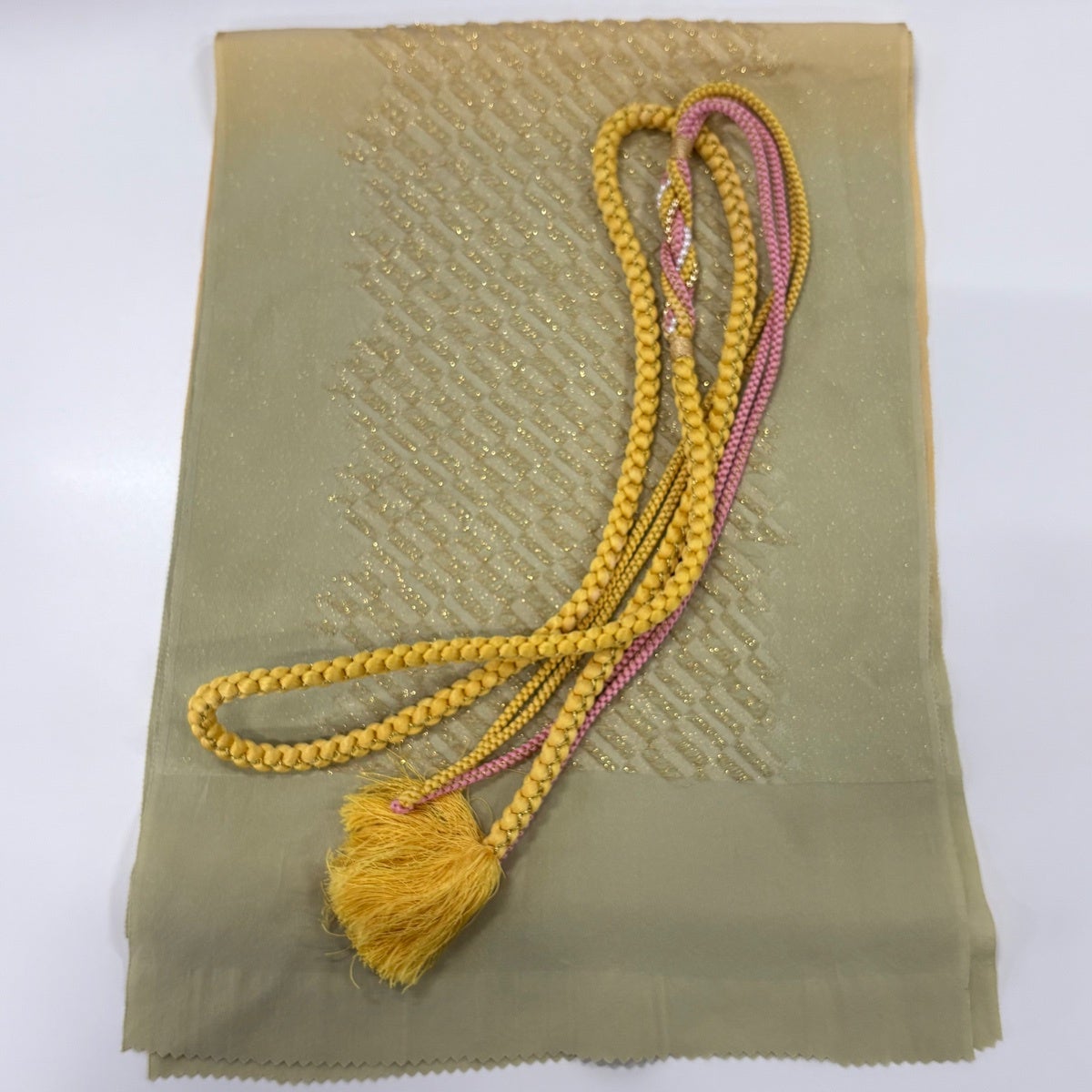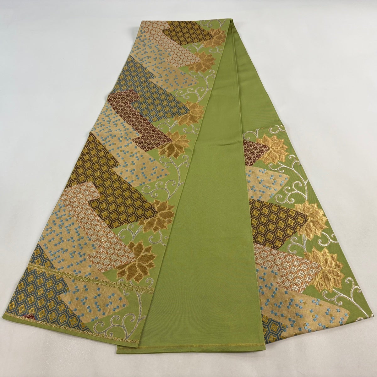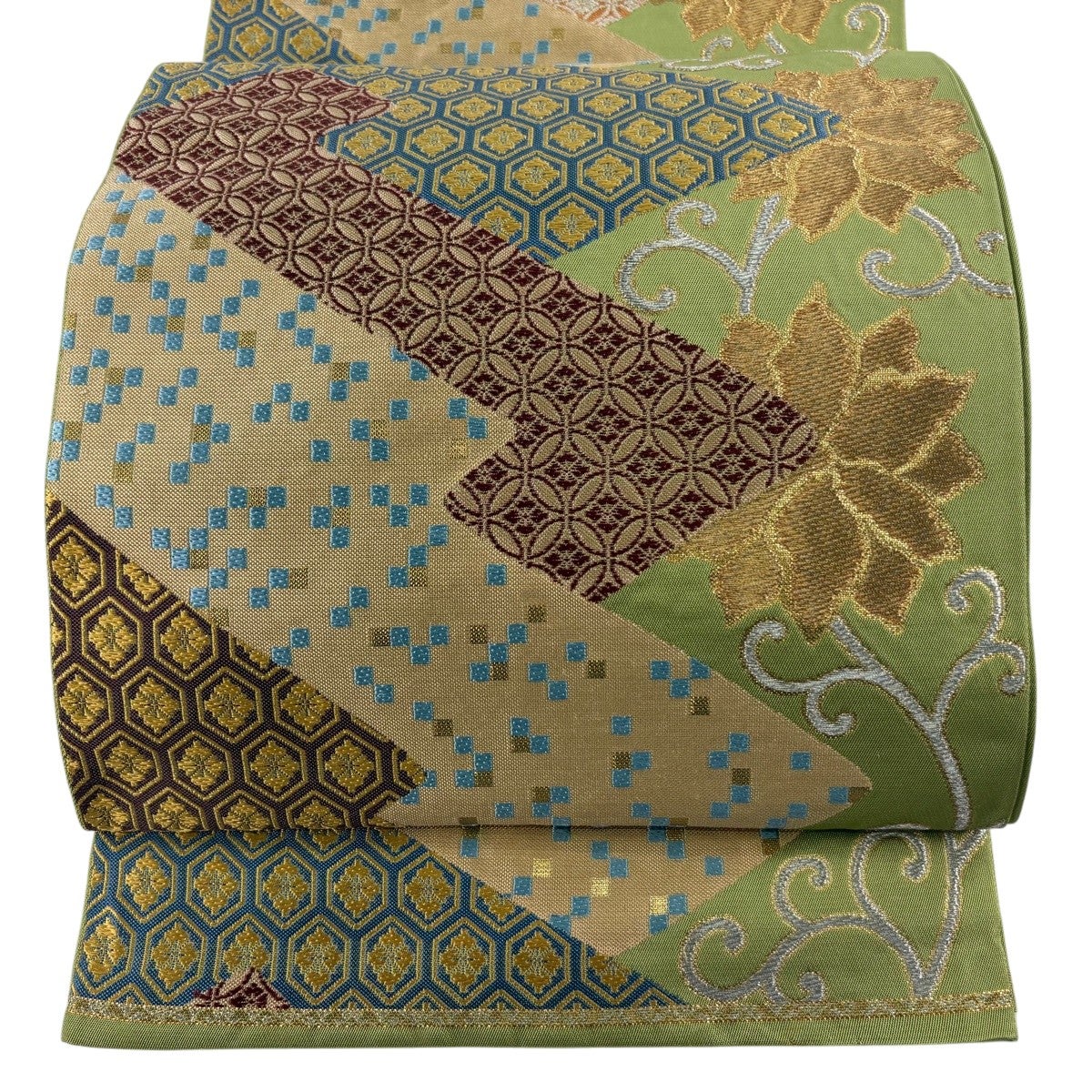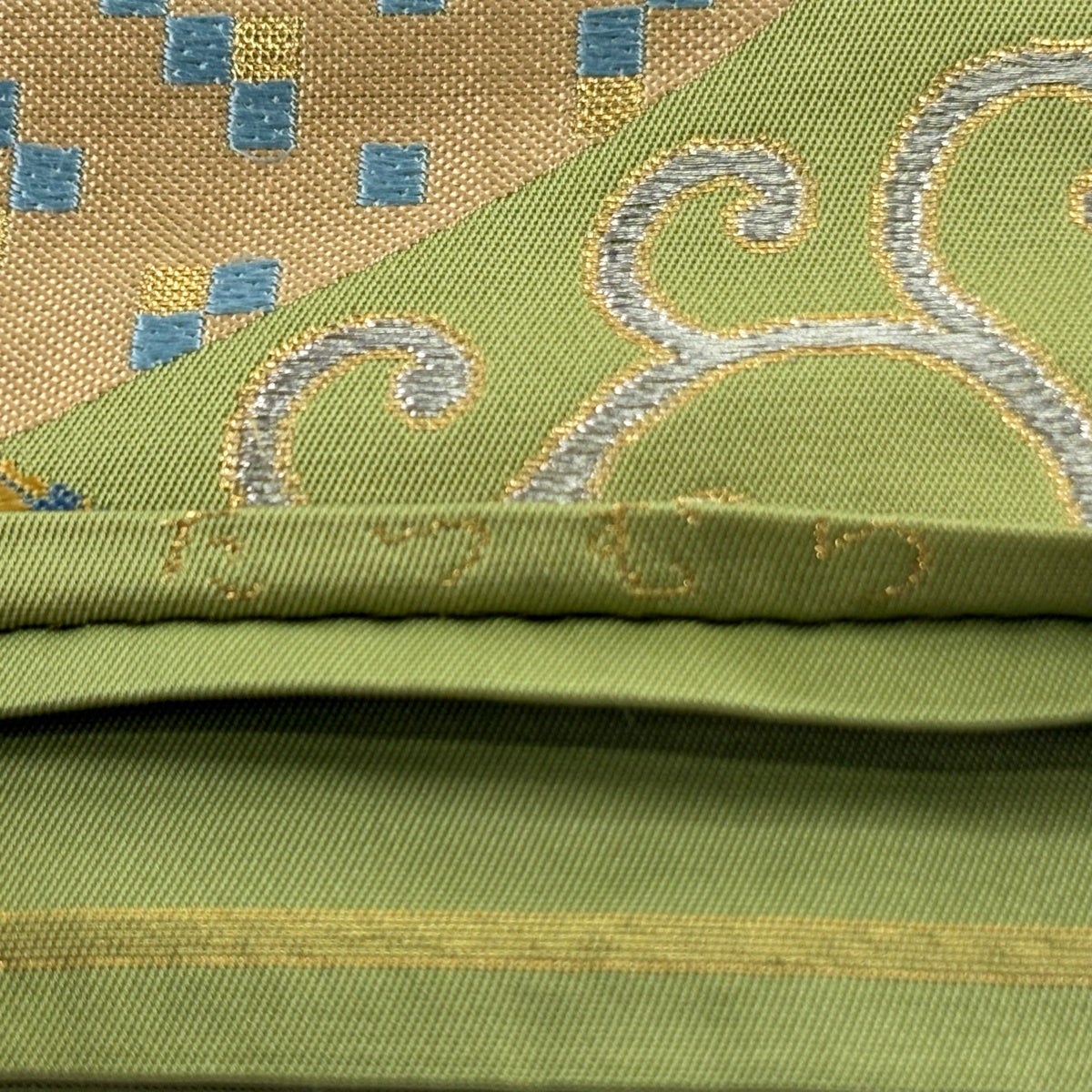 【美品】 袋帯 逸品 龍村美術織物 たつむら 本袋 関西仕立て 小袖唐草文 亀甲 金銀糸 箔 抹茶色 六通 正絹