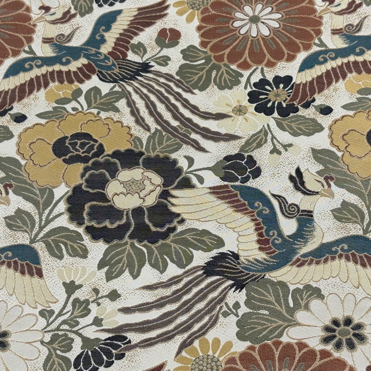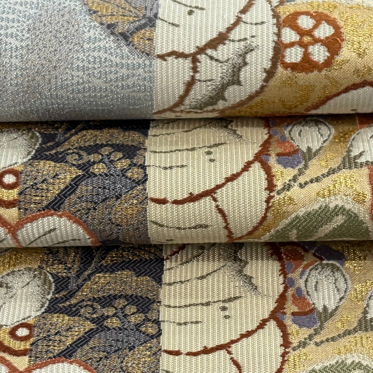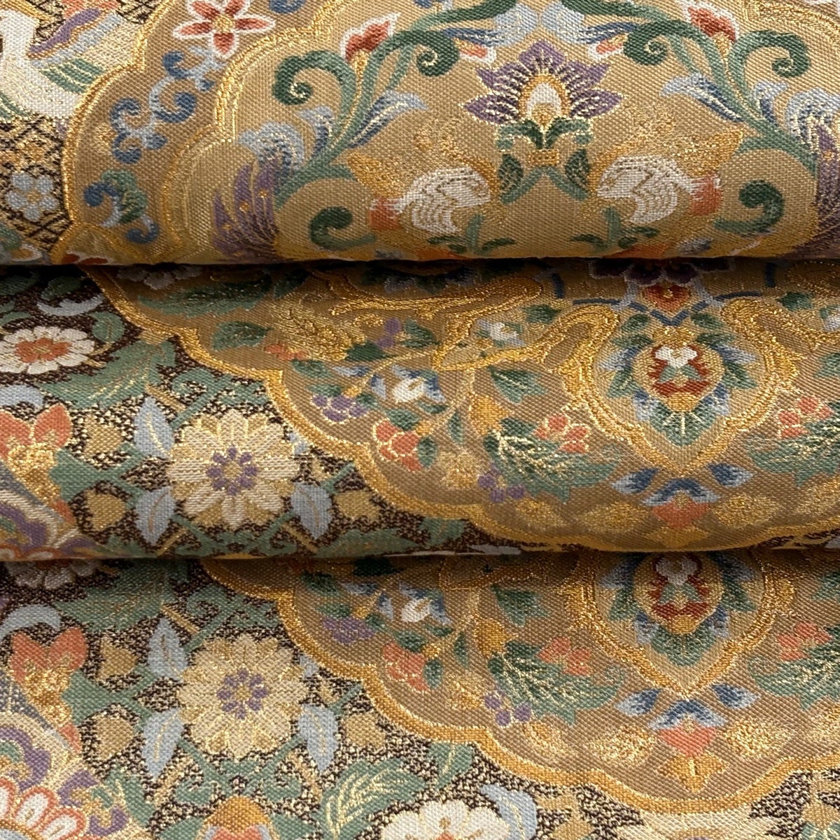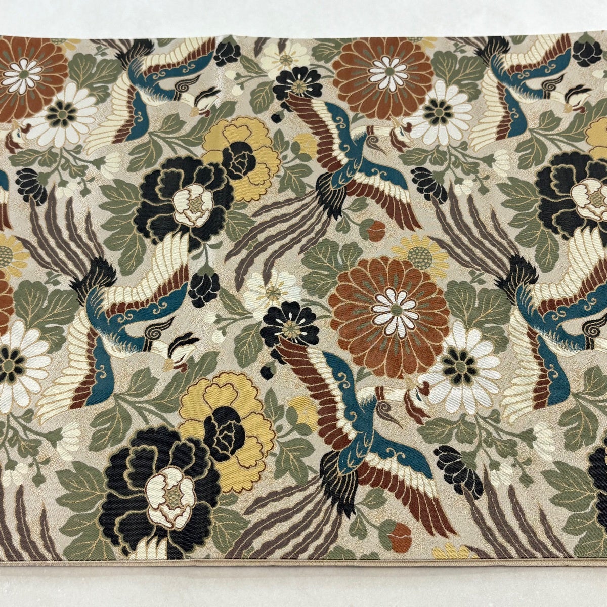 【美品】 袋帯 逸品 じゅらく 落款あり 向かい鳥 花菱 金糸 箔 金色 お太鼓柄 正絹