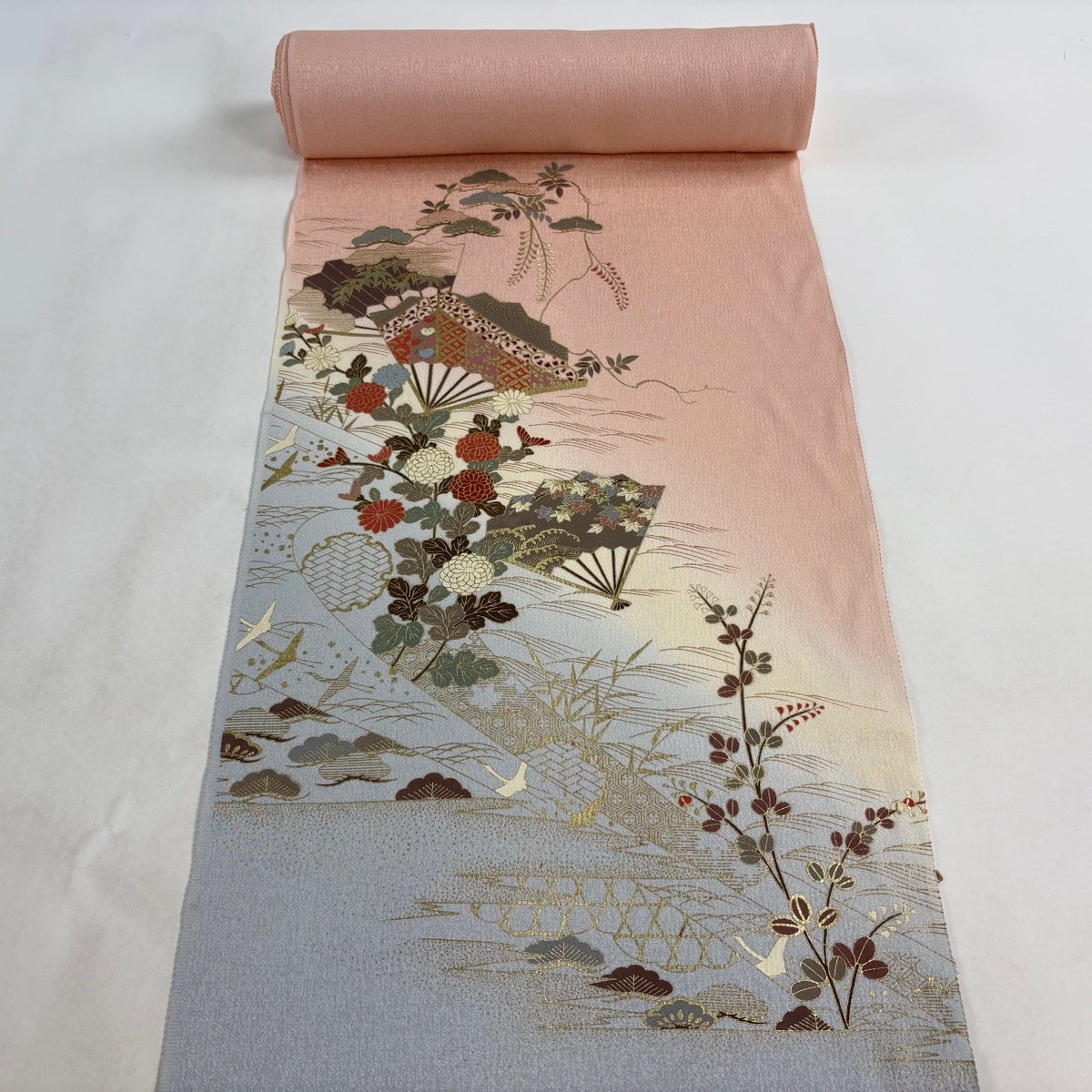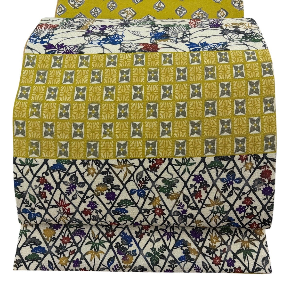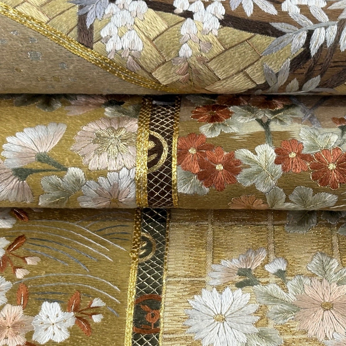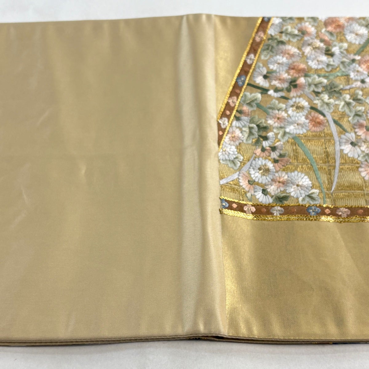 【美品】 袋帯 逸品 じゅらく 落款あり 向かい鳥 花菱 金糸 箔 金色 お太鼓柄 正絹