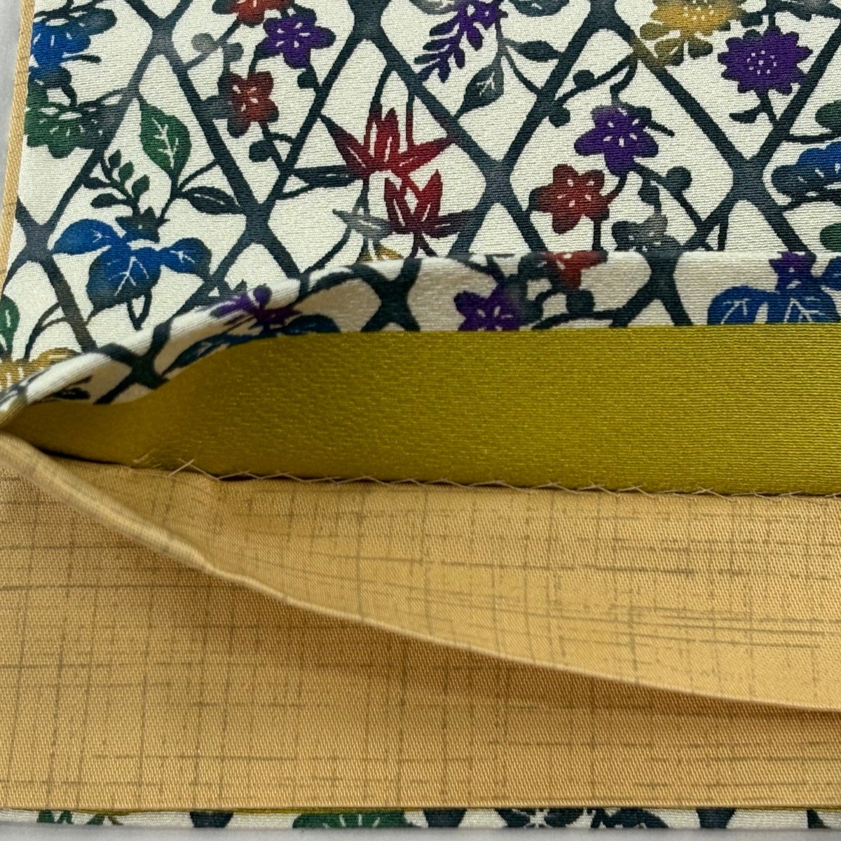 袋帯 逸品 菱屋善兵衛 落款あり 草花 鳥 金糸 灰茶 六通 正絹