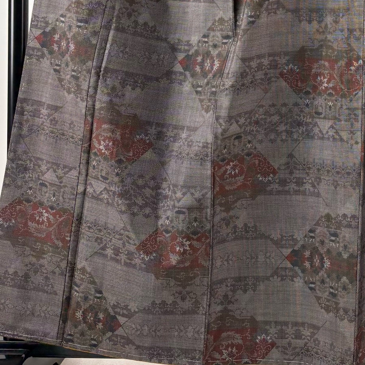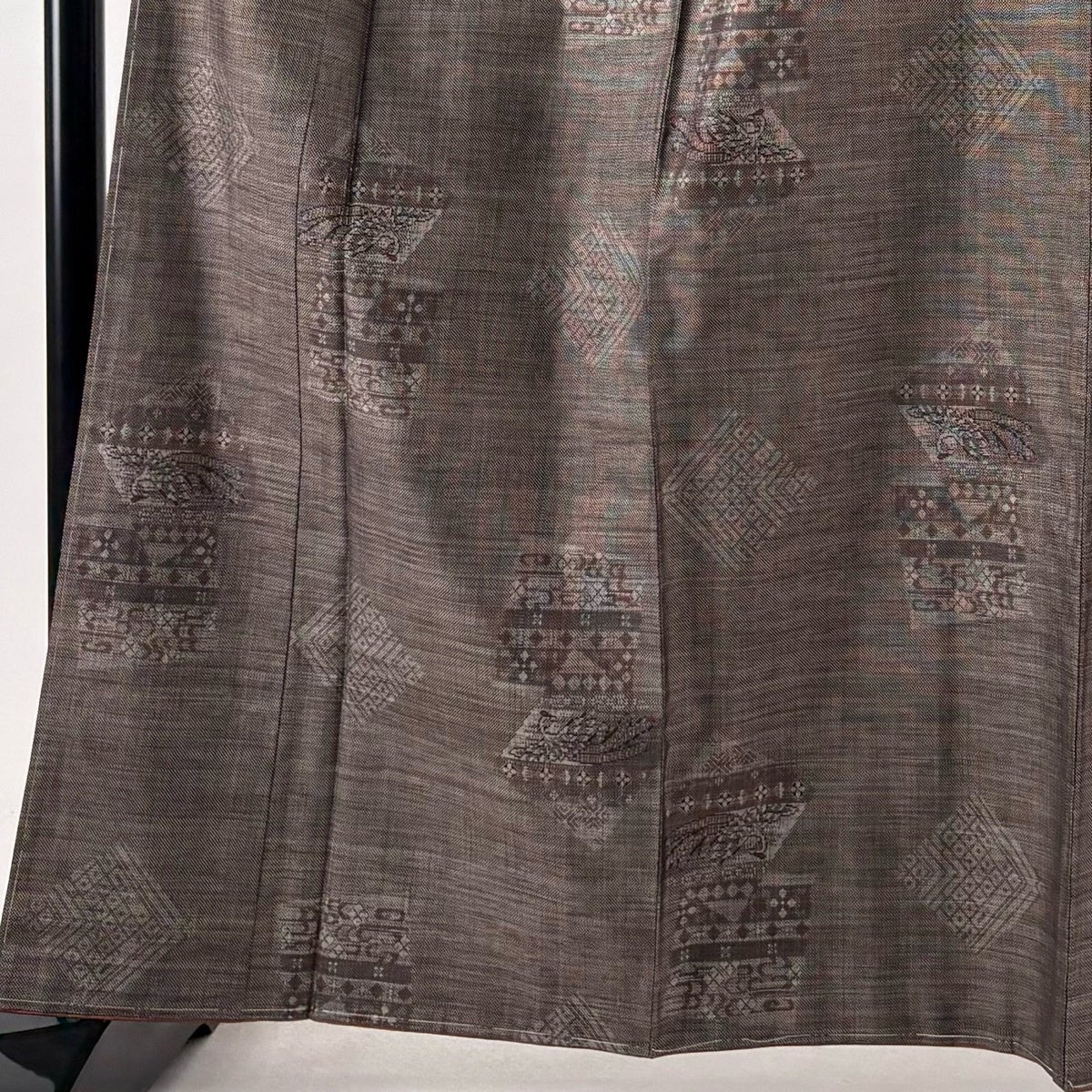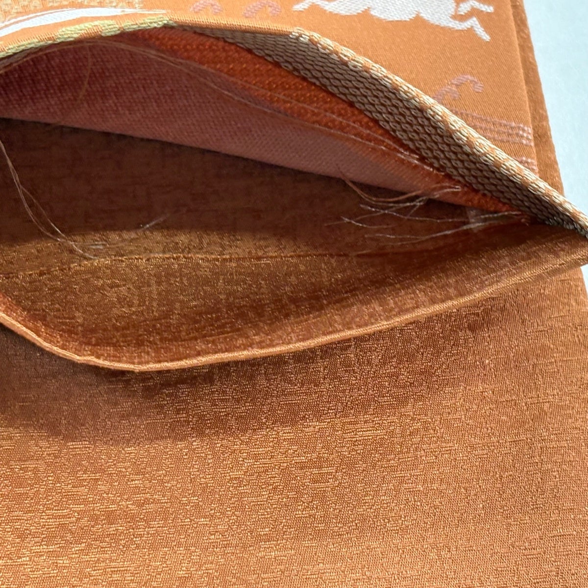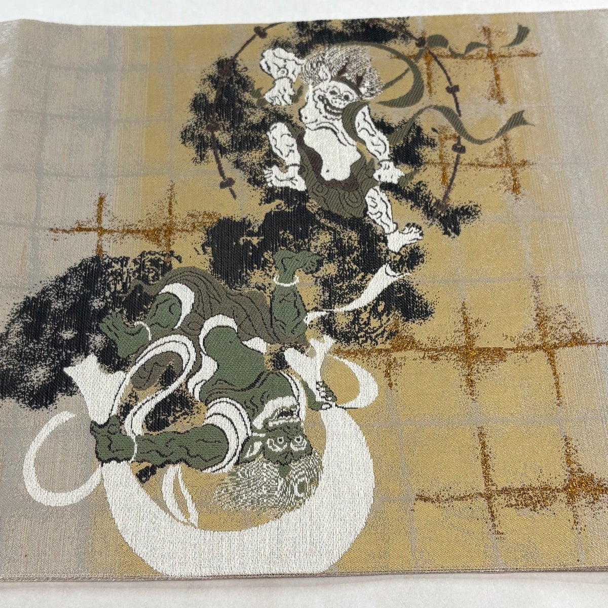 【美品】 袋帯 逸品 華文 狩猟文 金糸 箔 薄茶色 六通 正絹