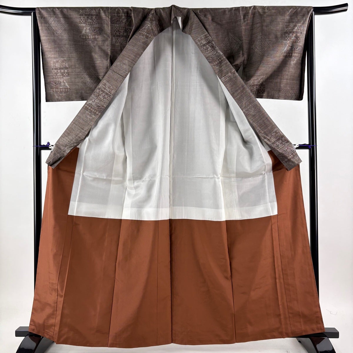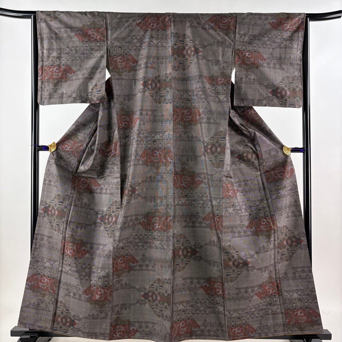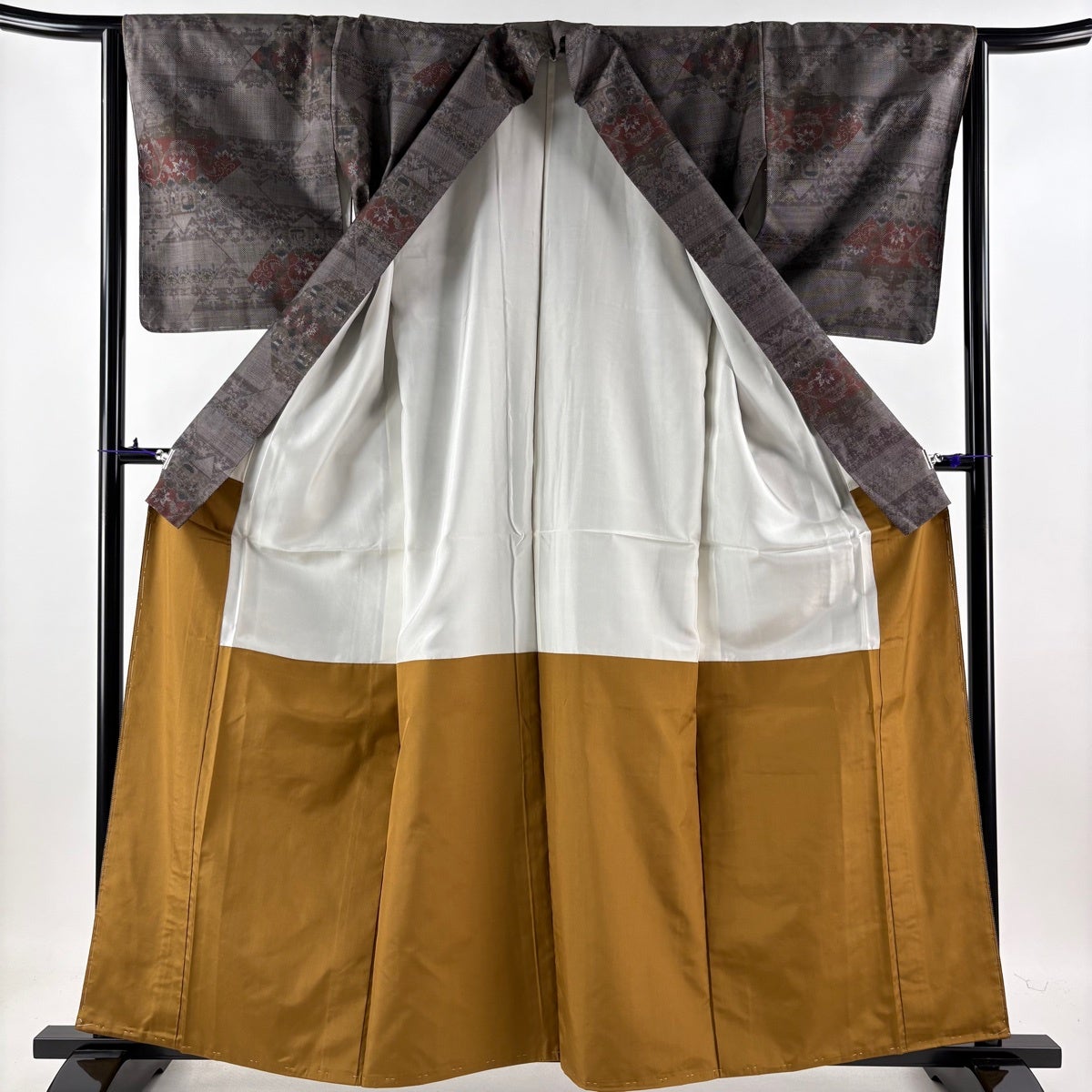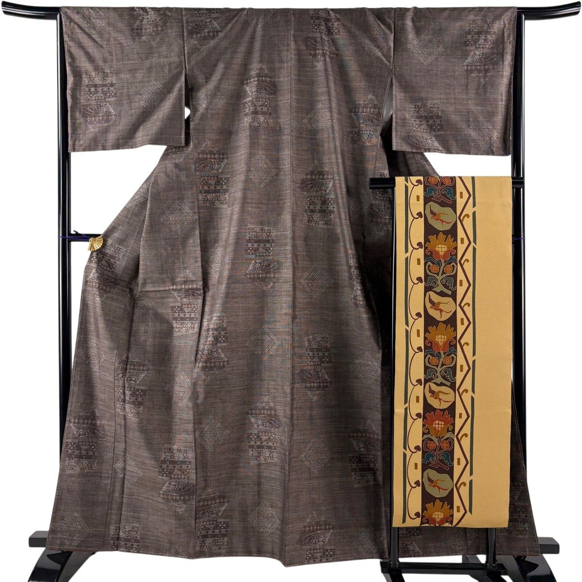 【美品】 袋帯 逸品 華文 狩猟文 金糸 箔 薄茶色 六通 正絹