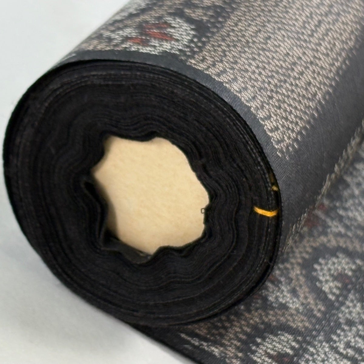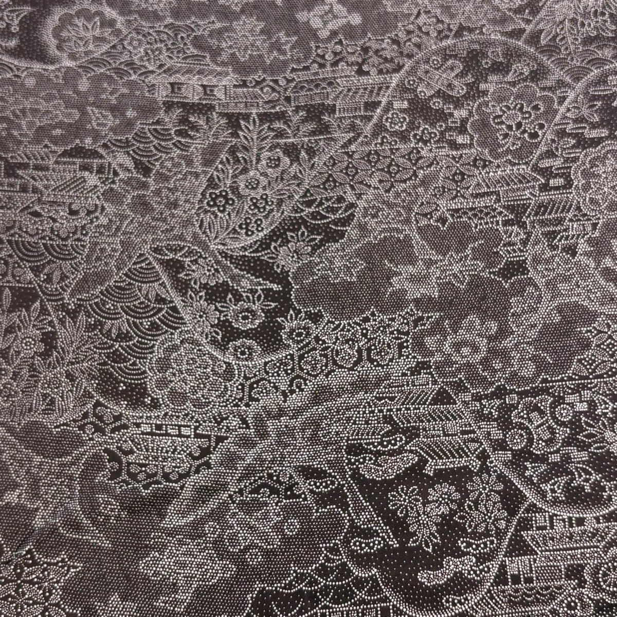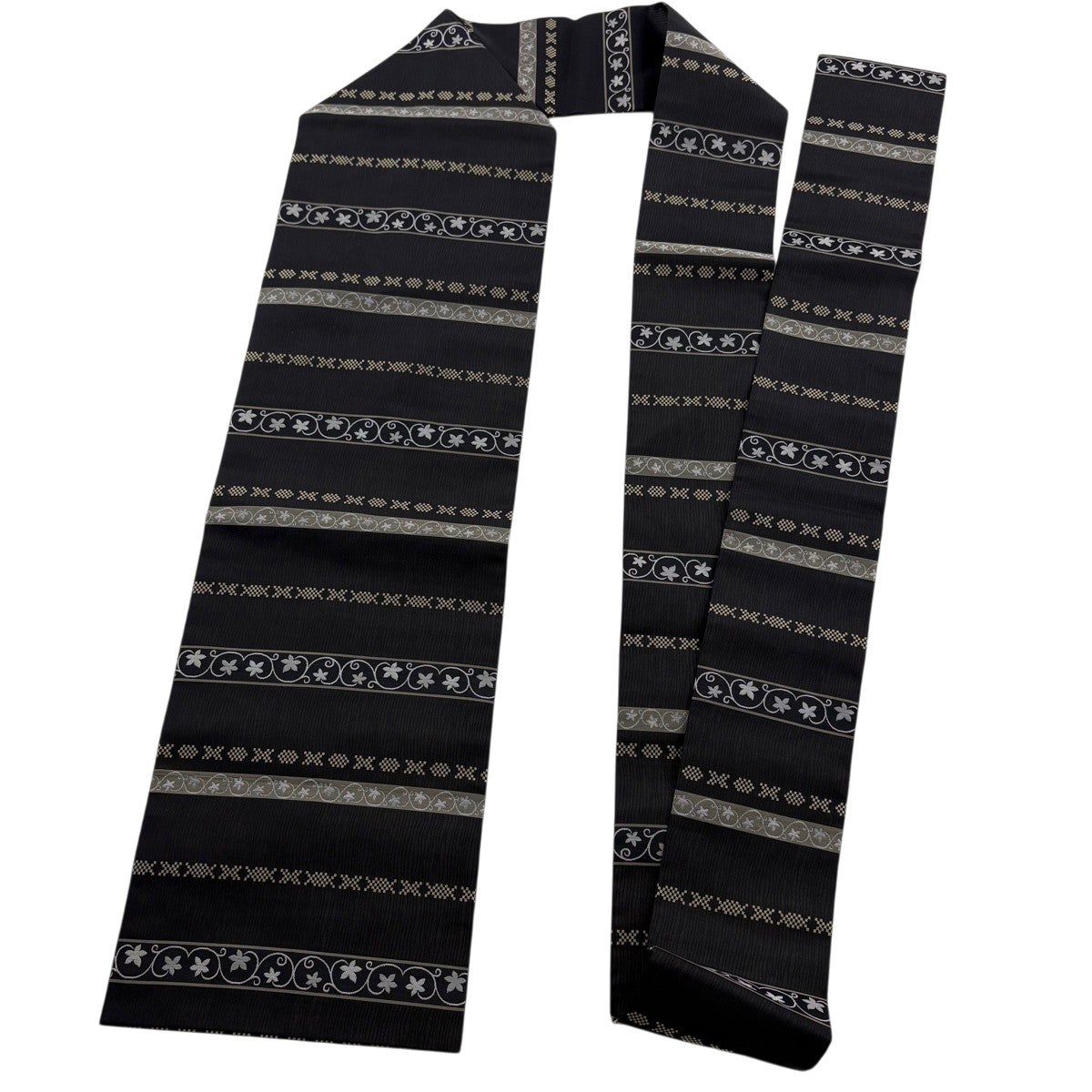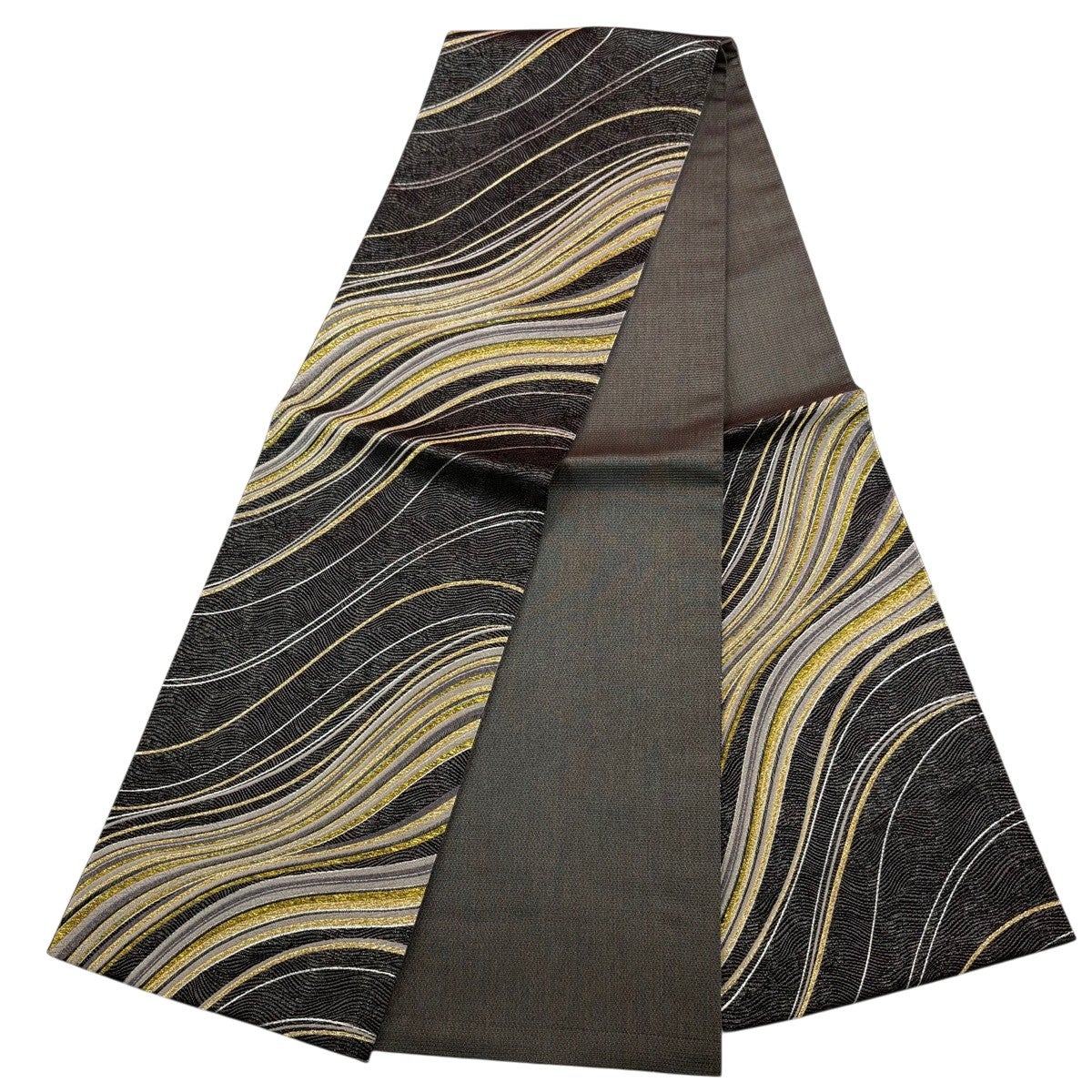 【美品】 袋帯 逸品 となみ織物 ?塵染 里お紹巴 萩 銀糸 箔 墨色 お太鼓柄 正絹