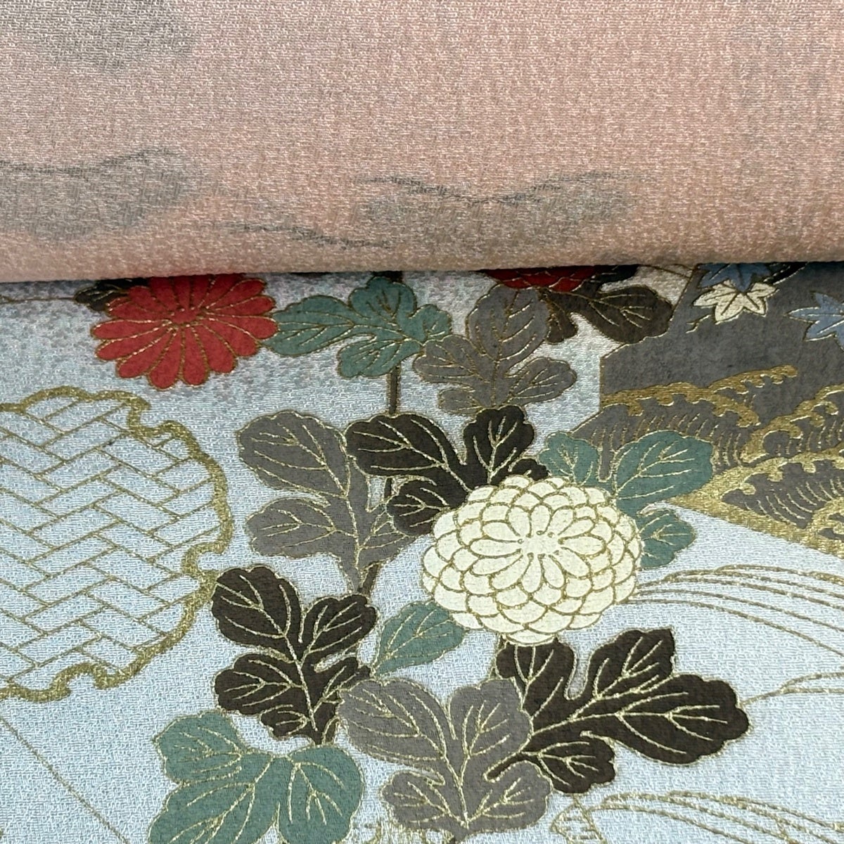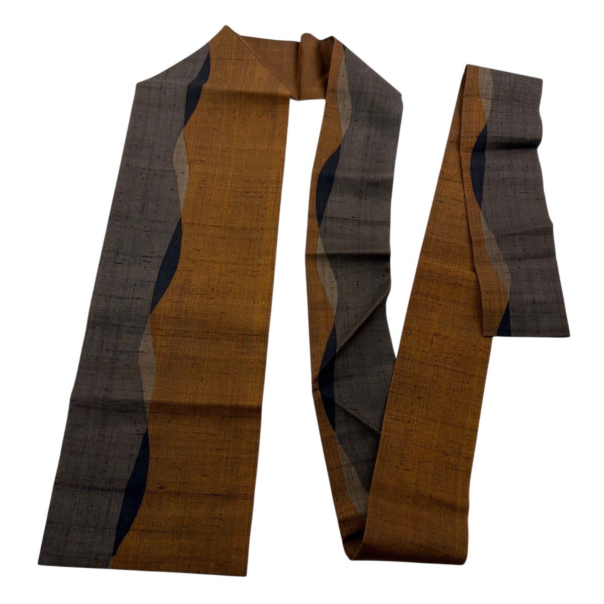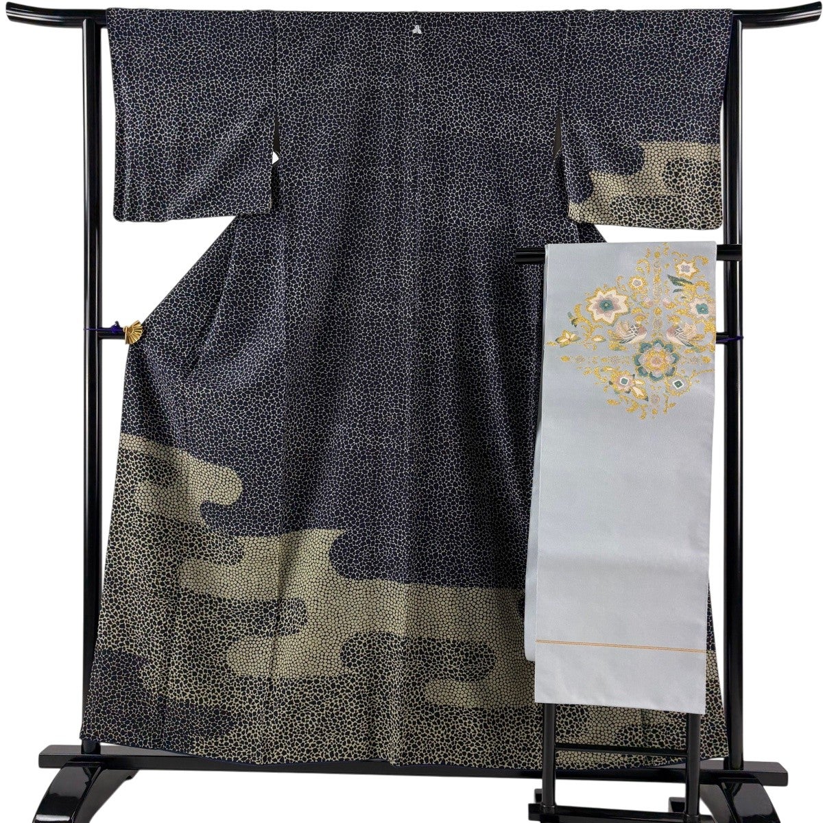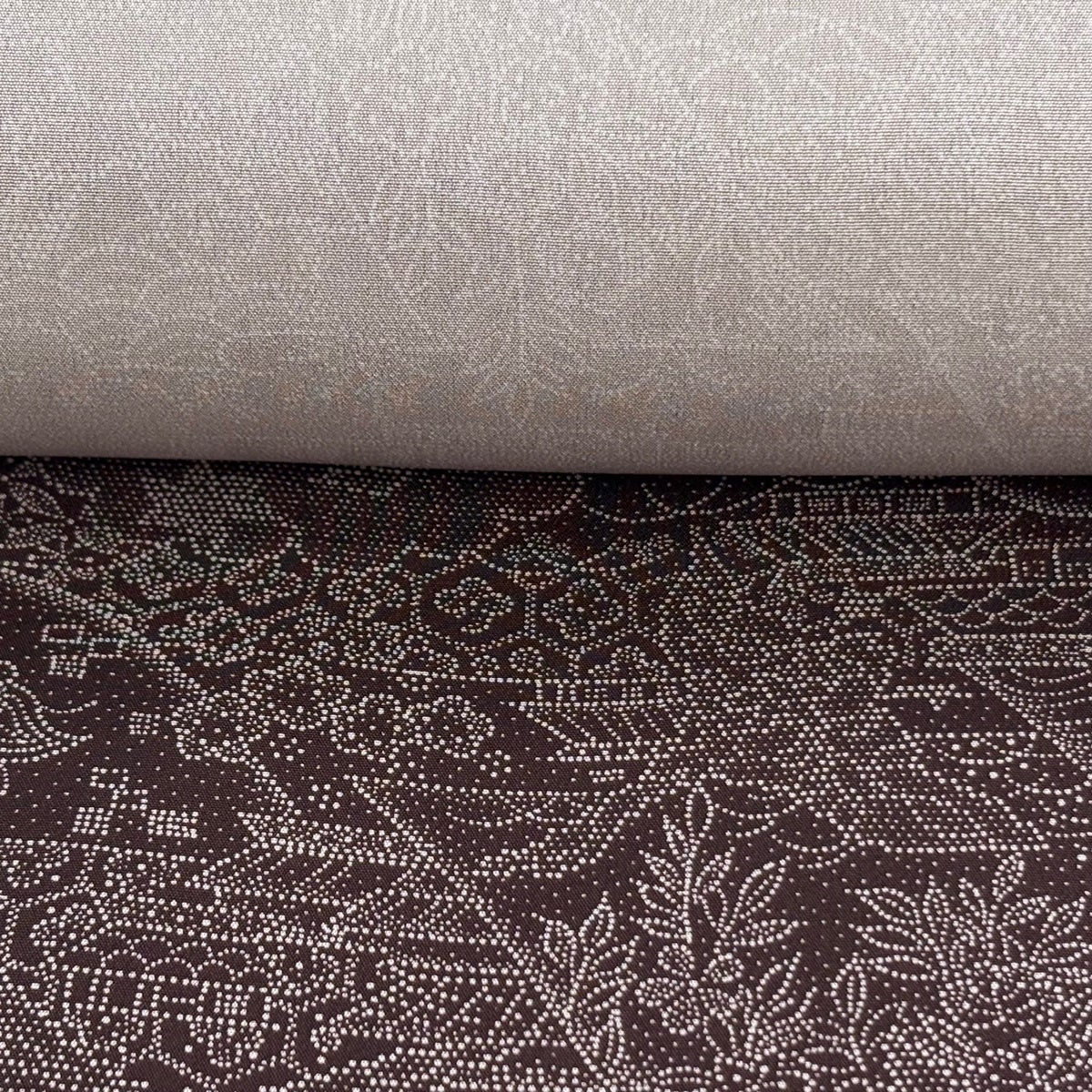 【美品】 袋帯 逸品 となみ織物 ?塵染 里お紹巴 萩 銀糸 箔 墨色 お太鼓柄 正絹