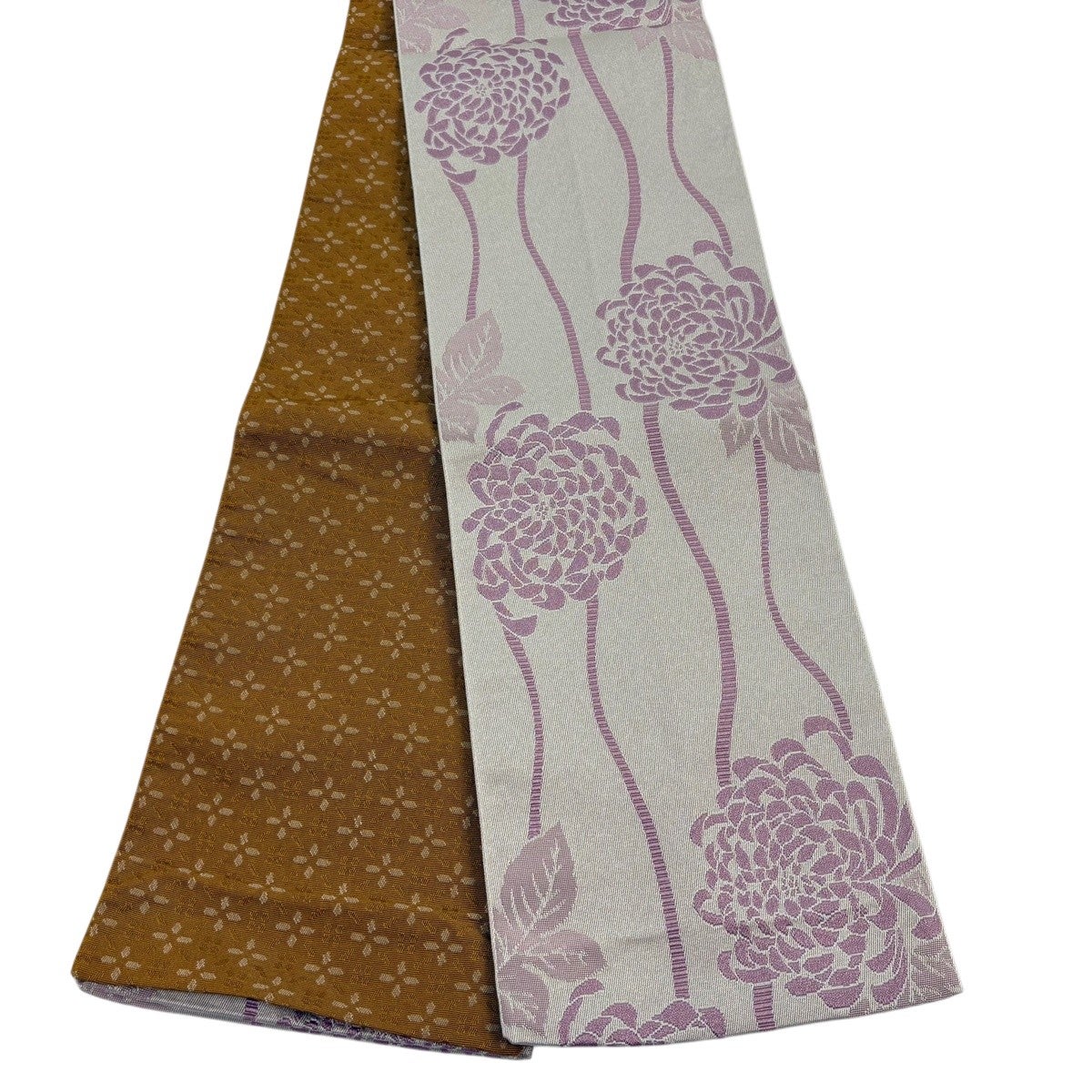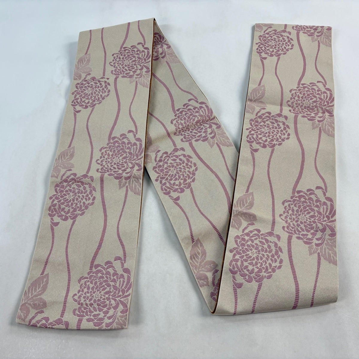 【美品】 名古屋帯 逸品 花 雲文 絞り 灰紫 正絹