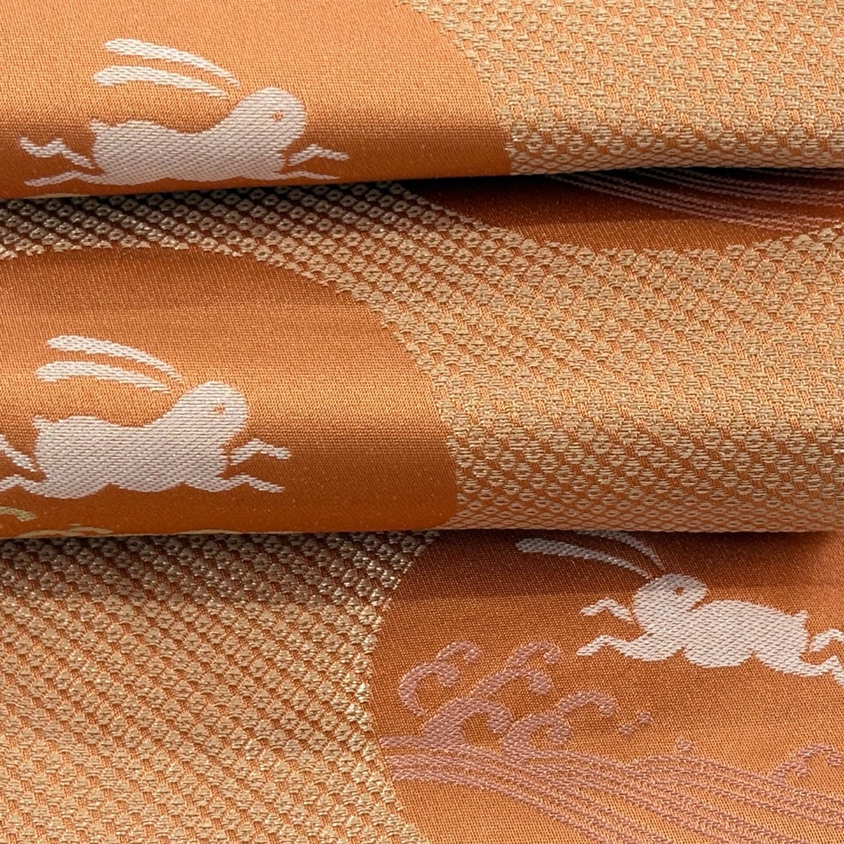 【美品】 名古屋帯 逸品 草花 うさぎ 白 正絹