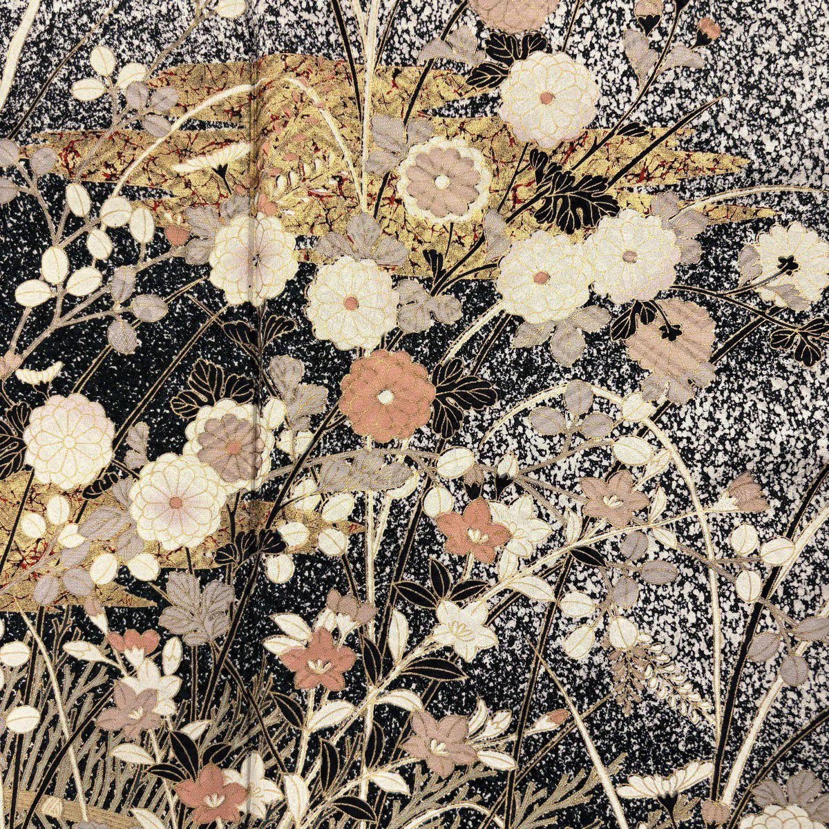 他の画像を見る 【最終値引き】 70%OFF 【美品】 振袖 身丈168.5cm 裄丈68cm L 袷 桜 桜の花びら 箔 金銀彩 黒 正絹 逸品 K70 当店通常価格 ¥ 38,800 ¥ 11,640 税込