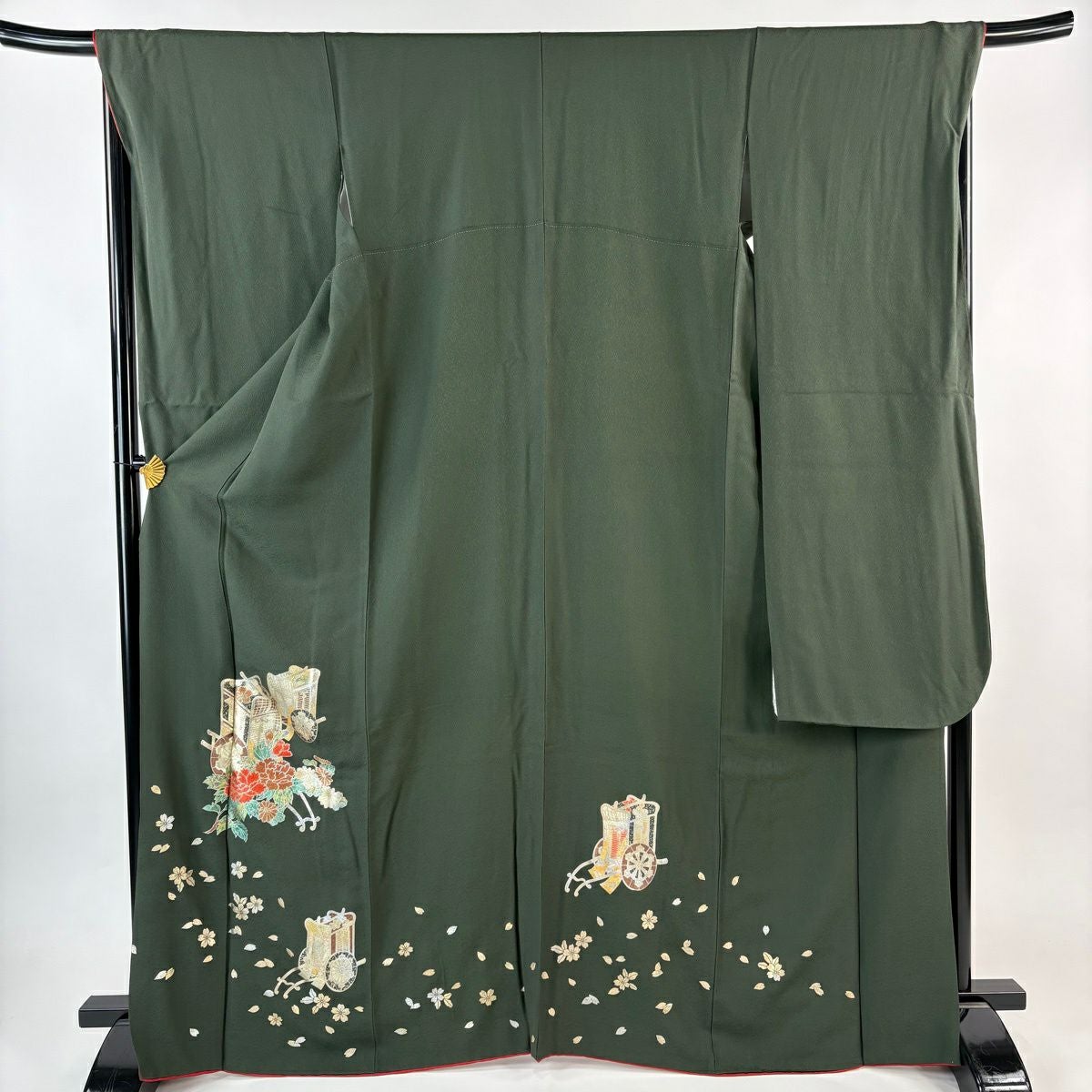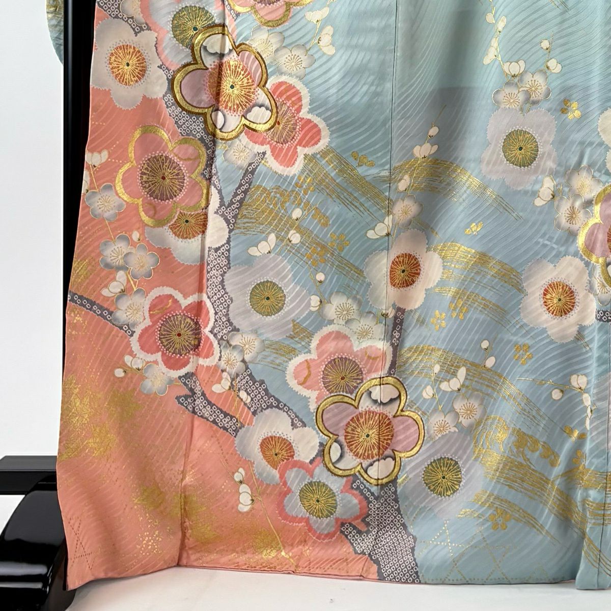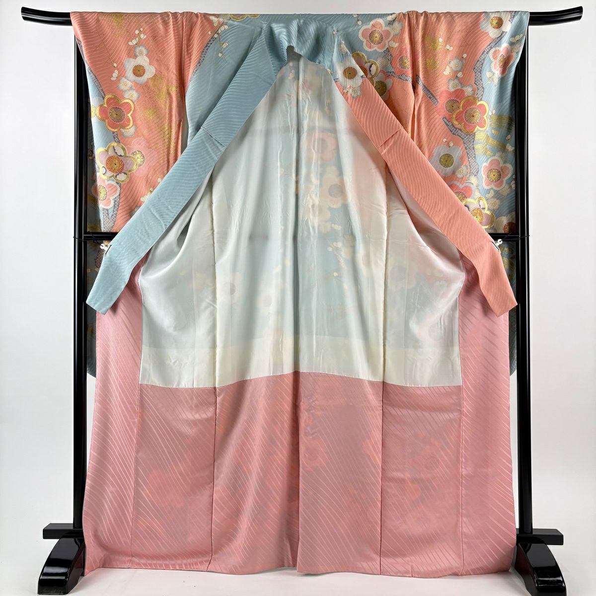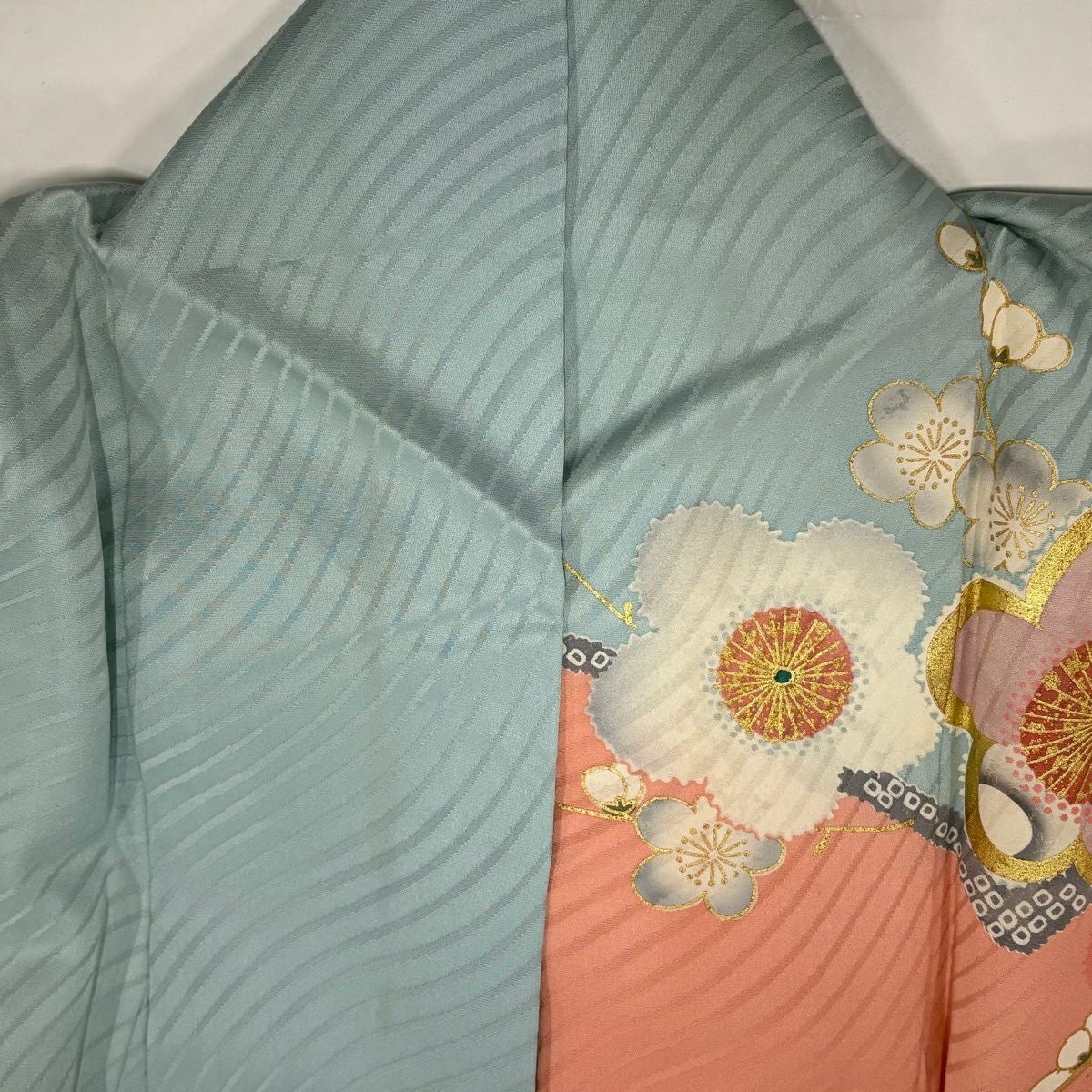 他の画像を見る 【最終値引き】 70%OFF 訪問着 身丈163.5cm 裄丈68.5cm L 袷 鴛鴦 草花 染め分け ぼかし 薄緑 正絹 名品 K70 当店通常価格 ¥ 13,800 ¥ 4,140 税込