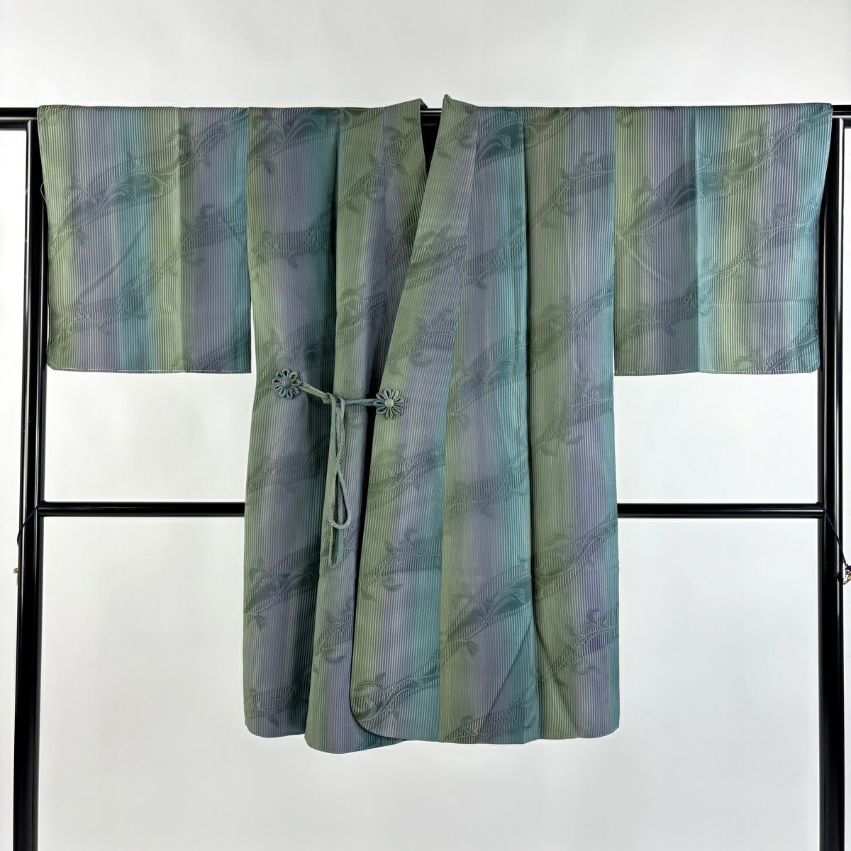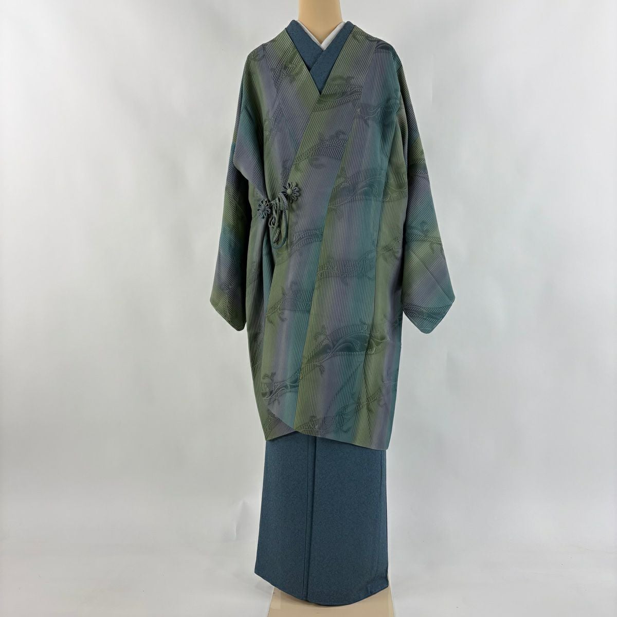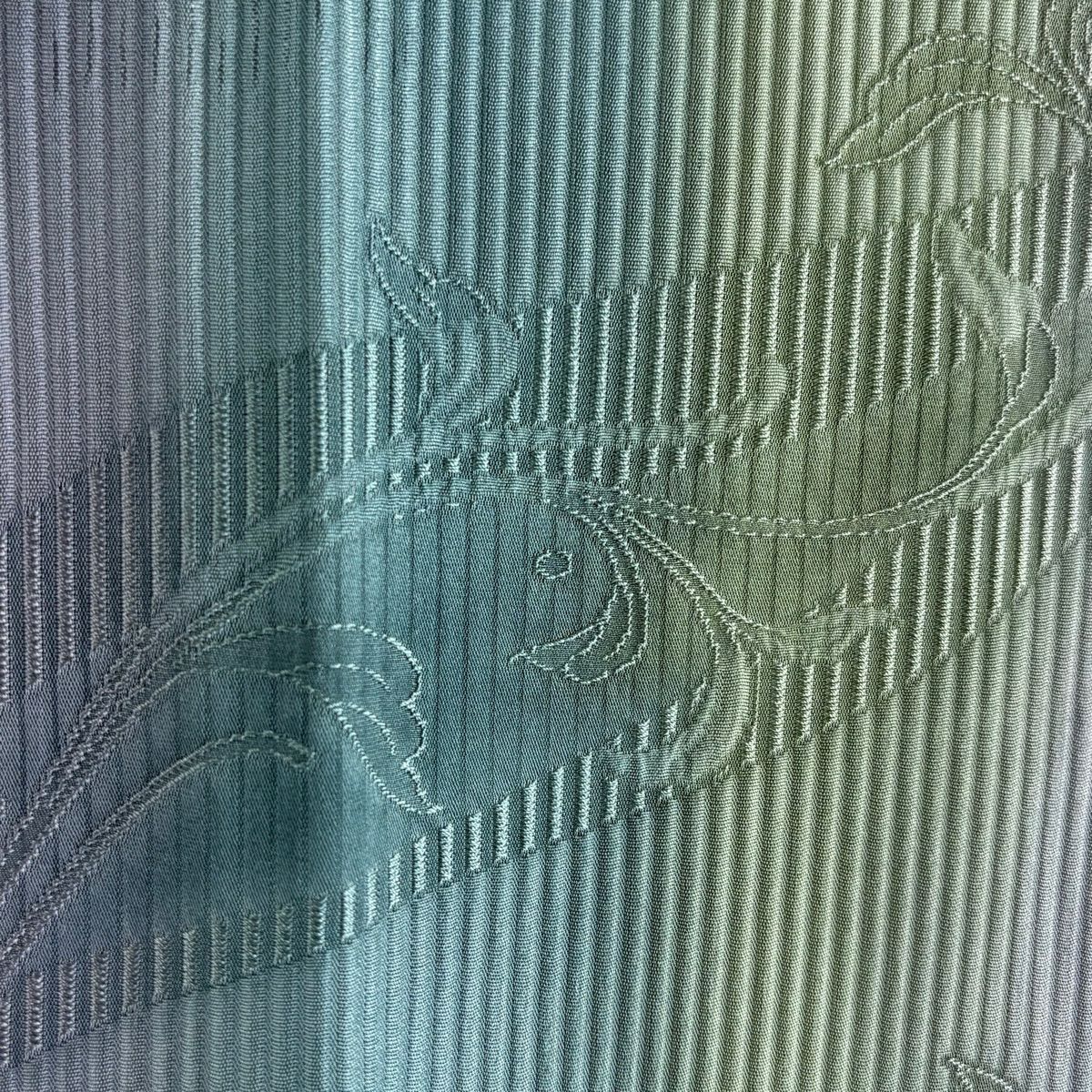 他の画像を見る 【最終値引き】 70%OFF 【美品】 道中着 身丈103cm 裄丈67.5cm L 和装コート 唐草 ぼかし 青緑 正絹 逸品 K70 当店通常価格 ¥ 41,800 ¥ 12,540 税込