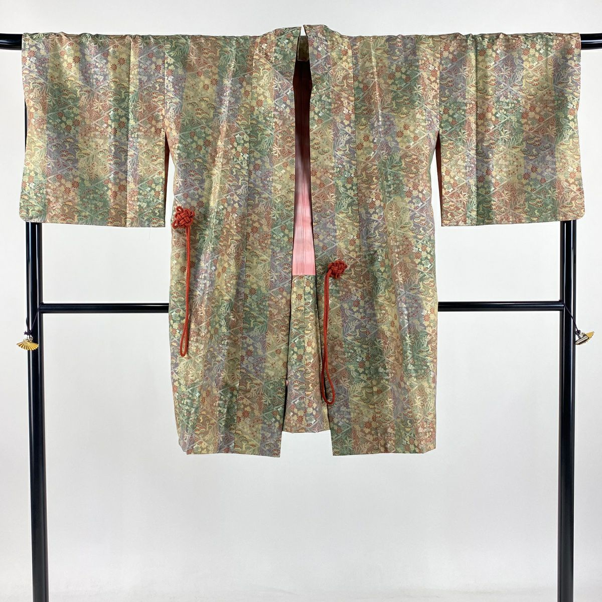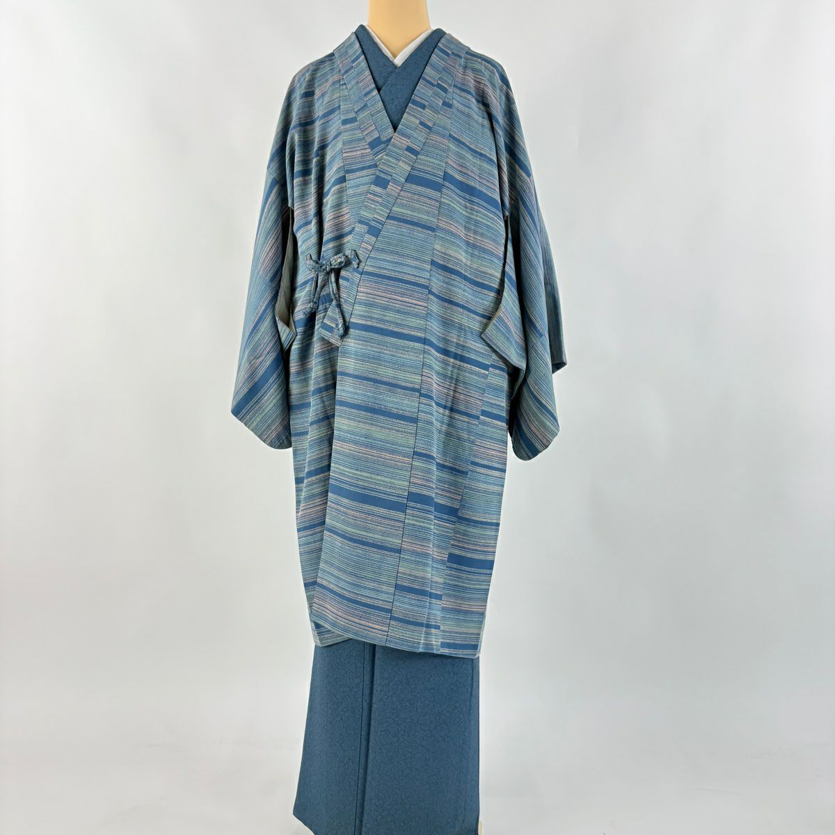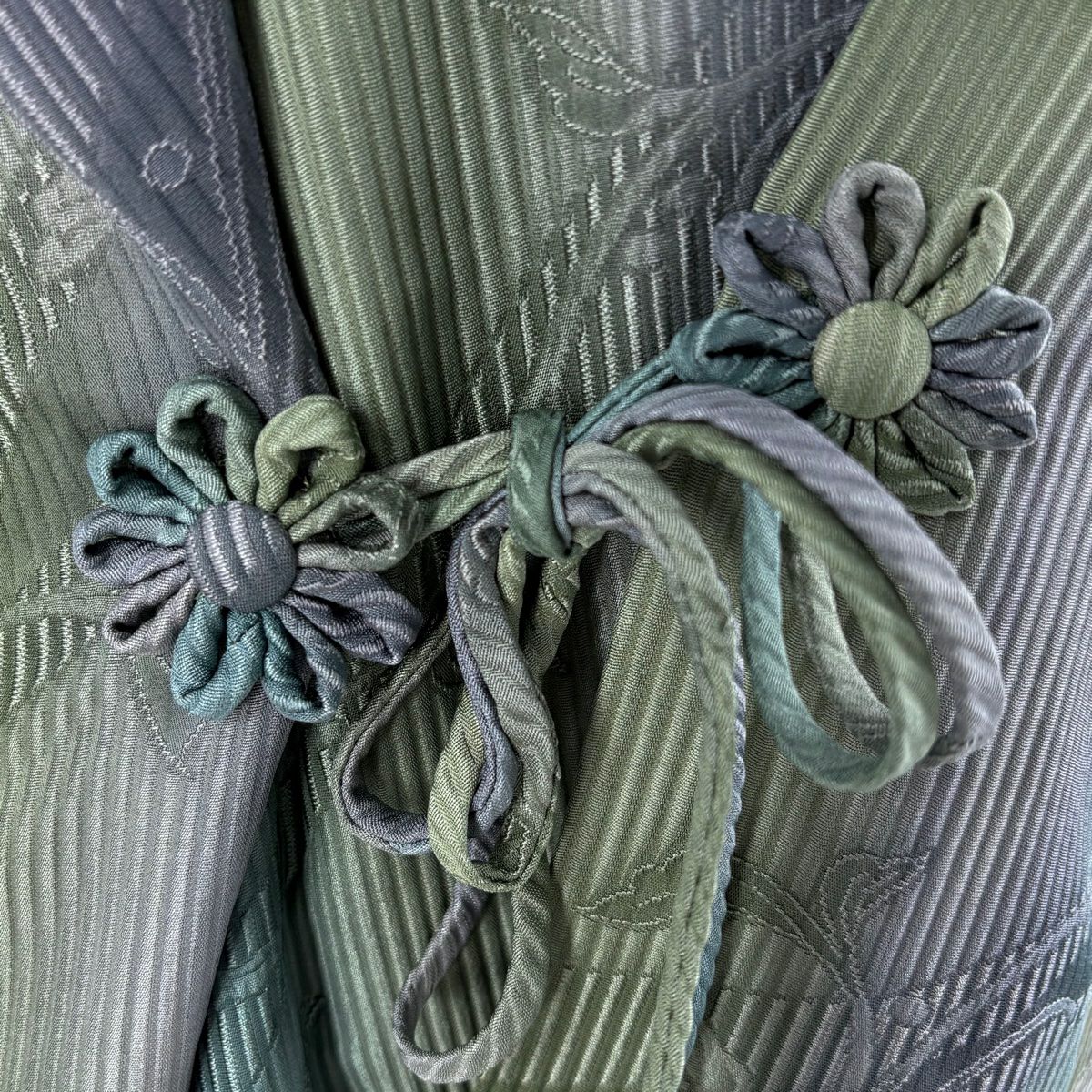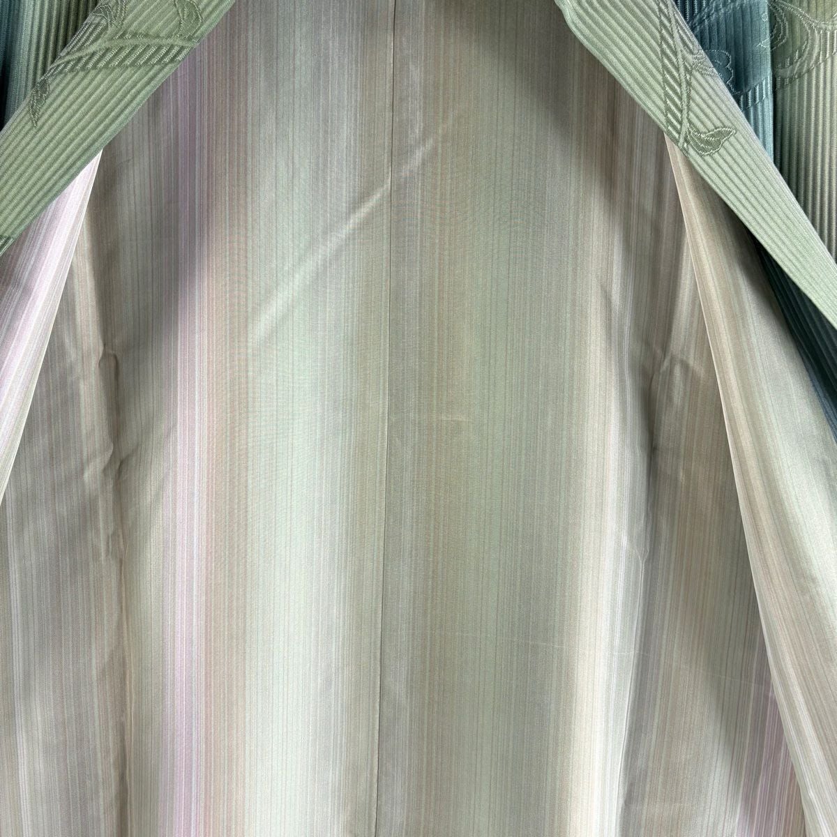 他の画像を見る 【最終値引き】 70%OFF 【美品】 道中着 身丈103cm 裄丈67.5cm L 和装コート 唐草 ぼかし 青緑 正絹 逸品 K70 当店通常価格 ¥ 41,800 ¥ 12,540 税込