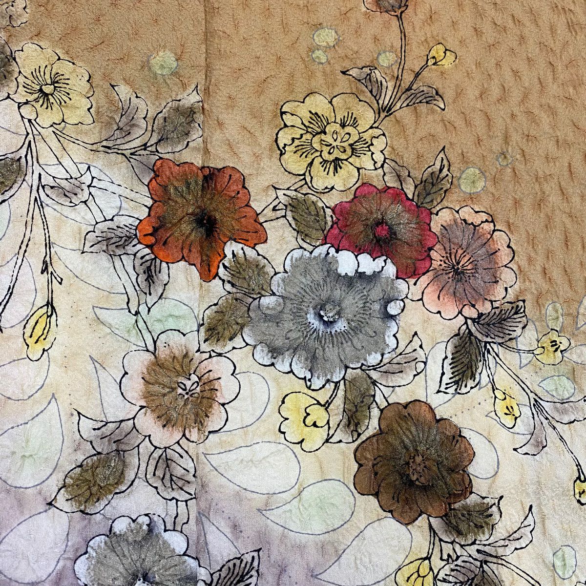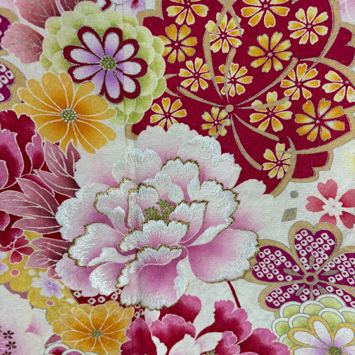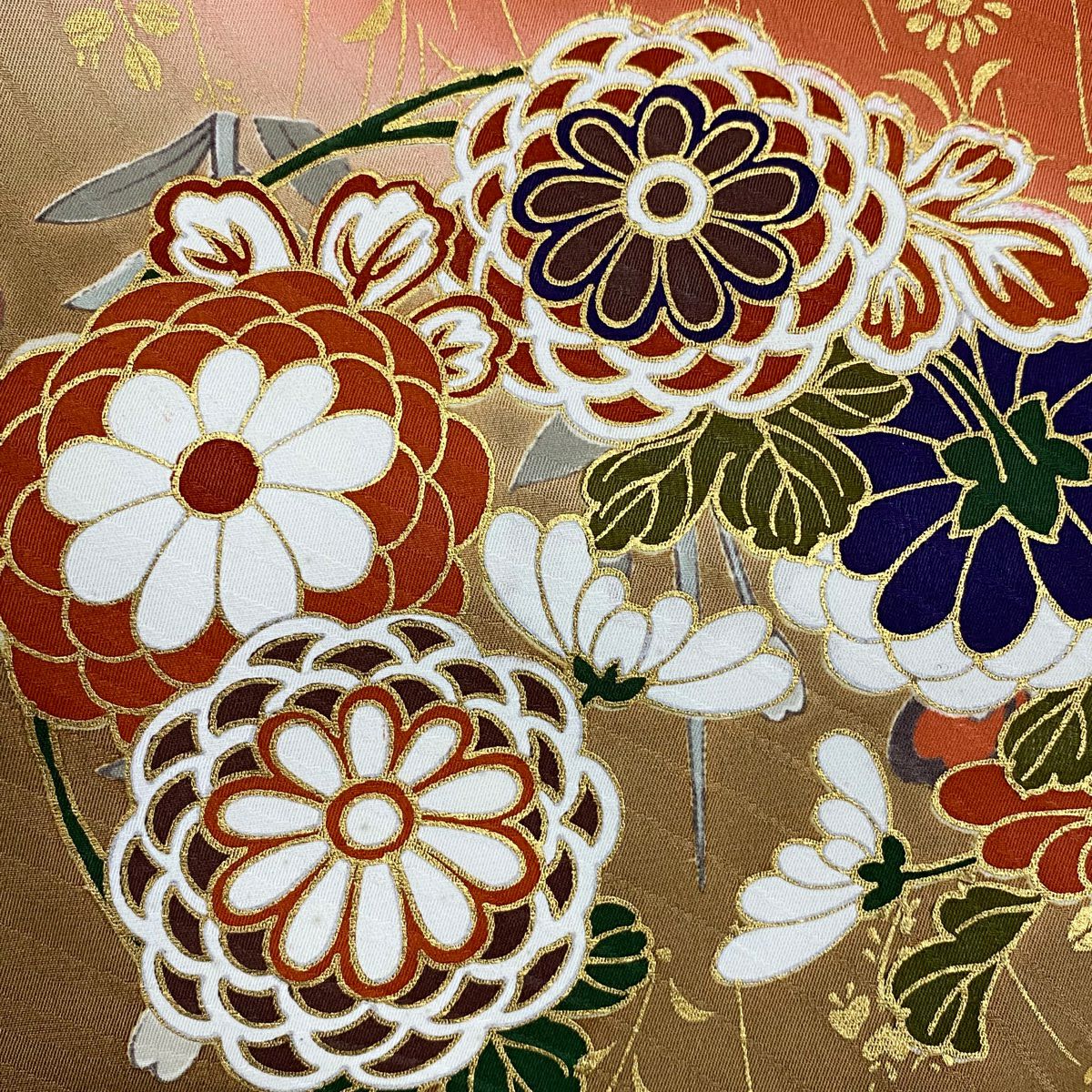 他の画像を見る 【最終値引き】 70%OFF 振袖 身丈169.5cm 裄丈67.5cm L 袷 牡丹 菊 銀通し 刺繍 クリーム 正絹 逸品 K70 当店通常価格 ¥ 47,800 ¥ 14,340 税込
