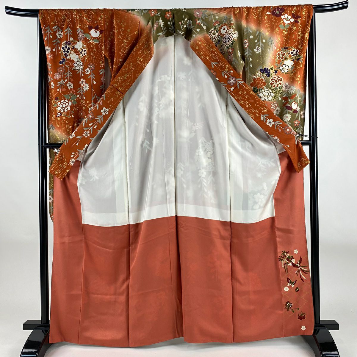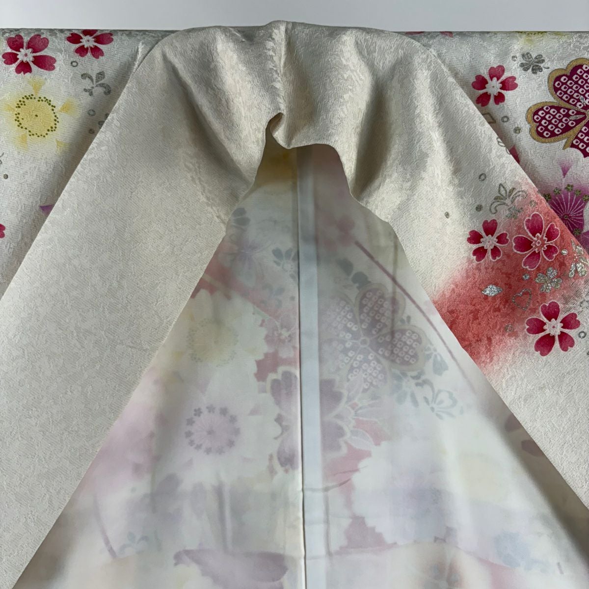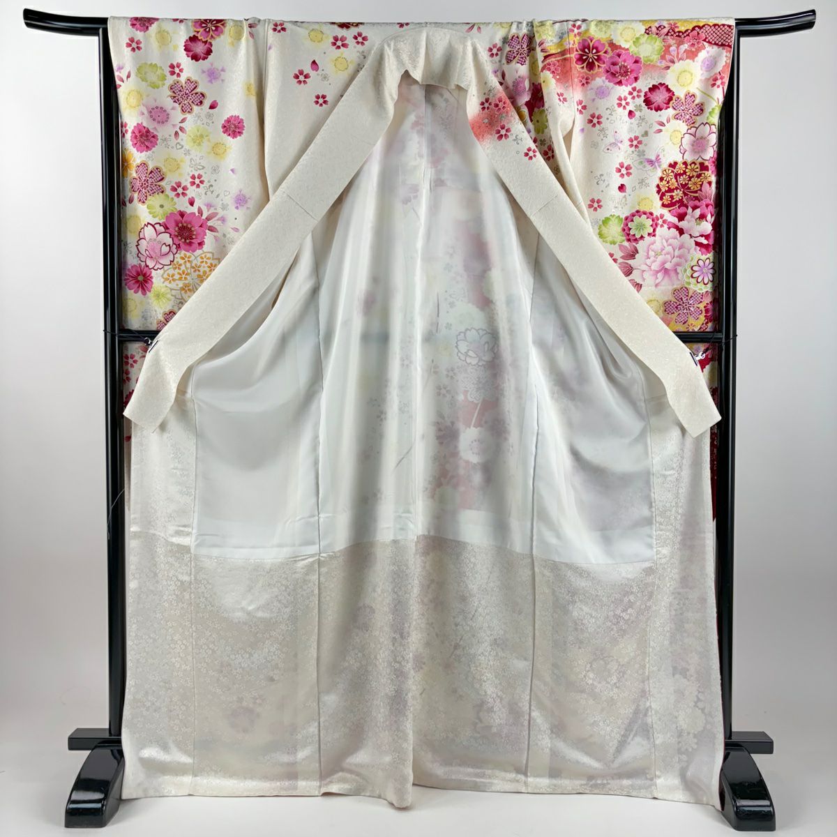 他の画像を見る 【最終値引き】 70%OFF 振袖 身丈169.5cm 裄丈68cm L 袷 牡丹 桜 銀通し 刺繍 クリーム 正絹 逸品 K70 当店通常価格 ¥ 47,800 ¥ 14,340 税込