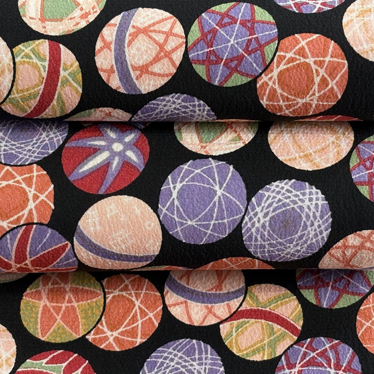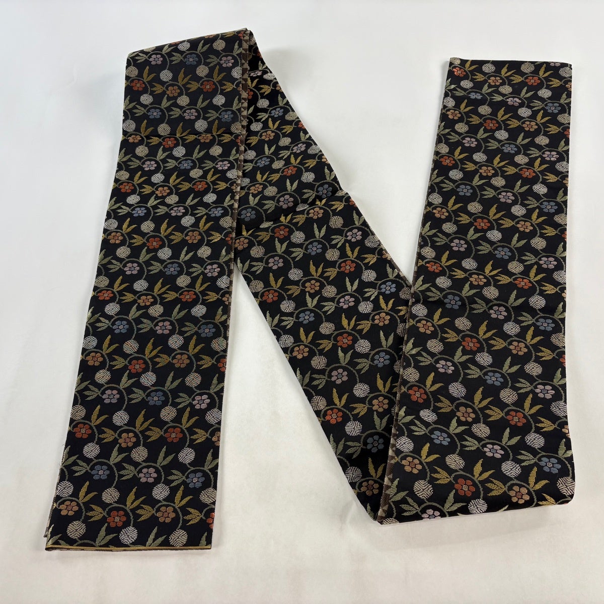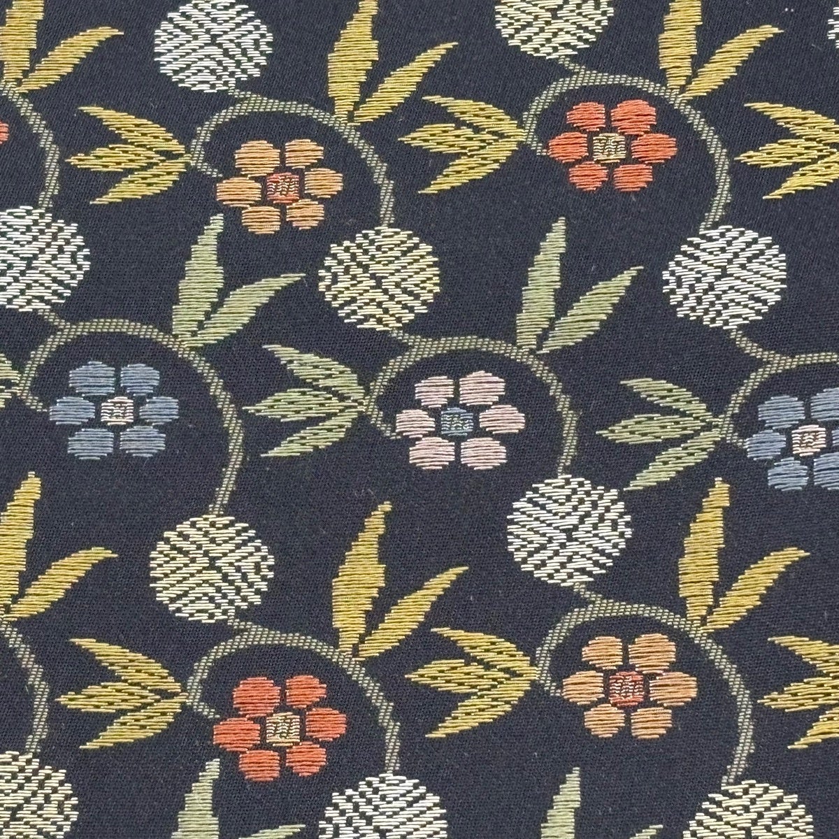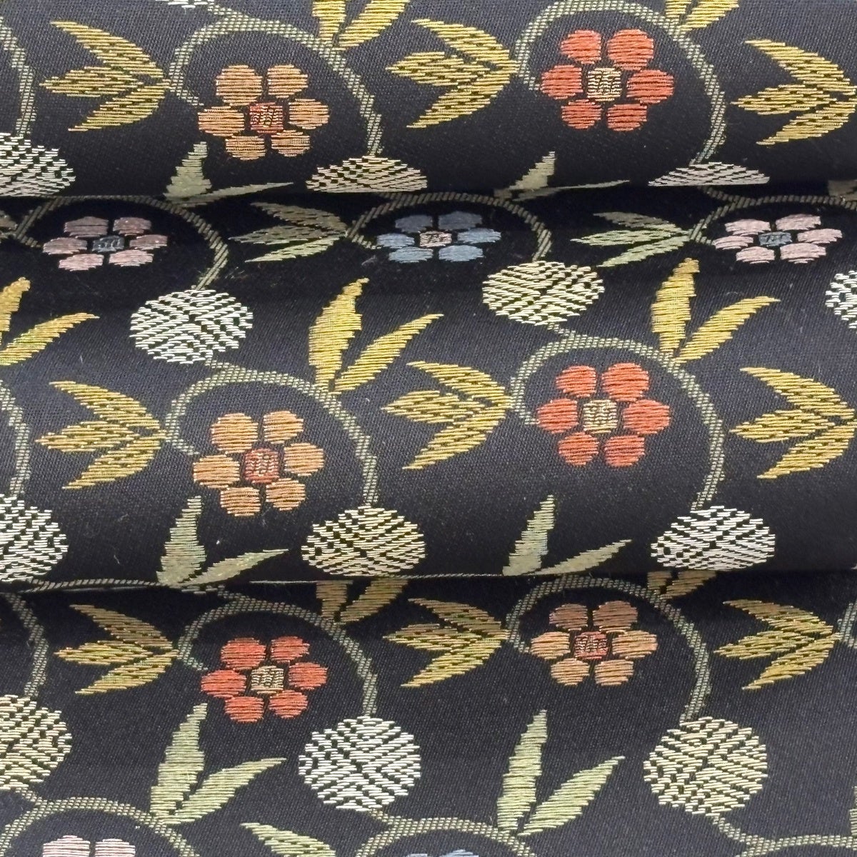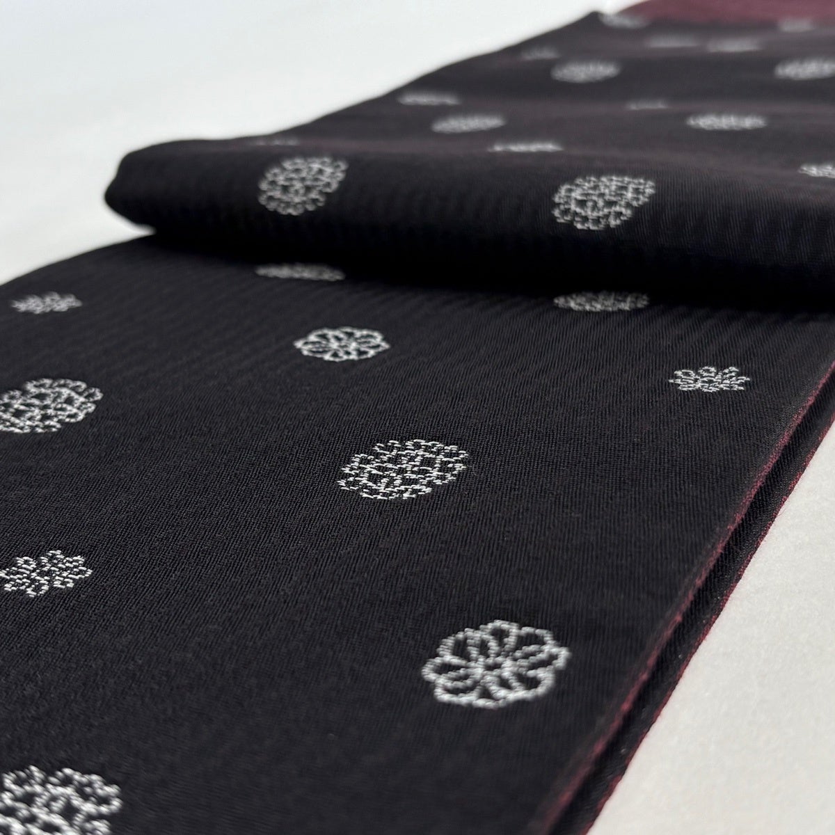【美品】半幅帯 優品 薬玉 菊 墨色 化繊