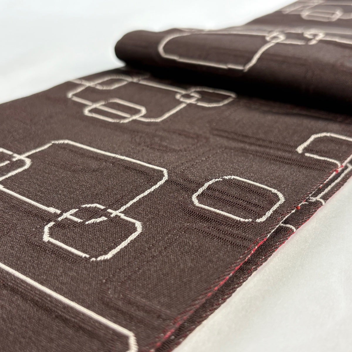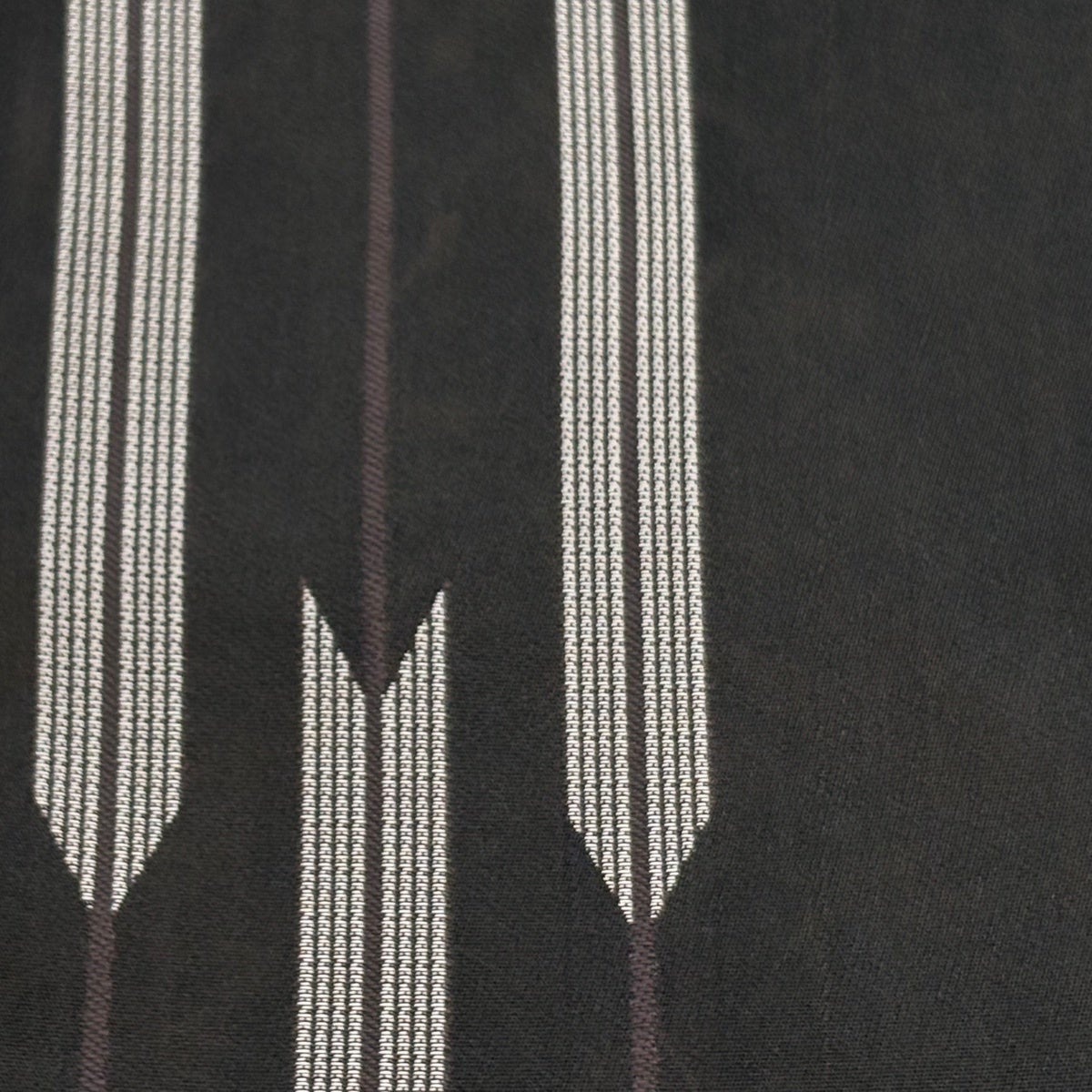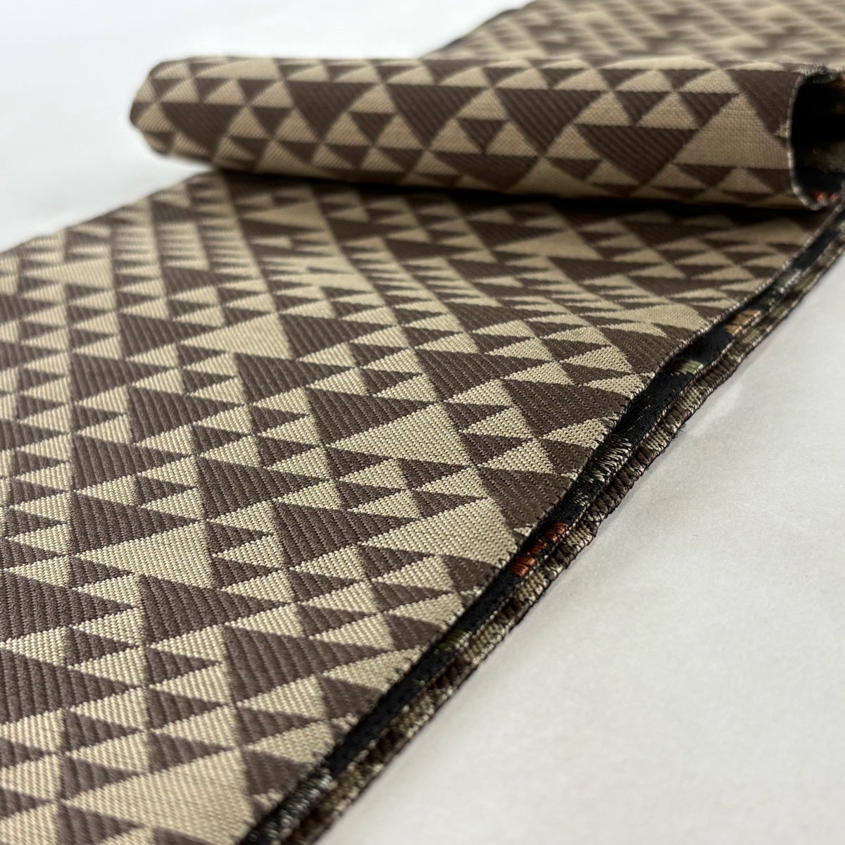 【美品】半幅帯 優品 矢羽根 焦茶色 化繊