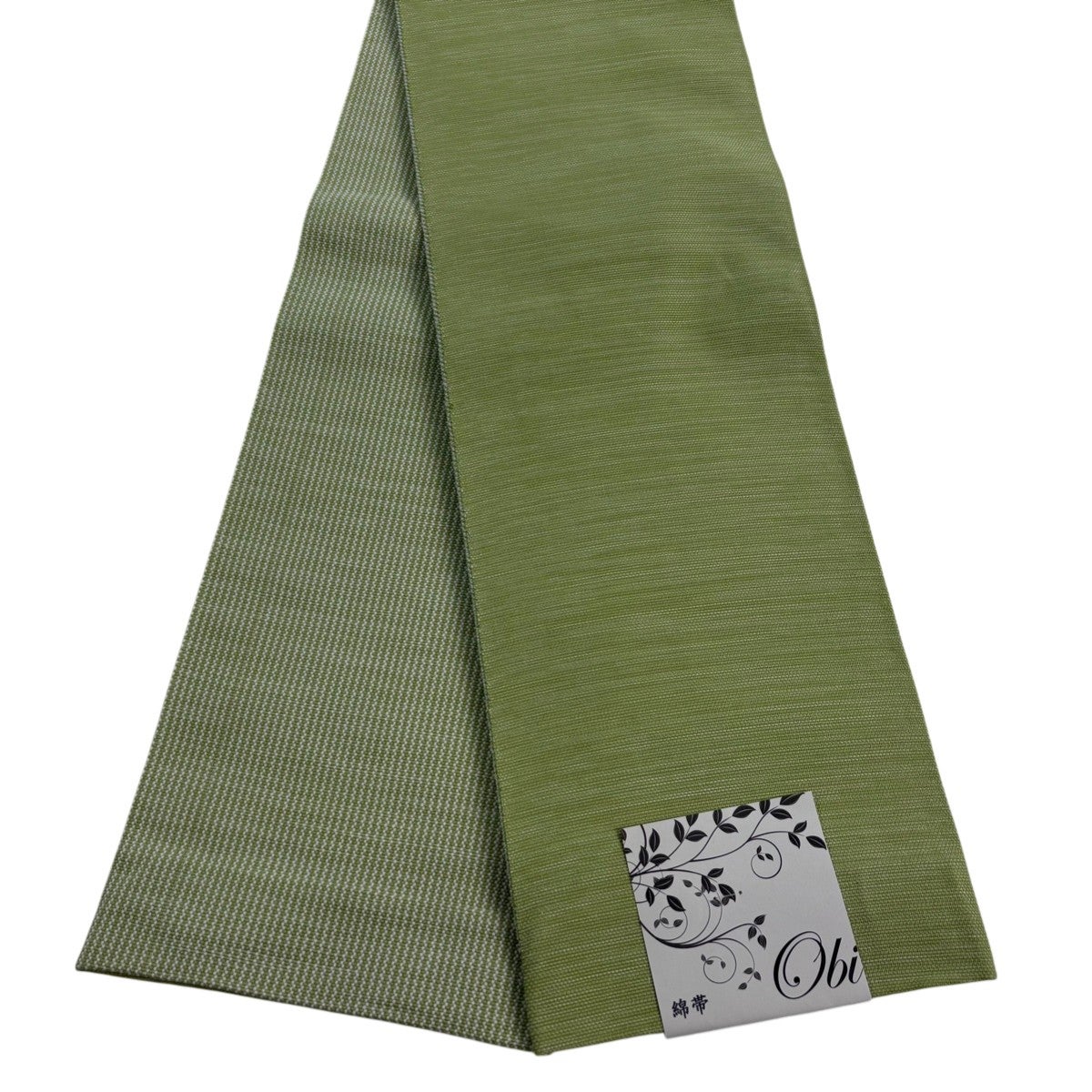 【美品】半幅帯 優品 唐草 薄緑 化繊