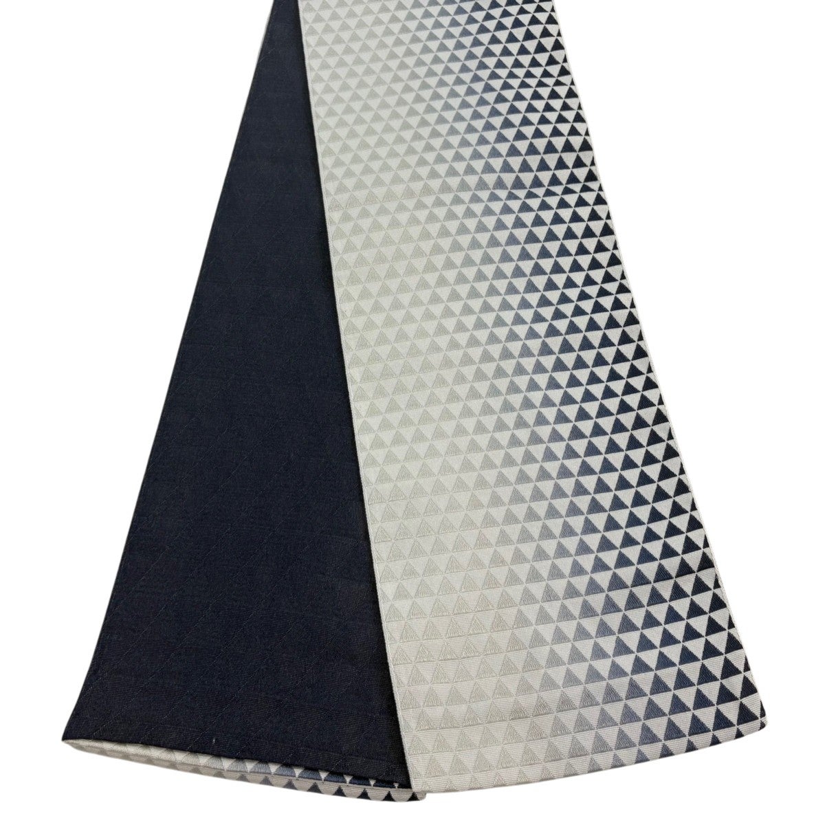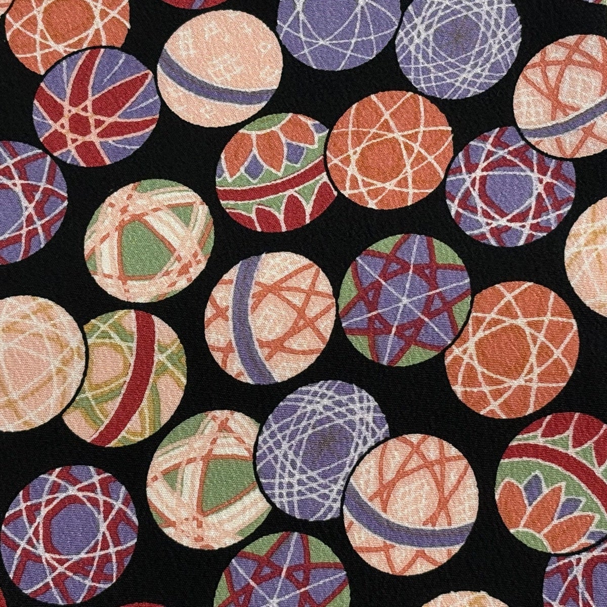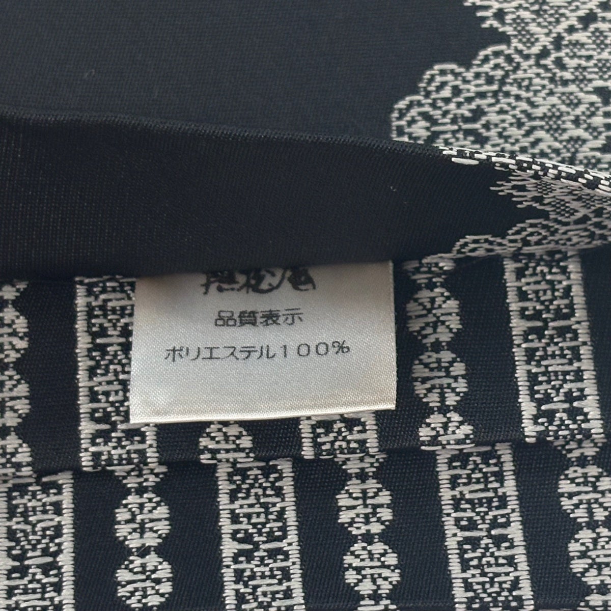 【美品】半幅帯 優品 幾何学模様 黒 化繊