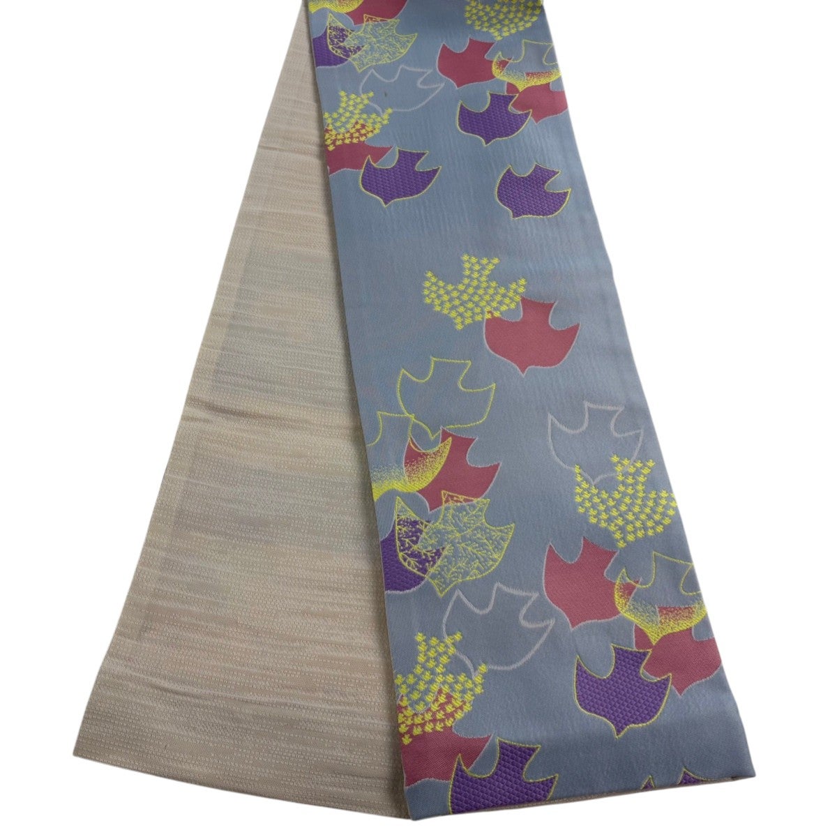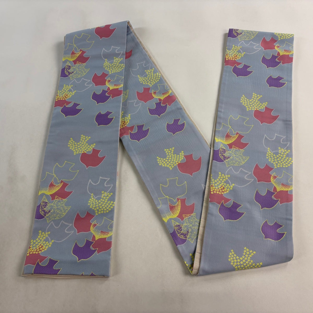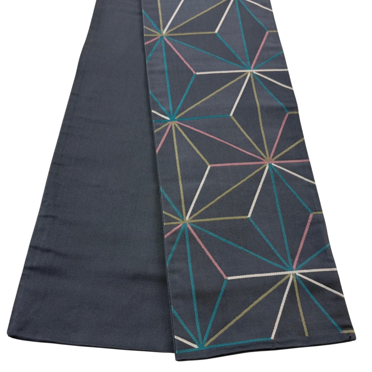 【美品】半幅帯 優品 幾何学 灰紫 化繊