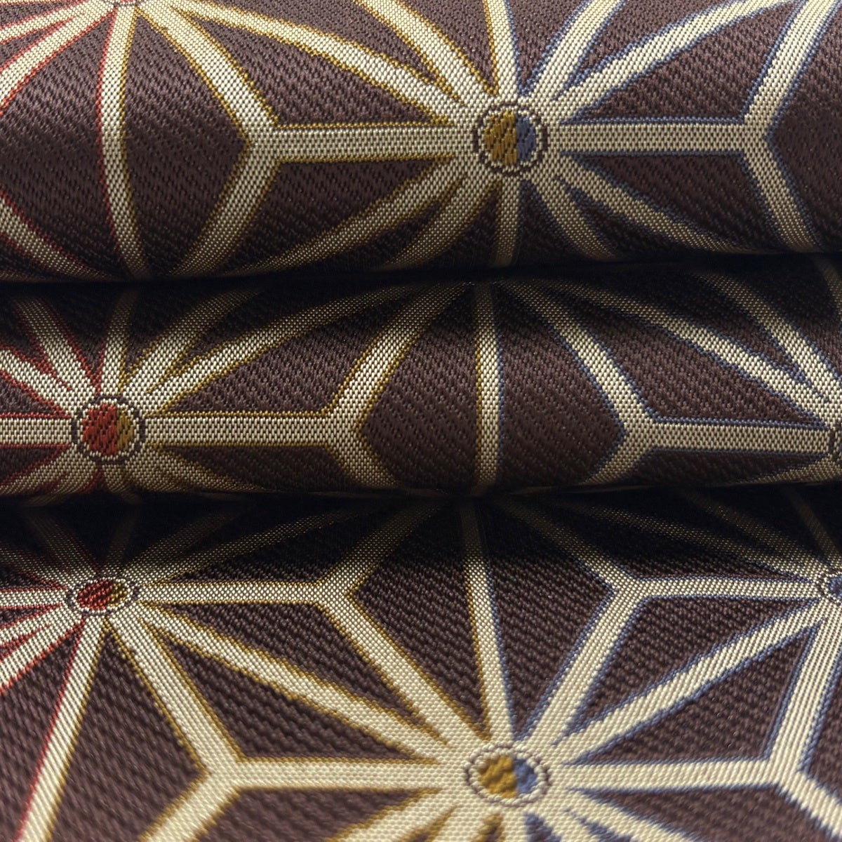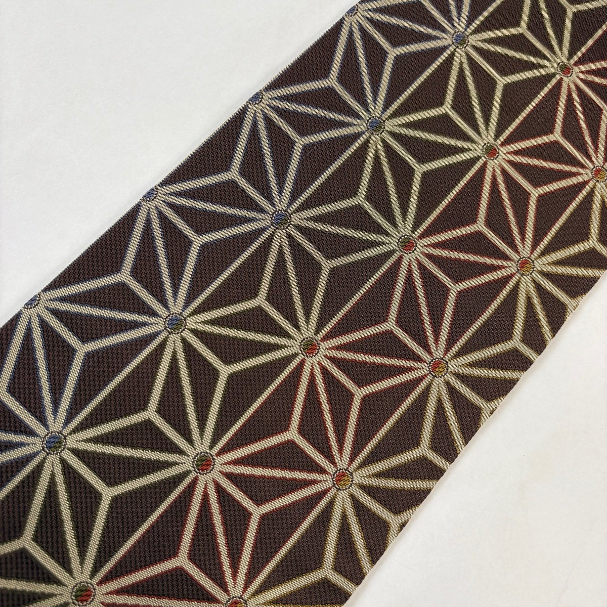 【美品】半幅帯 秀品 麻の葉 茶色 正絹