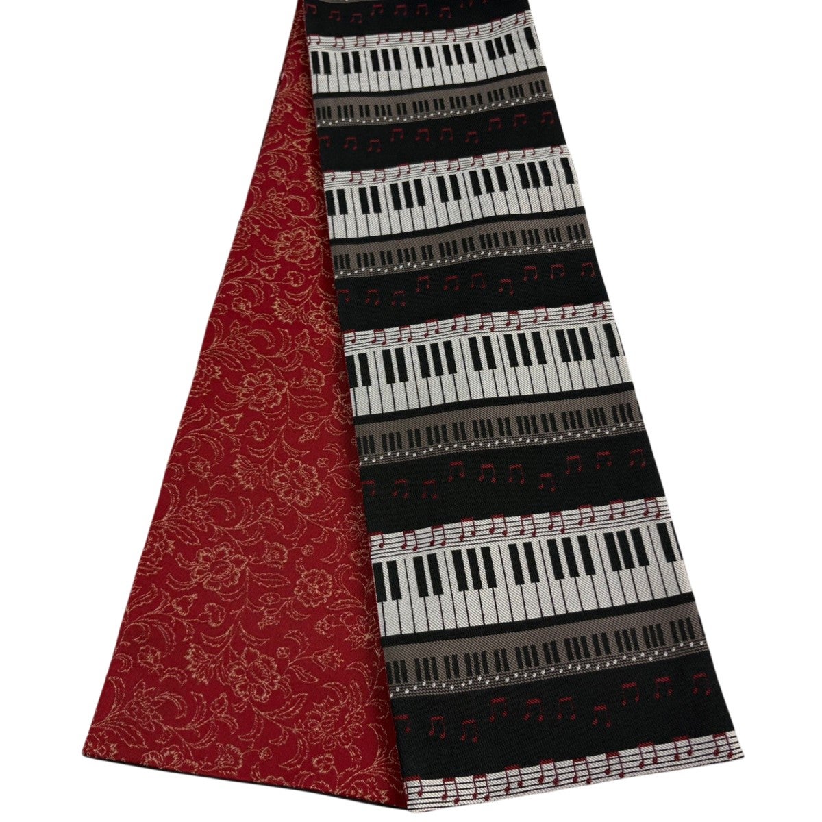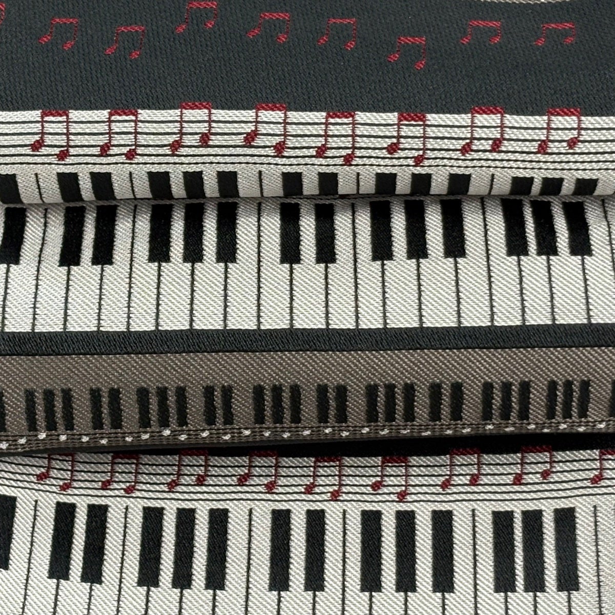 【美品】半幅帯 優品 鍵盤 音符 黒 化繊