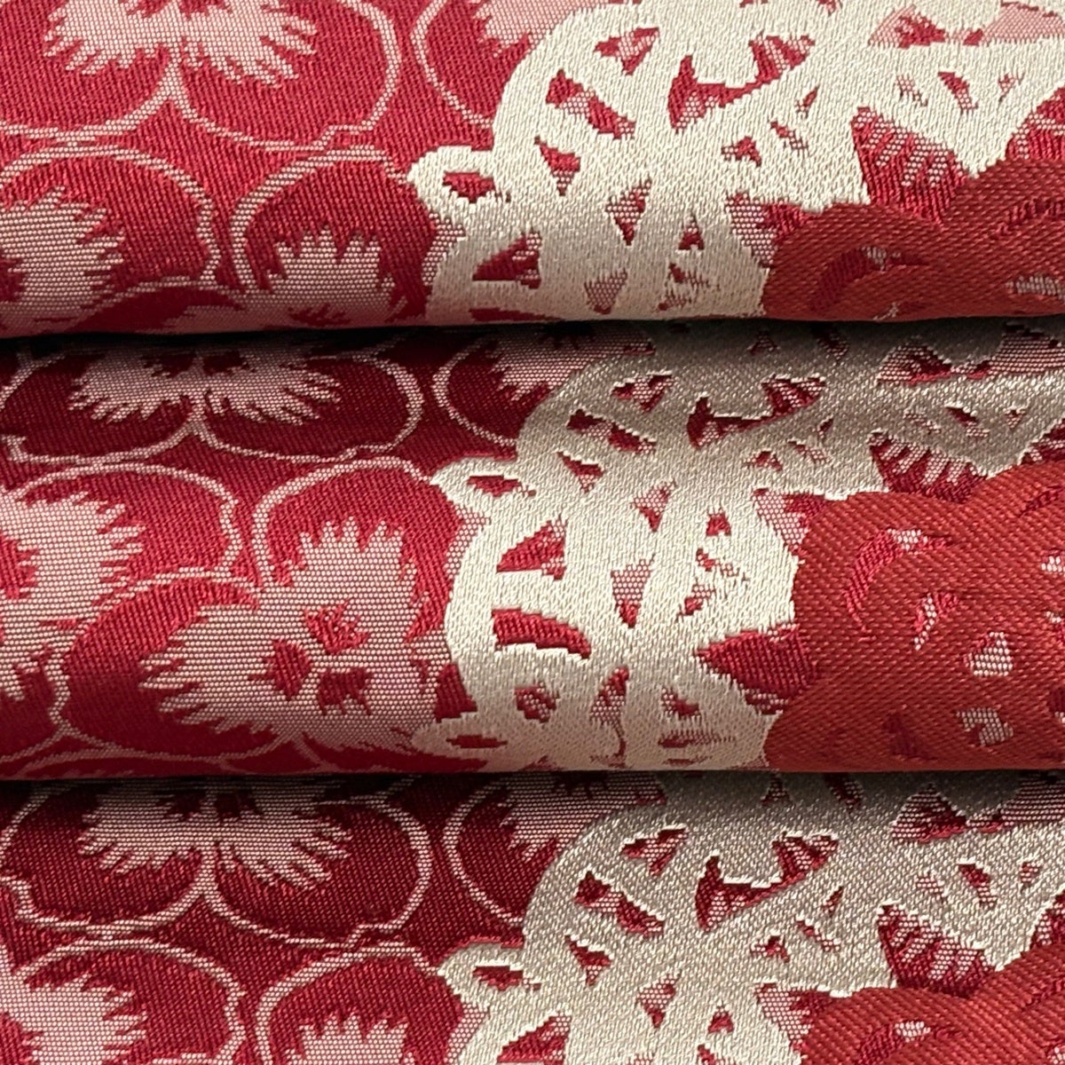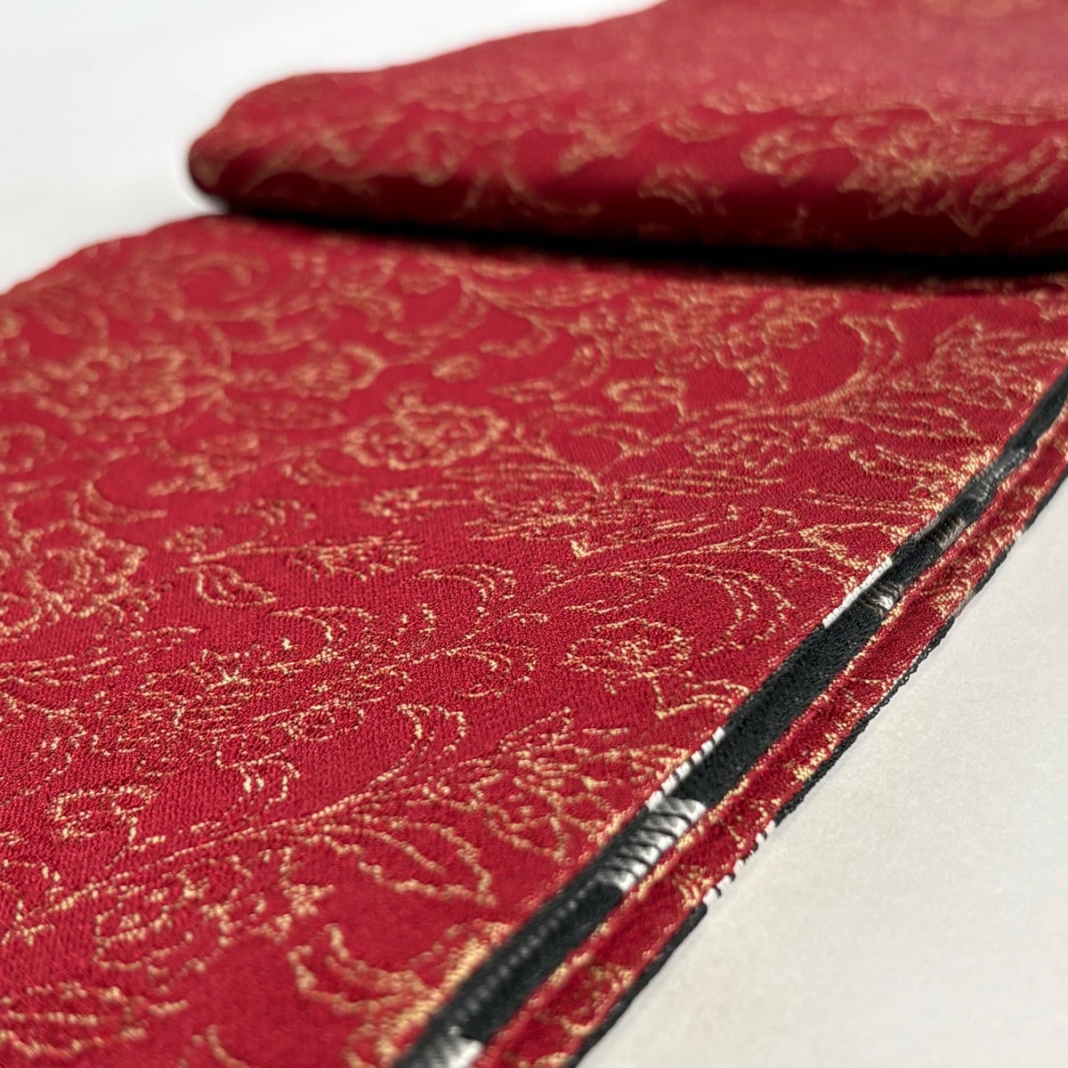 【美品】半幅帯 優品 華文 花 赤 化繊