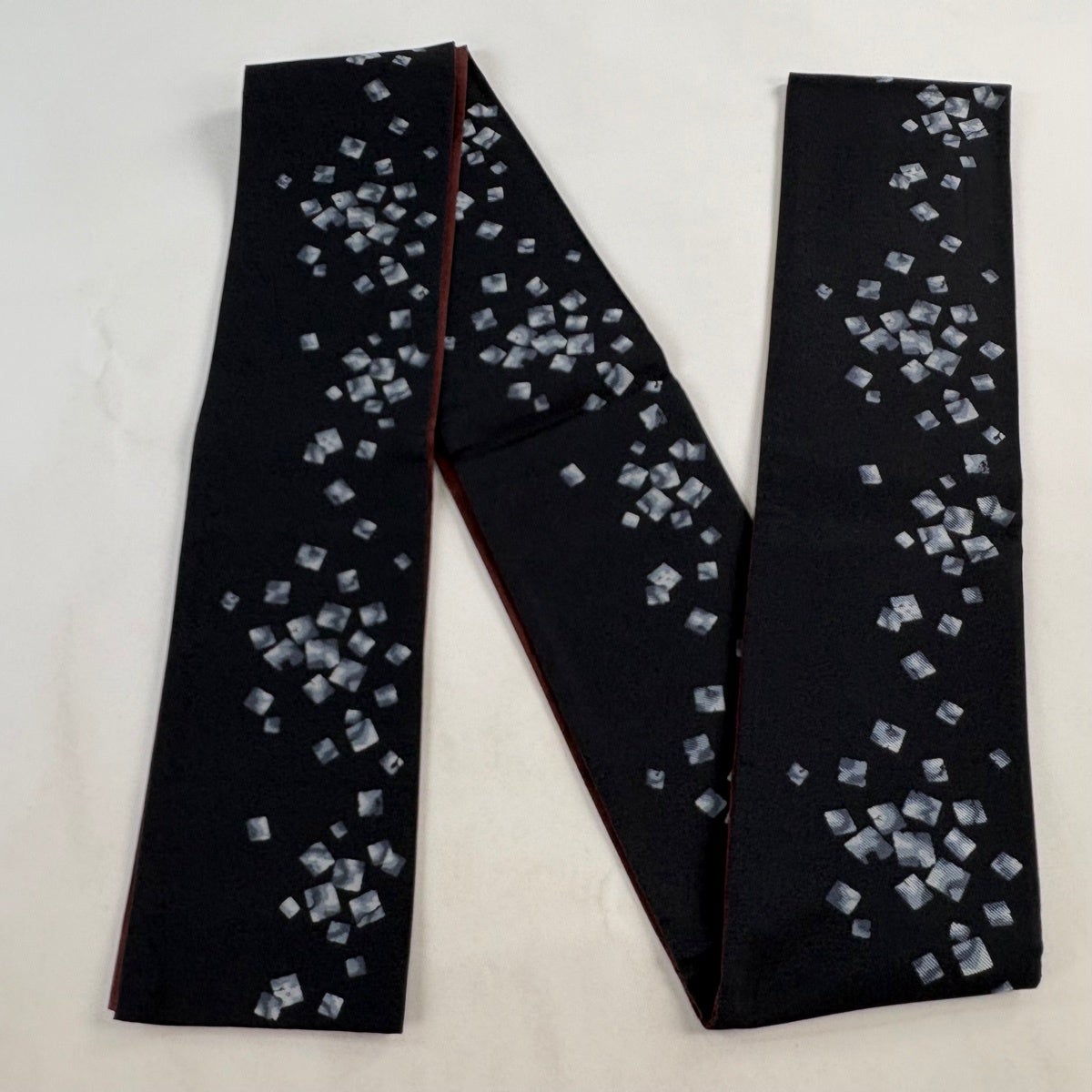【美品】半幅帯 優品 破れ色紙 黒 化繊