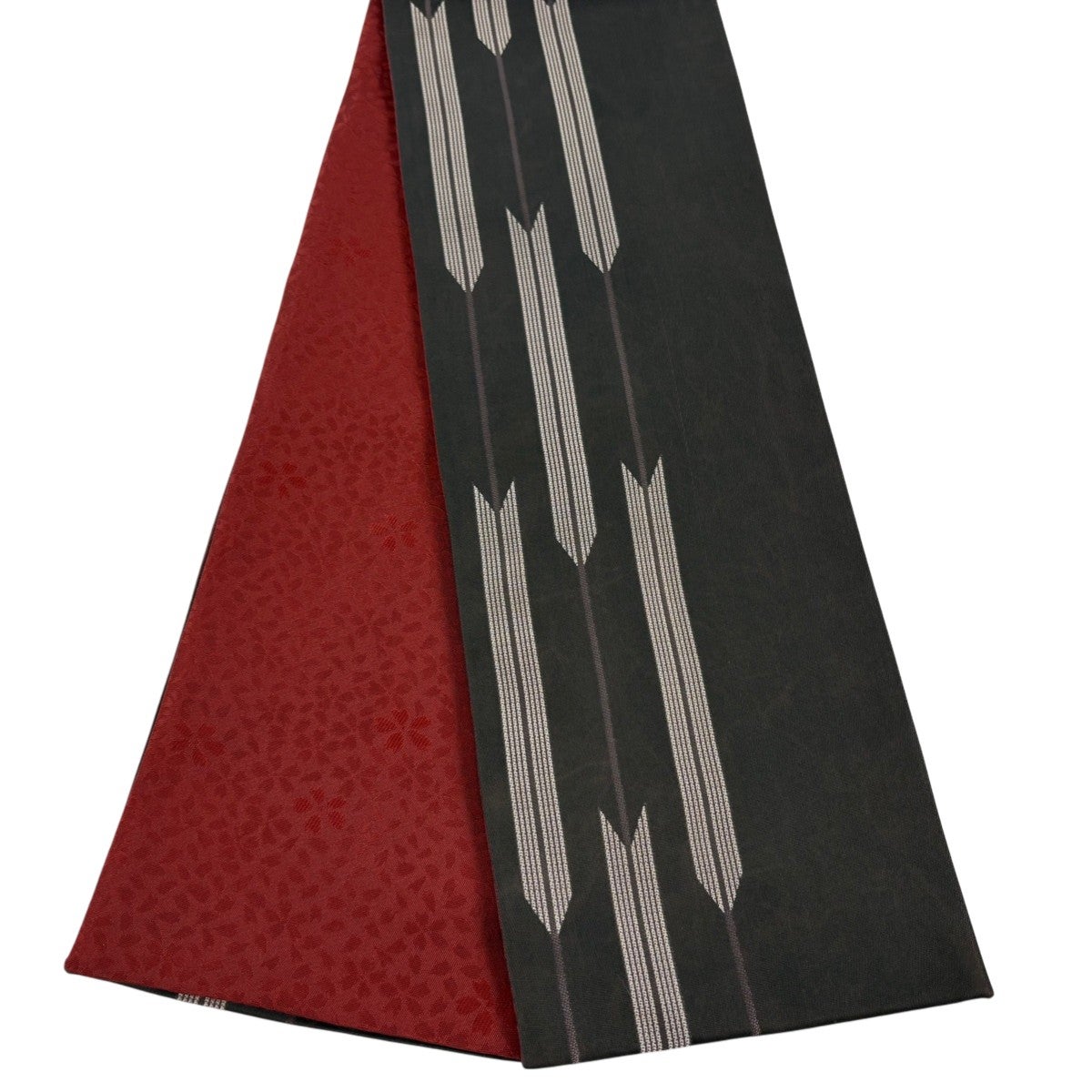 【美品】半幅帯 優品 矢羽根 灰色 化繊