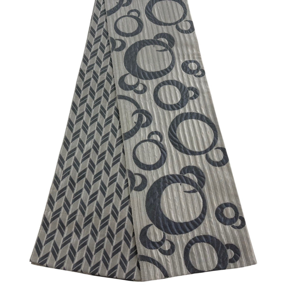 【美品】半幅帯 優品 縞 丸文 灰色 化繊