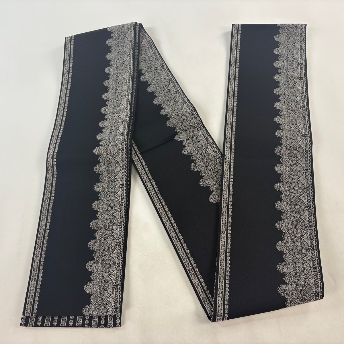 【美品】半幅帯 優品 レース柄 黒 化繊