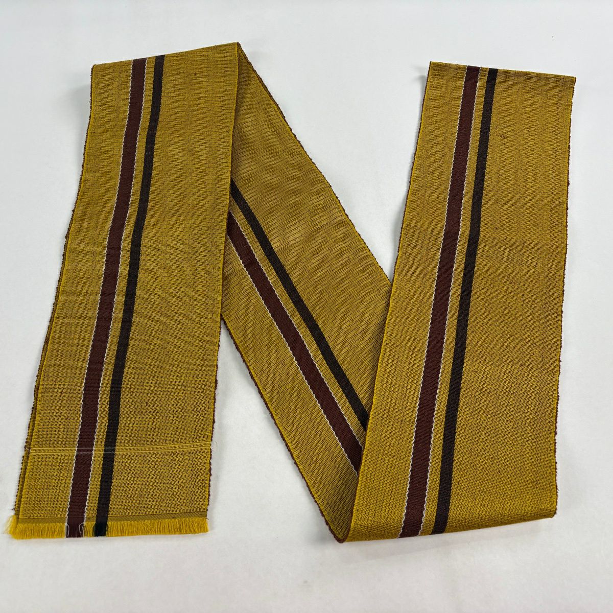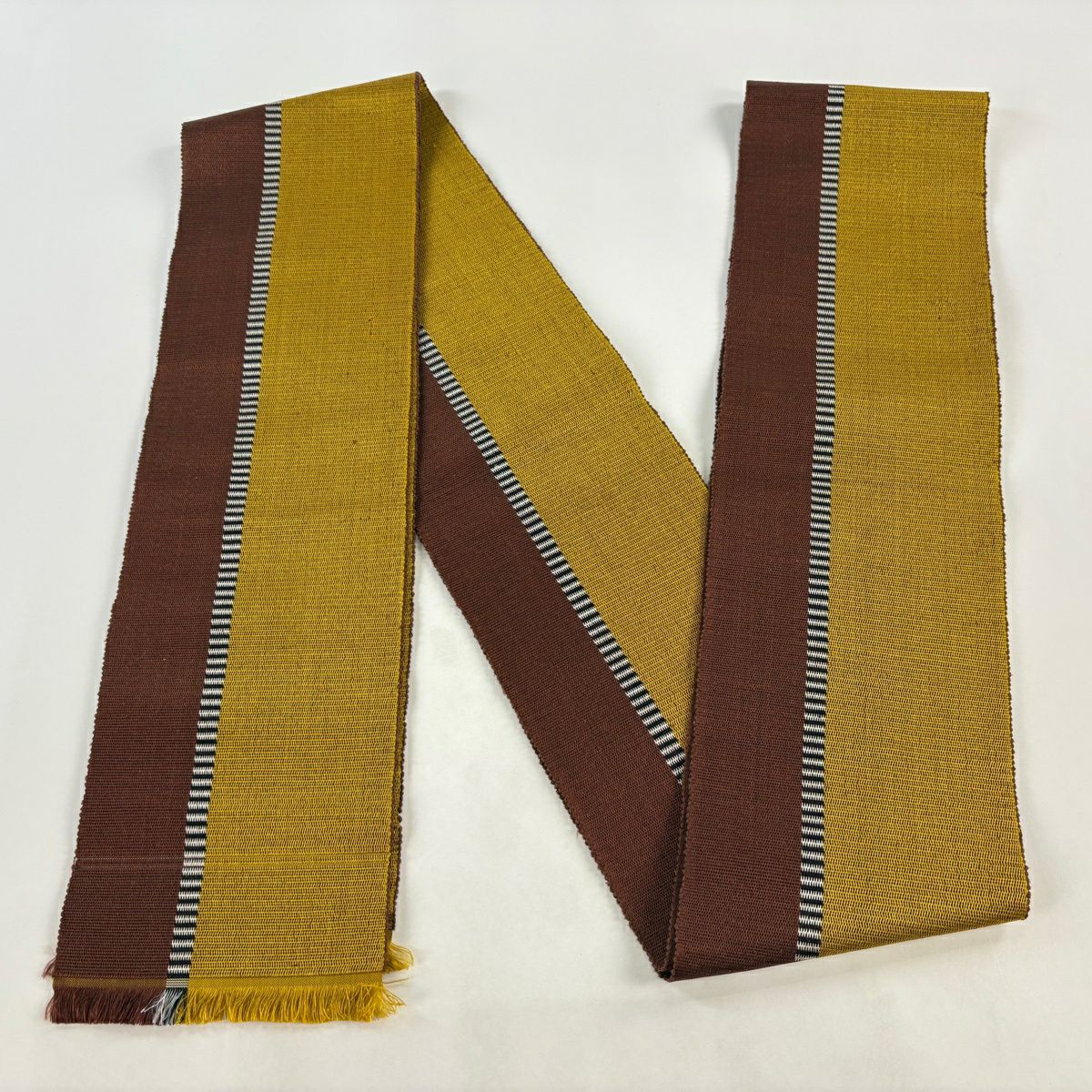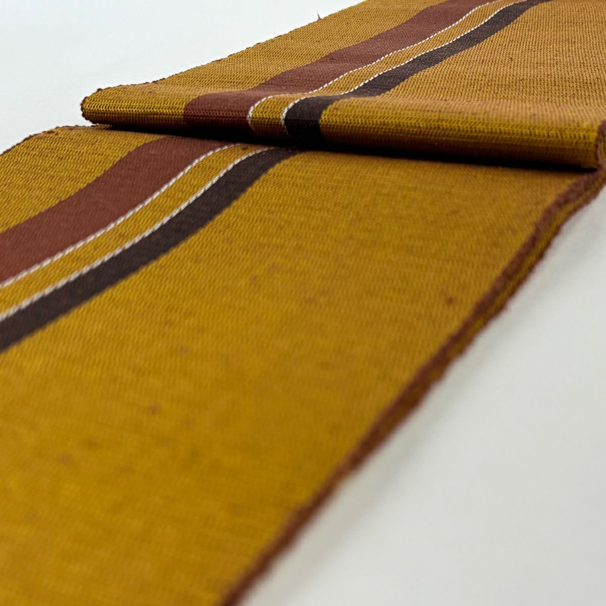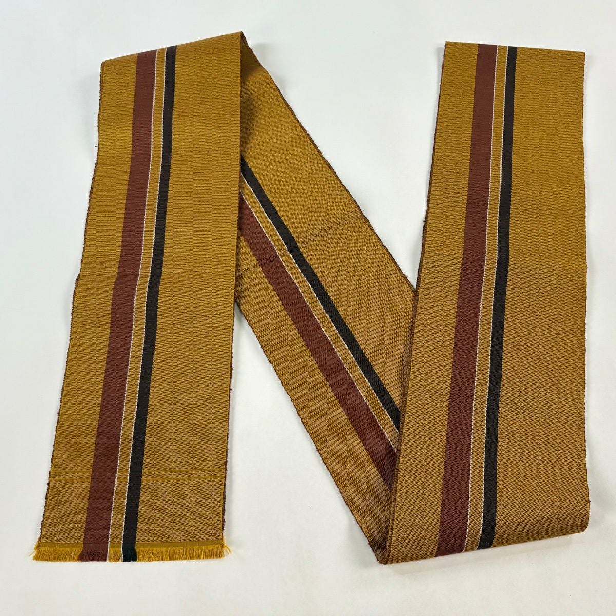 【美品】半幅帯 名品 縞 山吹茶色 正絹