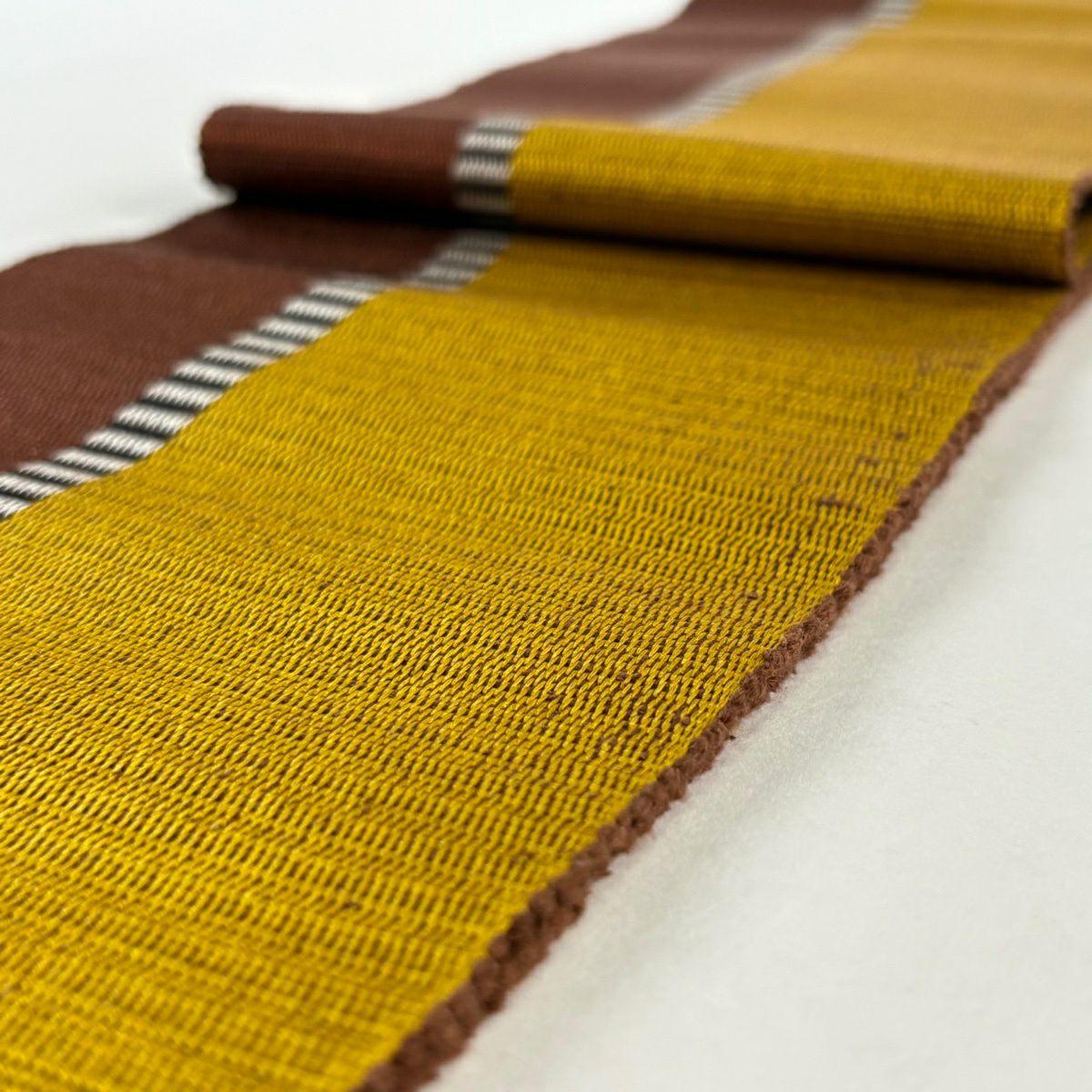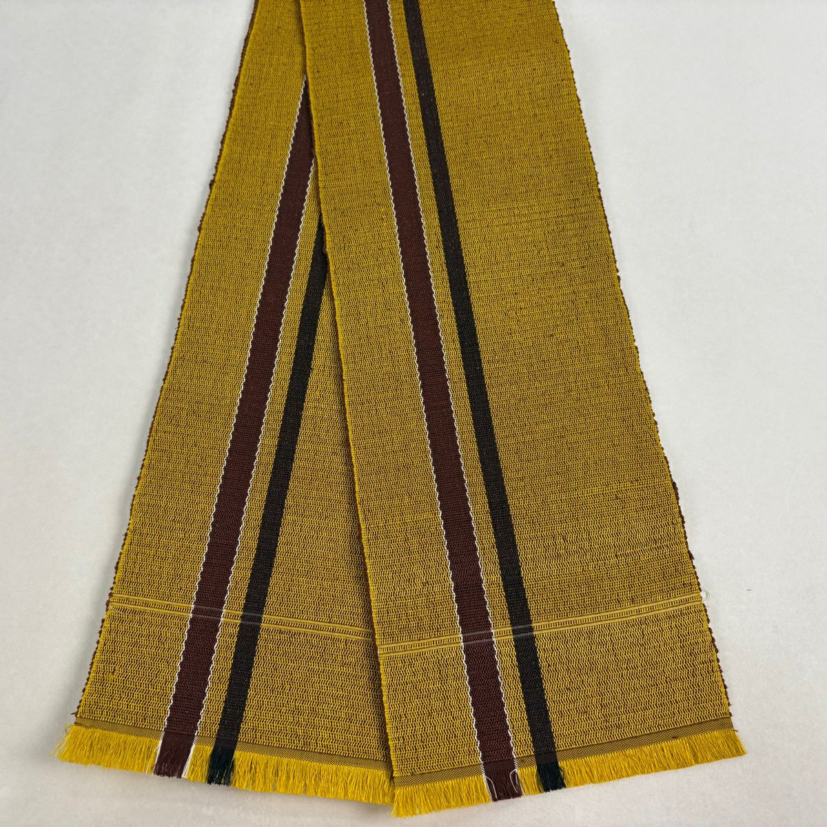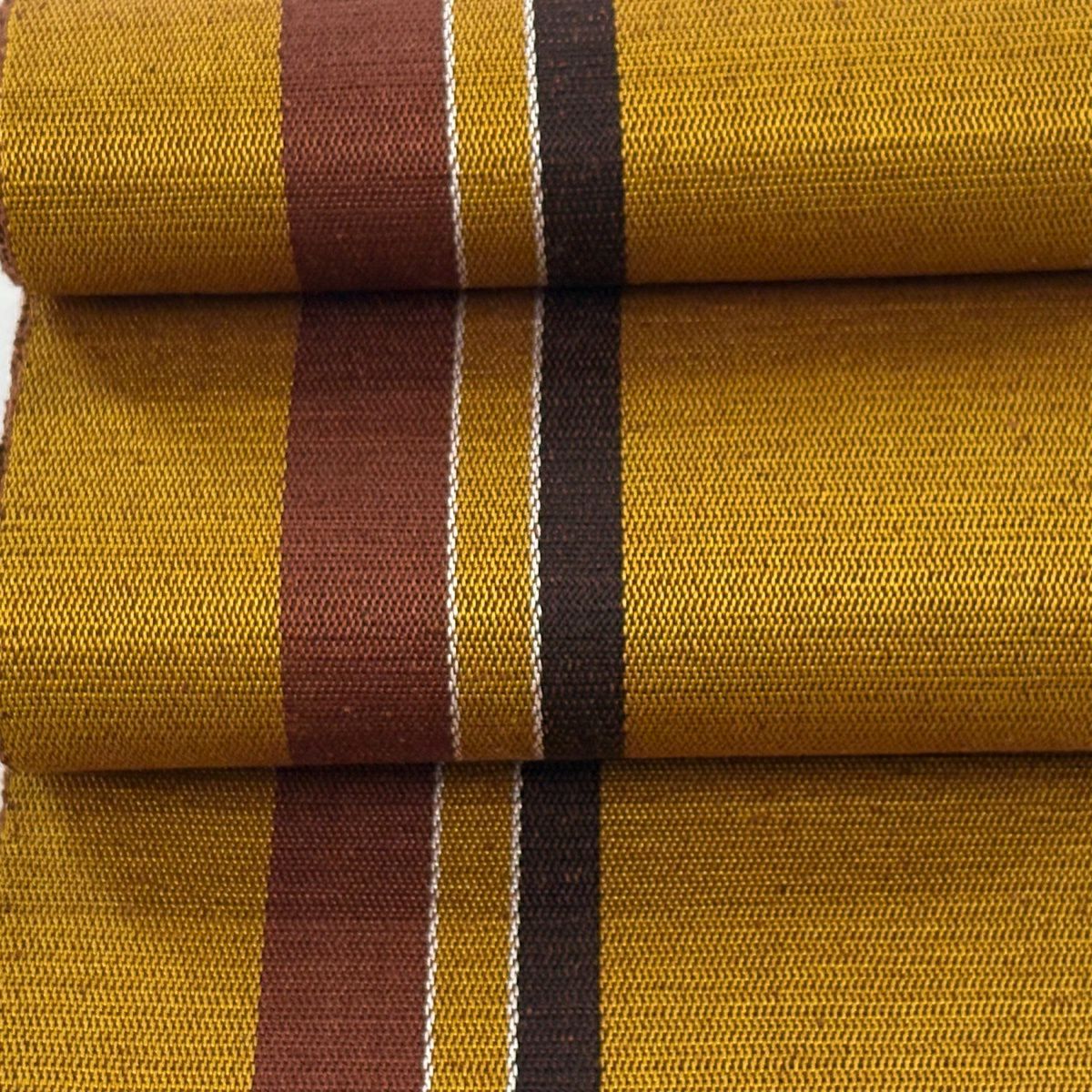 【美品】半幅帯 名品 縞 山吹茶色 正絹