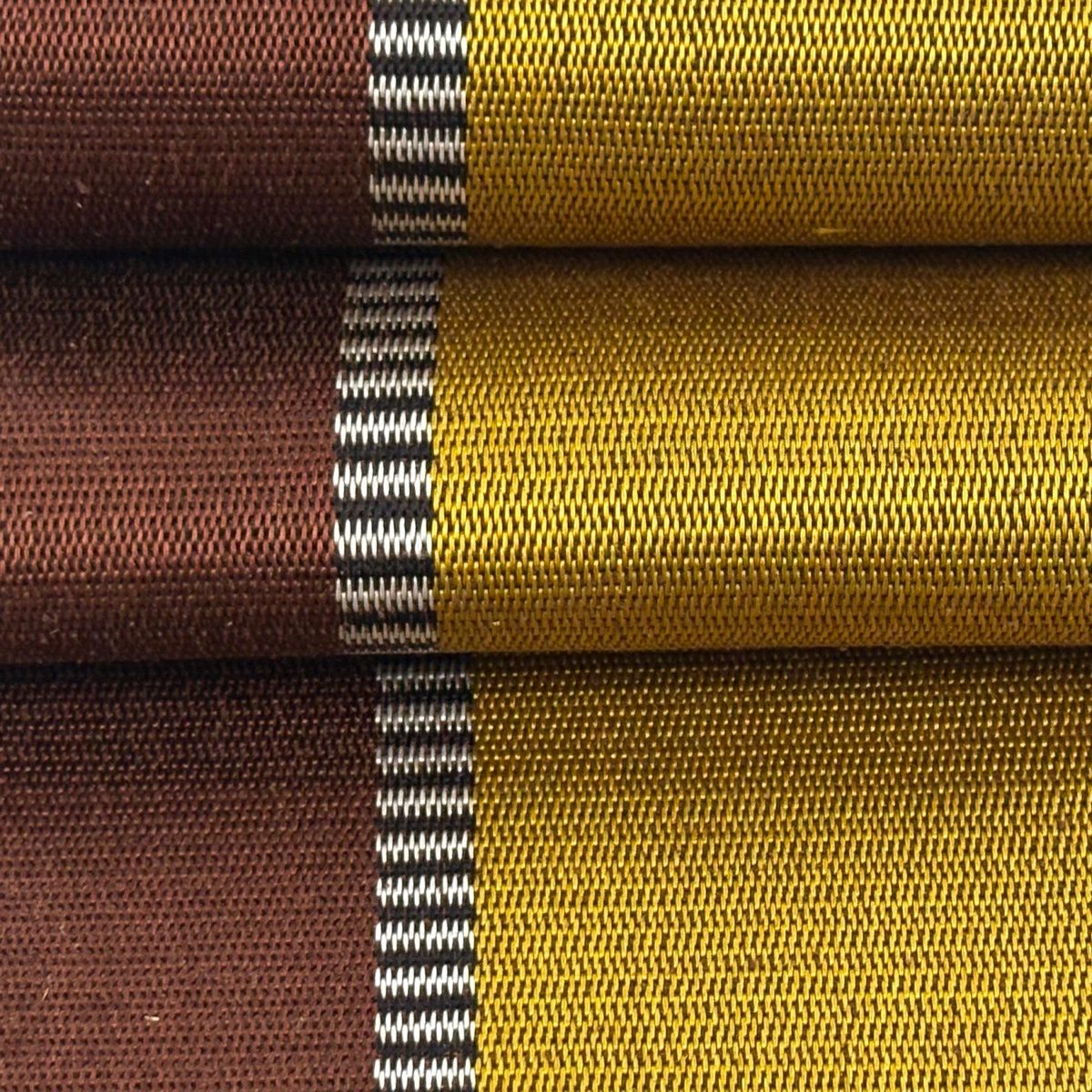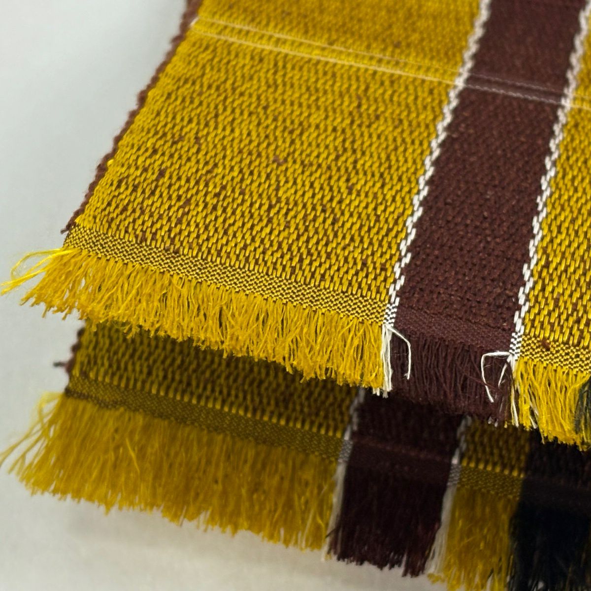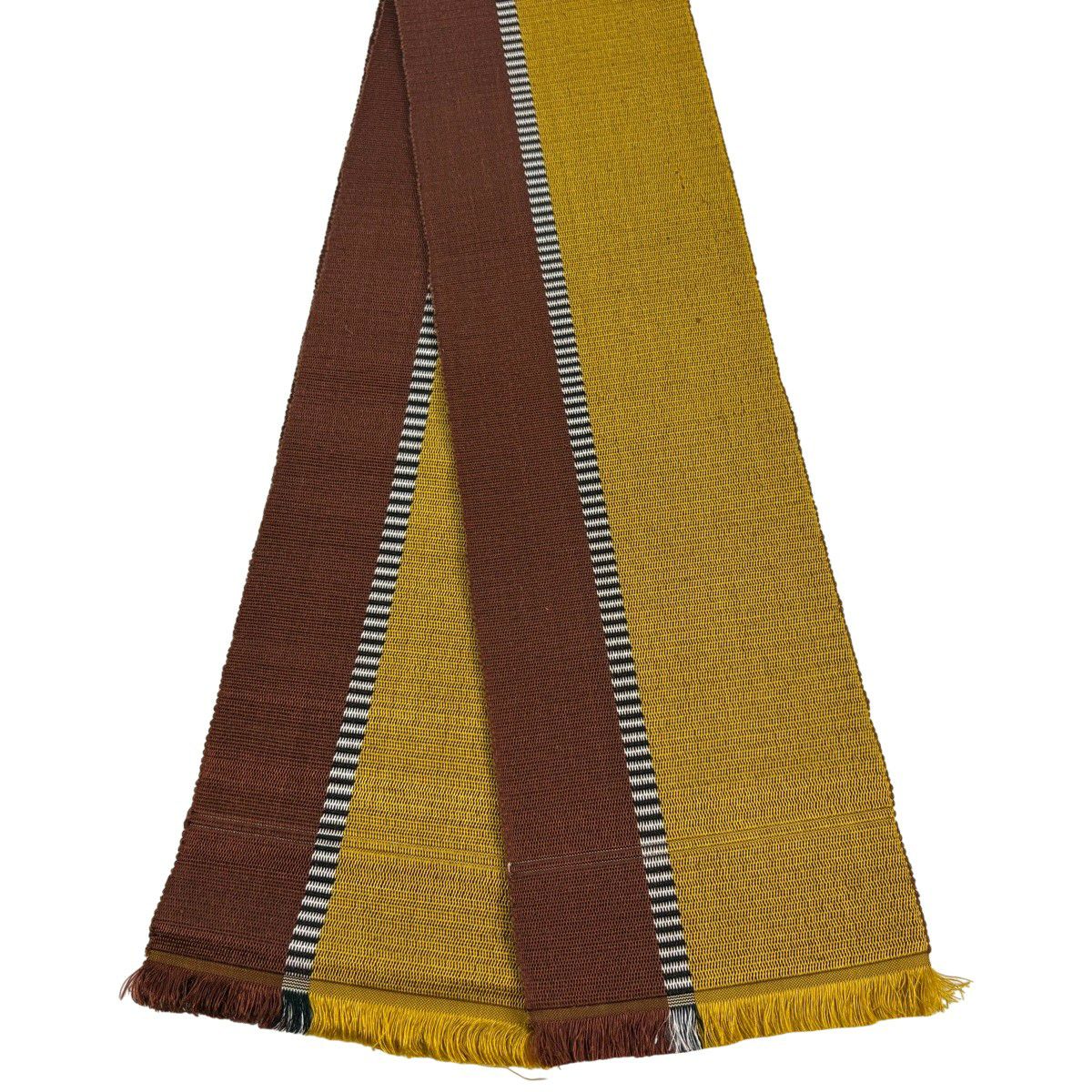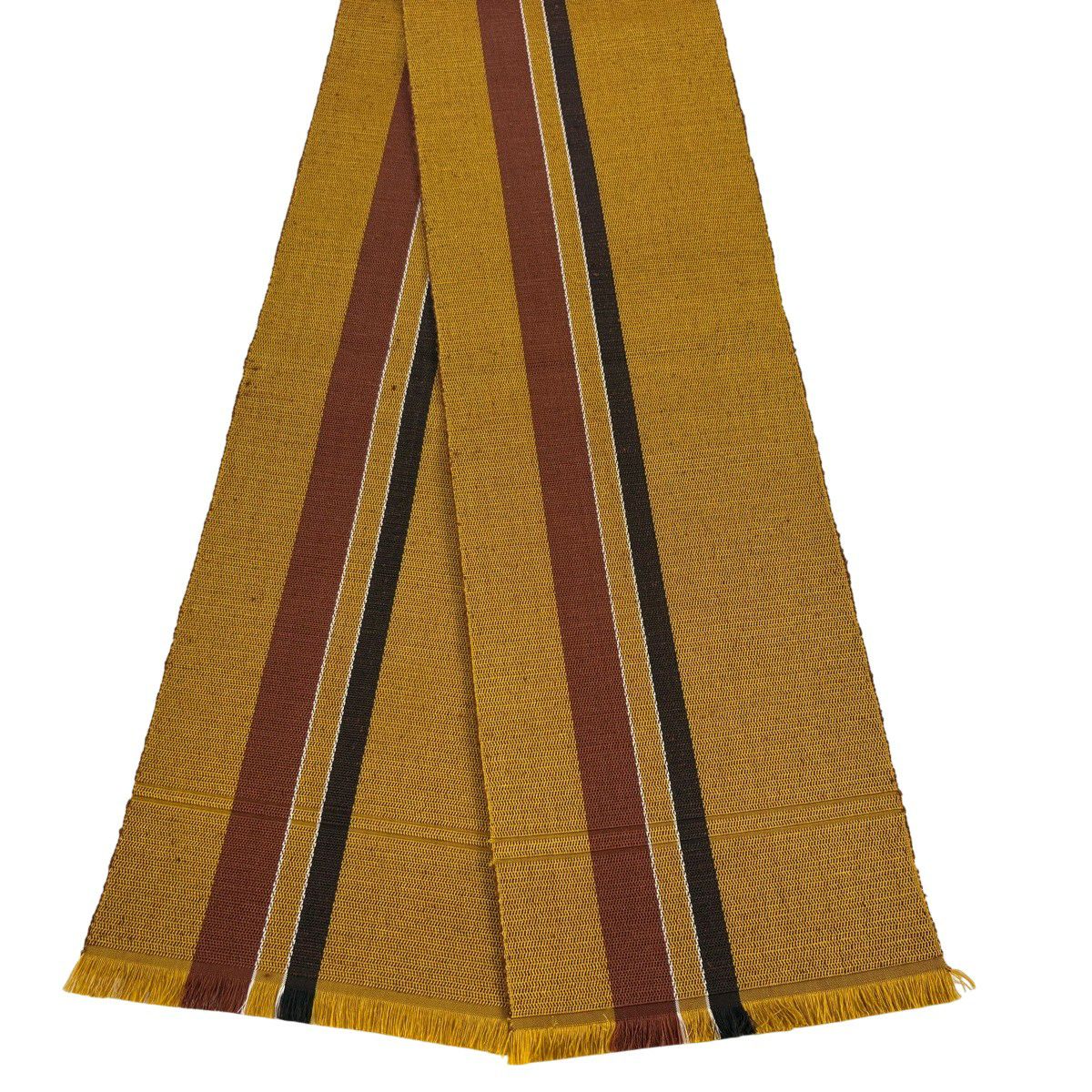 【美品】半幅帯 名品 縞 山吹茶色 正絹