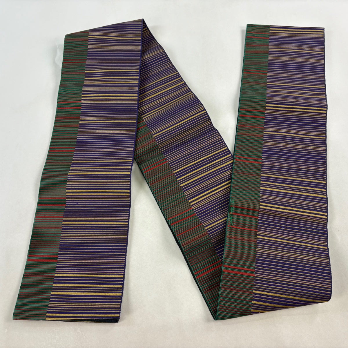 【美品】半幅帯 名品 縞 矢羽根 紫 正絹