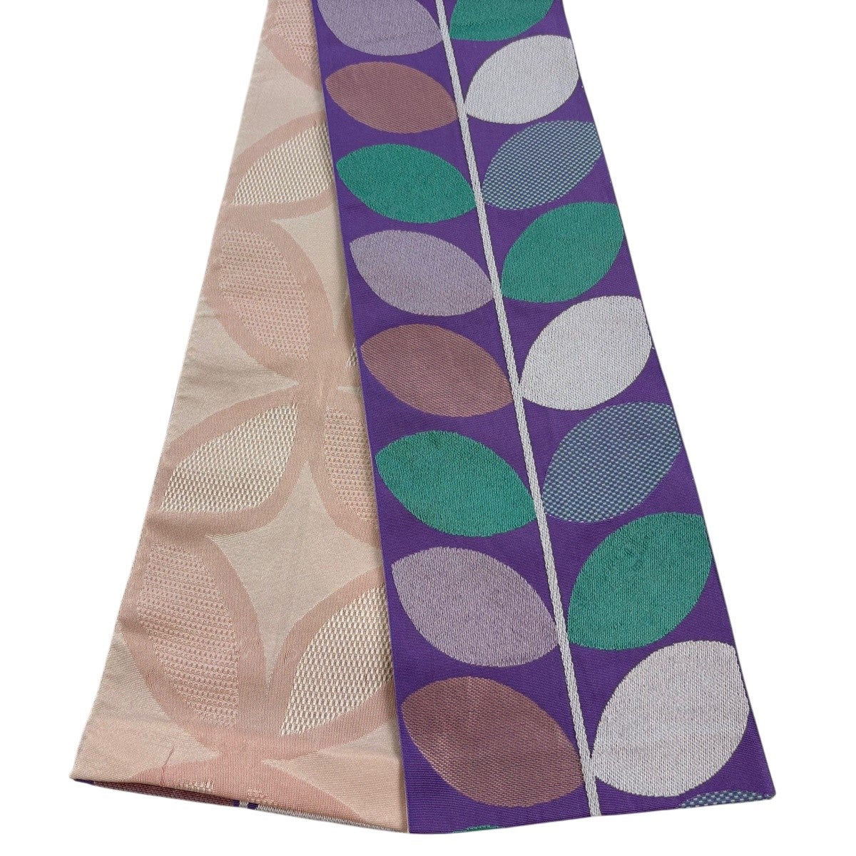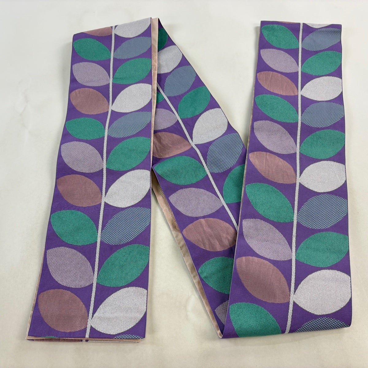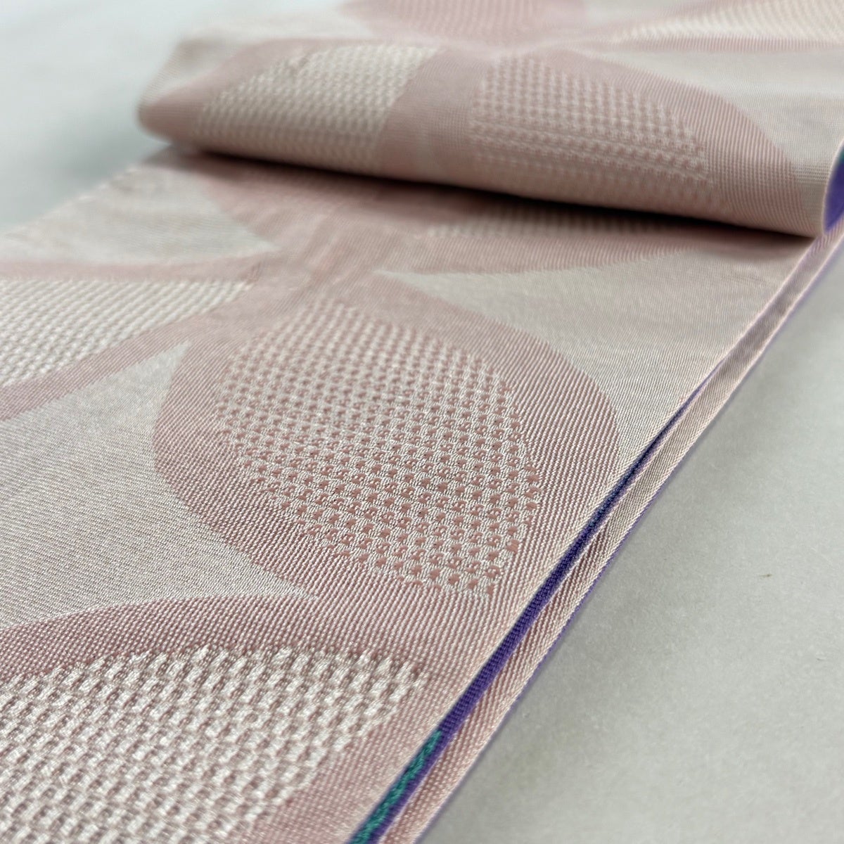 【在庫一掃】 【美品】半幅帯 優品 市松 トンボ ラメ糸 灰紫 化繊