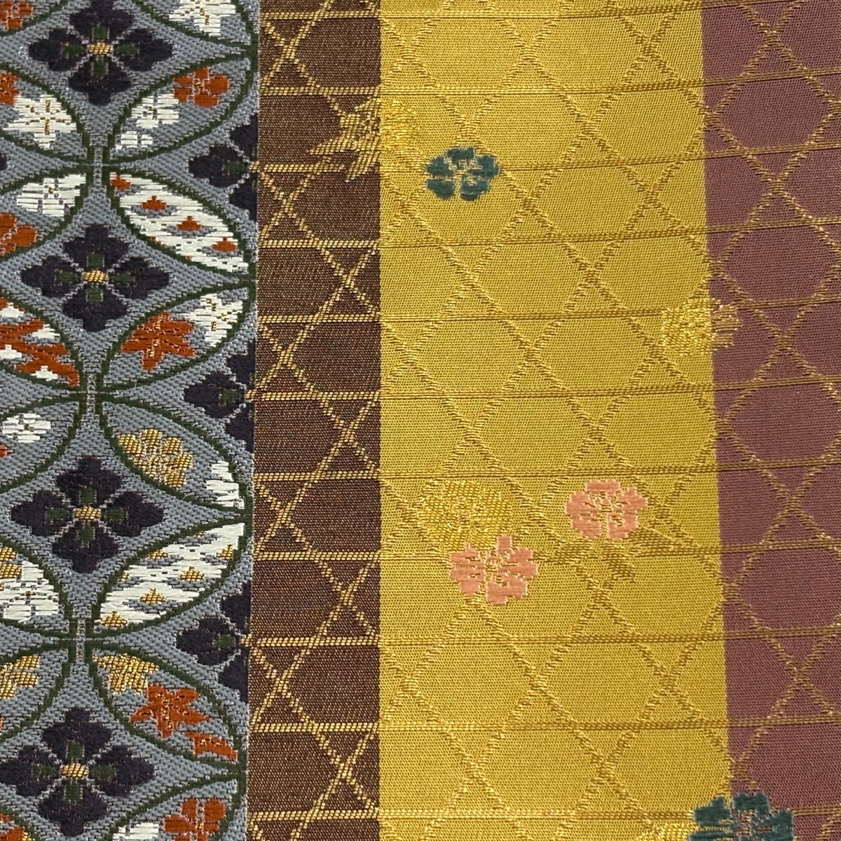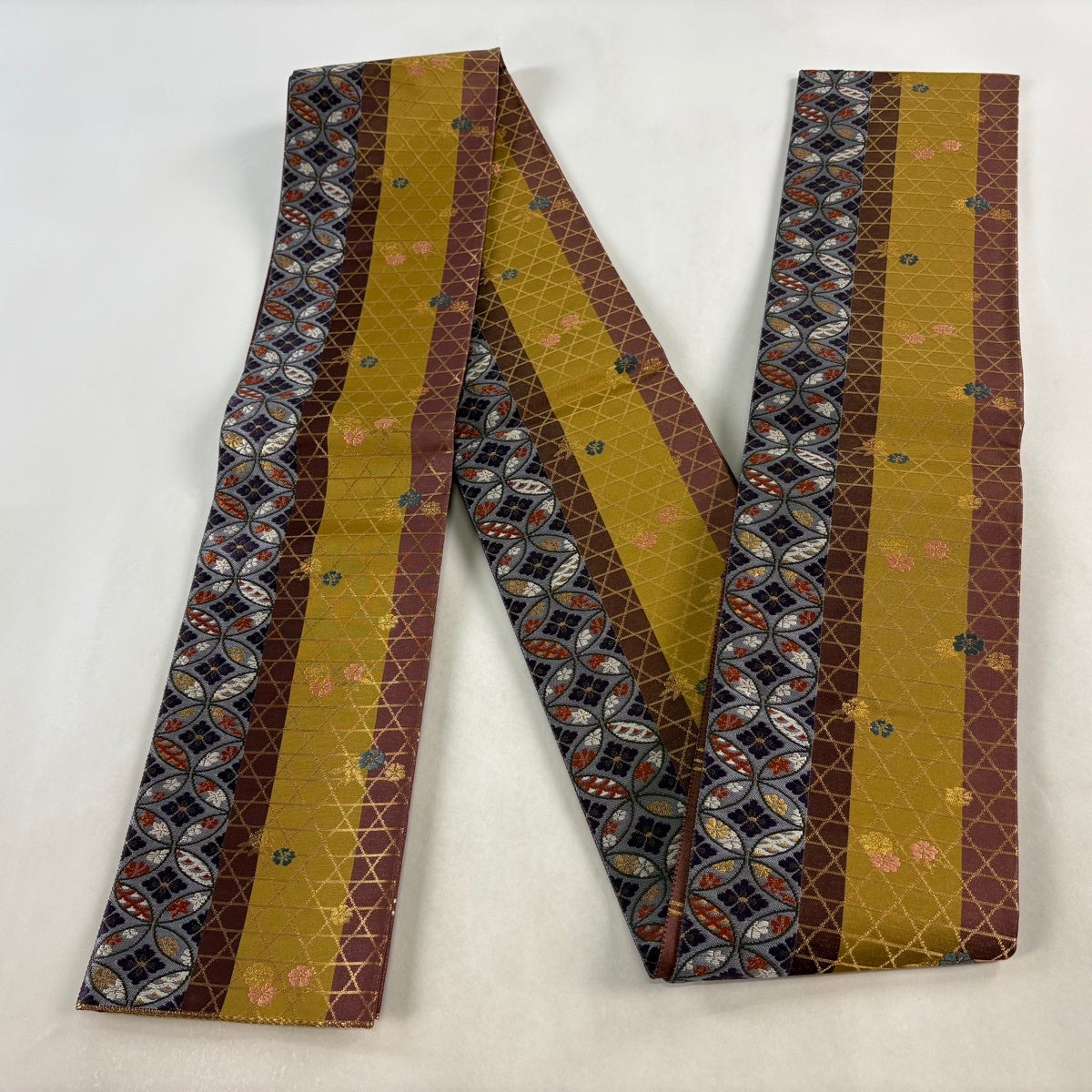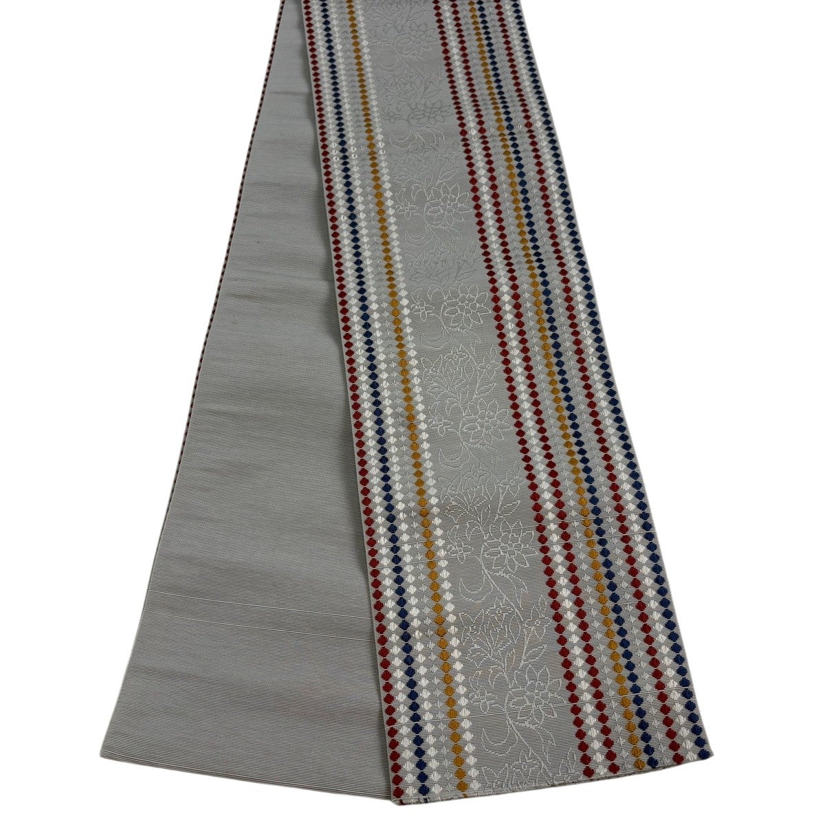 【美品】半幅帯 秀品 博多織 証紙 草花 幾何学模様 灰茶 正絹