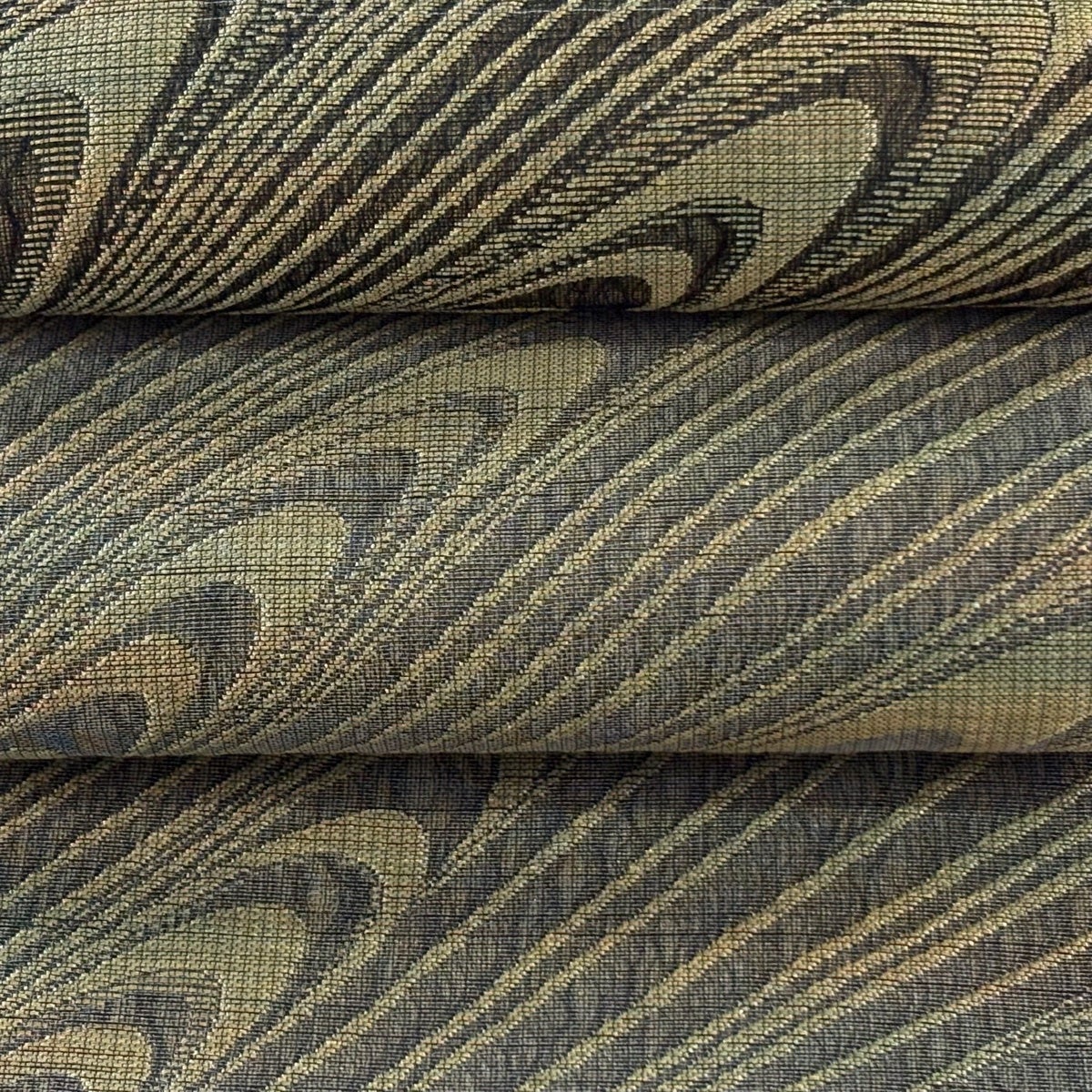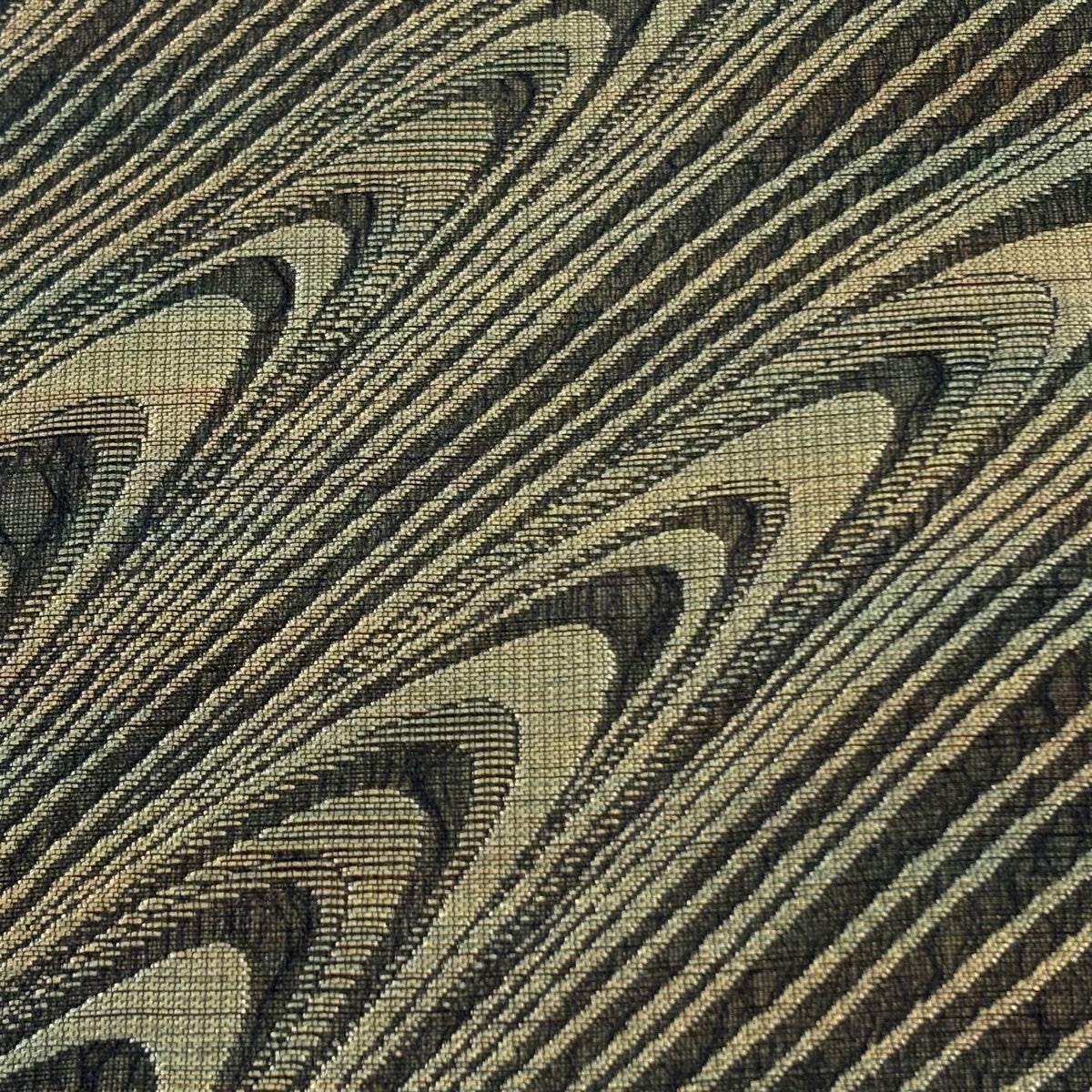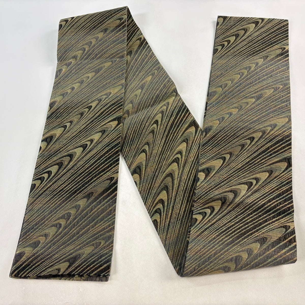 【美品】半幅帯 秀品 博多織 証紙 草花 縞 華詩織 茶緑色 正絹