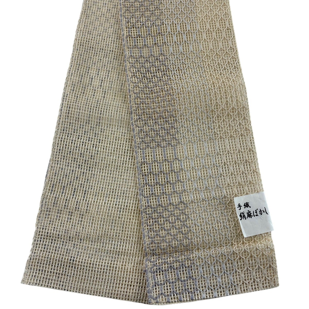 【美品】半幅帯 名品 証紙有 博多織 斜め格子 草花 ベージュ 正絹